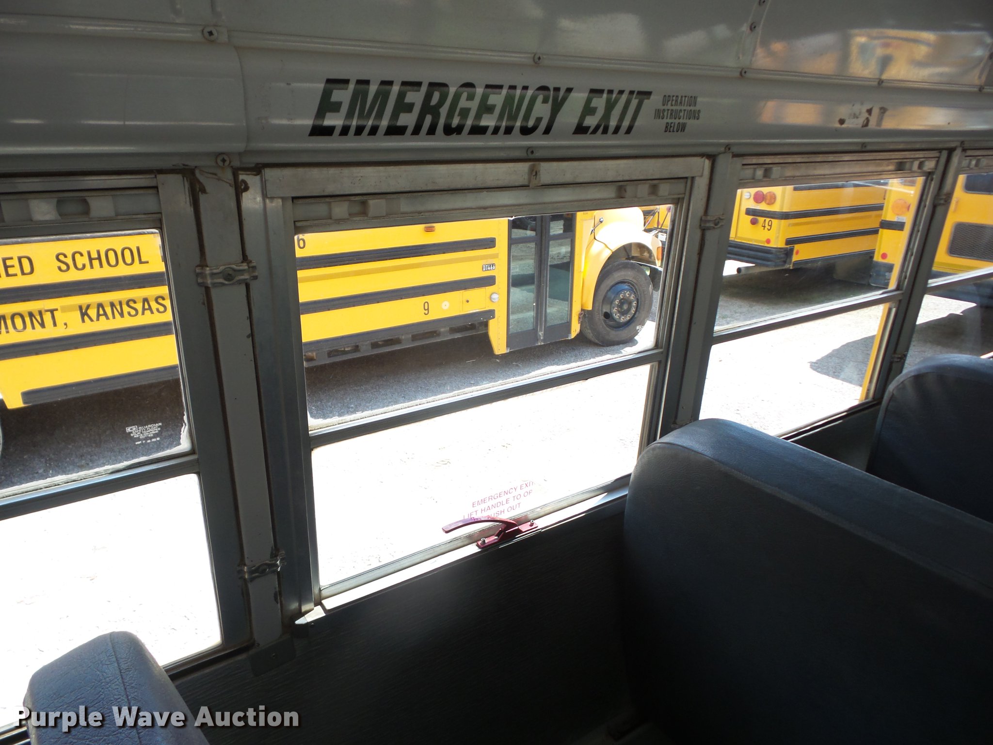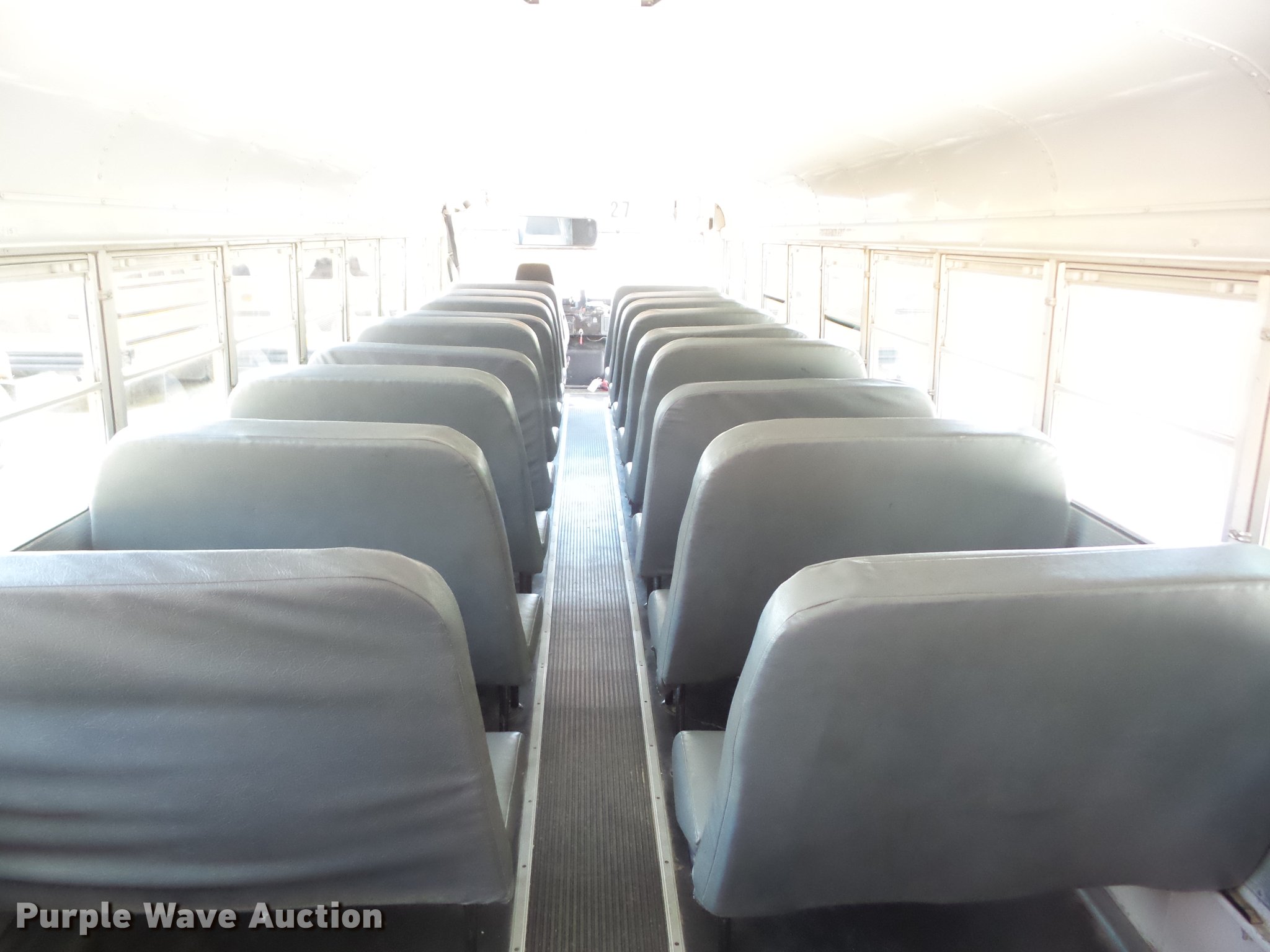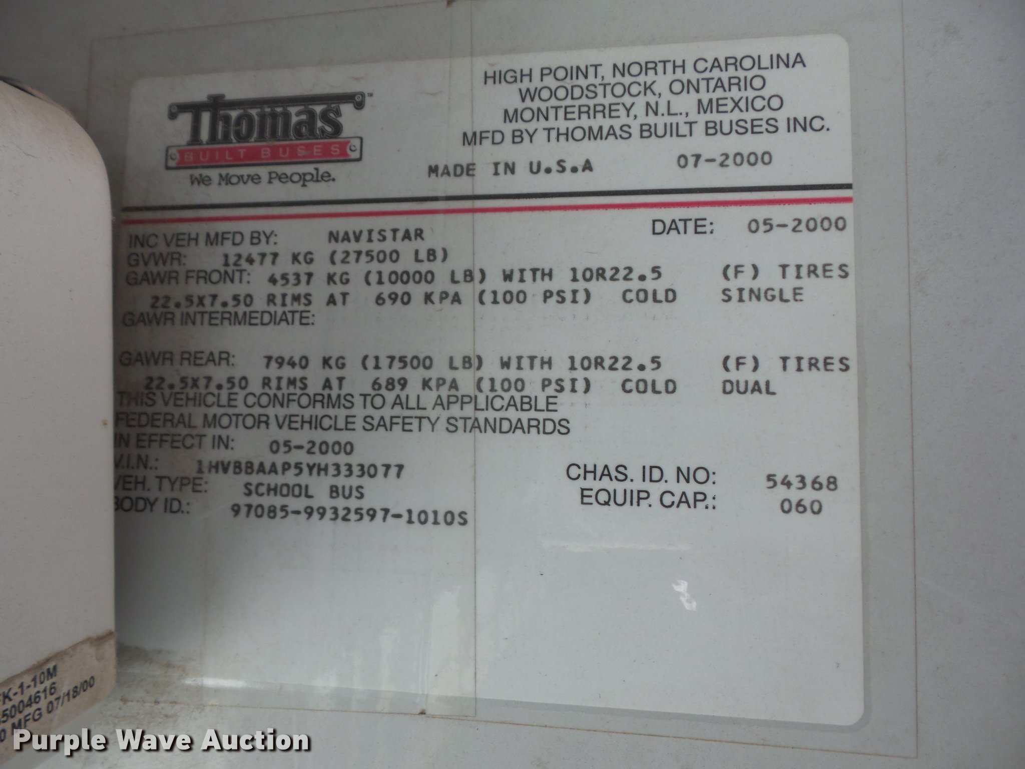 Purple Wave is selling a used Bus in Kansas. This item is a 2000 International 3800 school bus with the following: 185,410 miles on odometer, 6,229 hours on meter, International DT466E 7.6L L6 turbo diesel engine, Automatic transmission, Single axle, Heat, Heated mirrors, Suspension seat, 60 passenger capacity, Ceiling, front, rear, and side emergency exits, Lighted stop sign, Block heater, Spring suspension, Hydraulic brakes, 10.00R25 tires, GVWR 27,500 lbs, Unit# 27