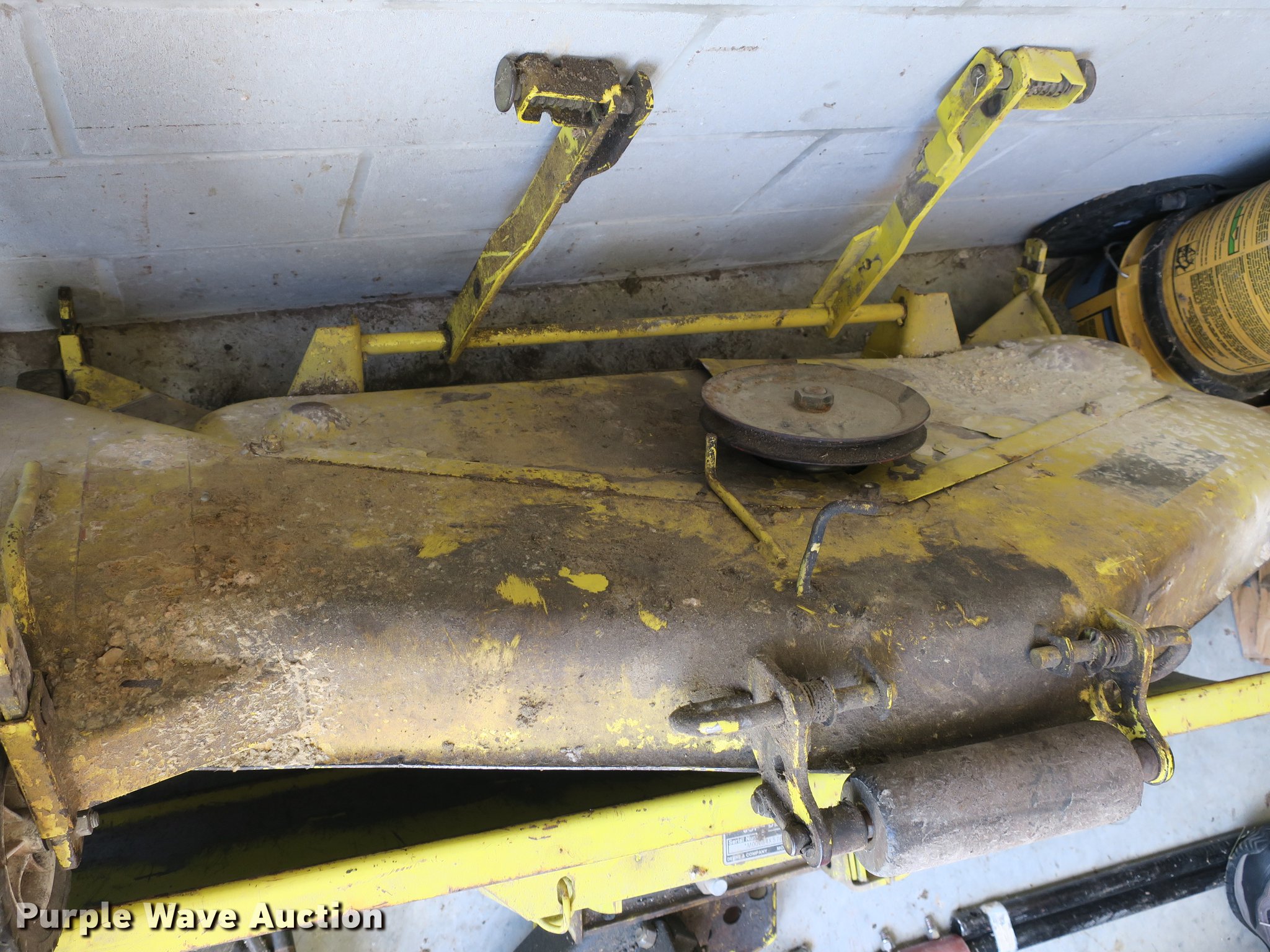 Purple Wave is selling a used Lawn Mower in Missouri. This item is a John Deere 316 lawn mower with the following: Onan gas engine, Hydrostatic transmission, 48"W deck, Hydraulic raise and lower, Unattached, 54"W snow blade, Hydraulic raise and lower, Unattached, 16x6.50 front tires, 23-10.50 rear tires, Parts may be missing, Non-operational unit, Serial M00316X476352
