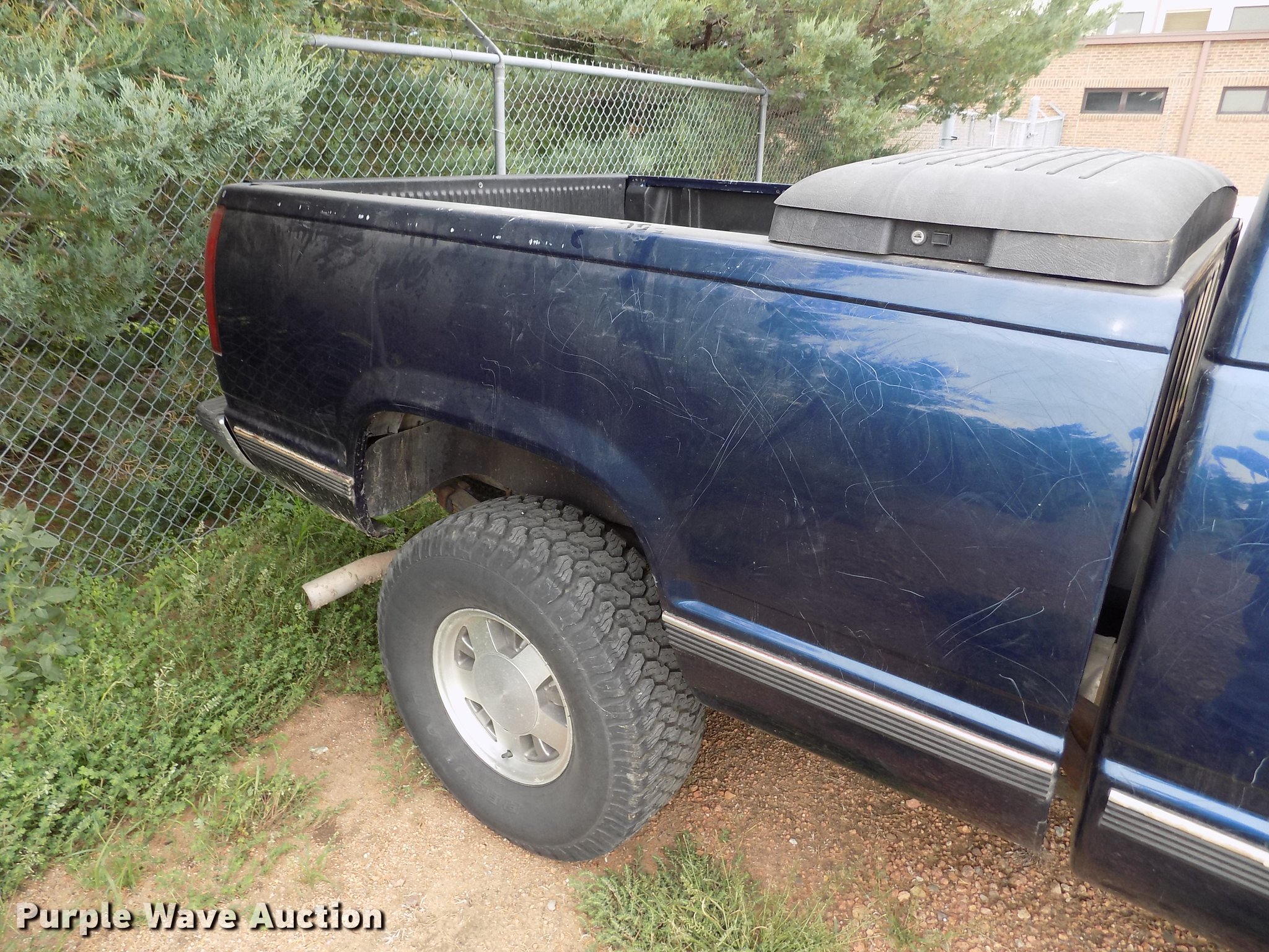 Purple Wave is selling a used 1/2 Ton Pickup or Van in Kansas. This item is a 1996 Chevrolet Silverado 1500 Ext. Cab pickup truck with the following: 103,609 miles on odometer, 5.7L V8 OHV 16V gas engine, Automatic transmission, AC and heat, Tilt, Cruise, AM/FM/CD/cassette, Power windows, locks, and mirrors, Vinyl interior, Bed liner, Toolbox, 32x11.5R15LT tires, Passenger side headlight broken, Unknown operating condition