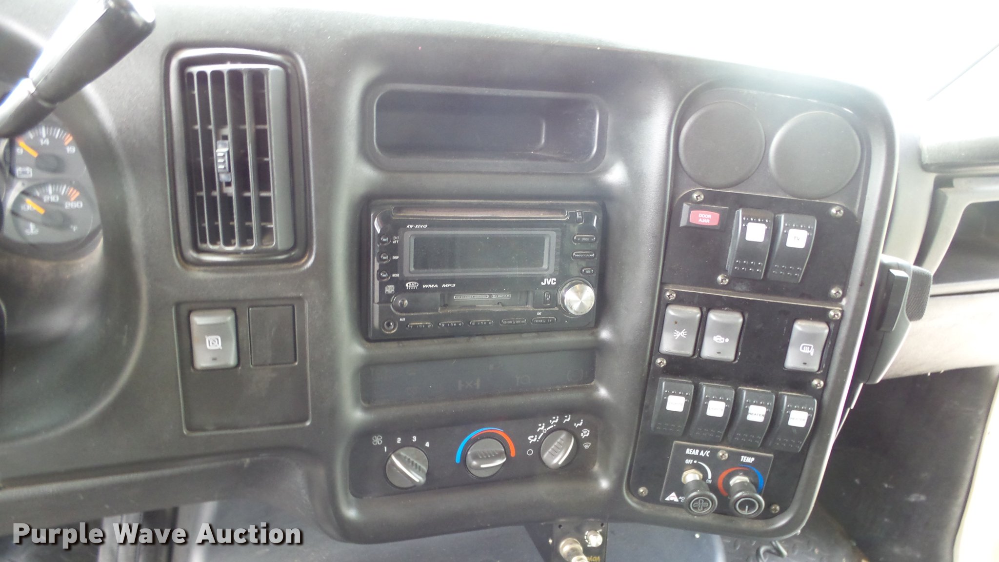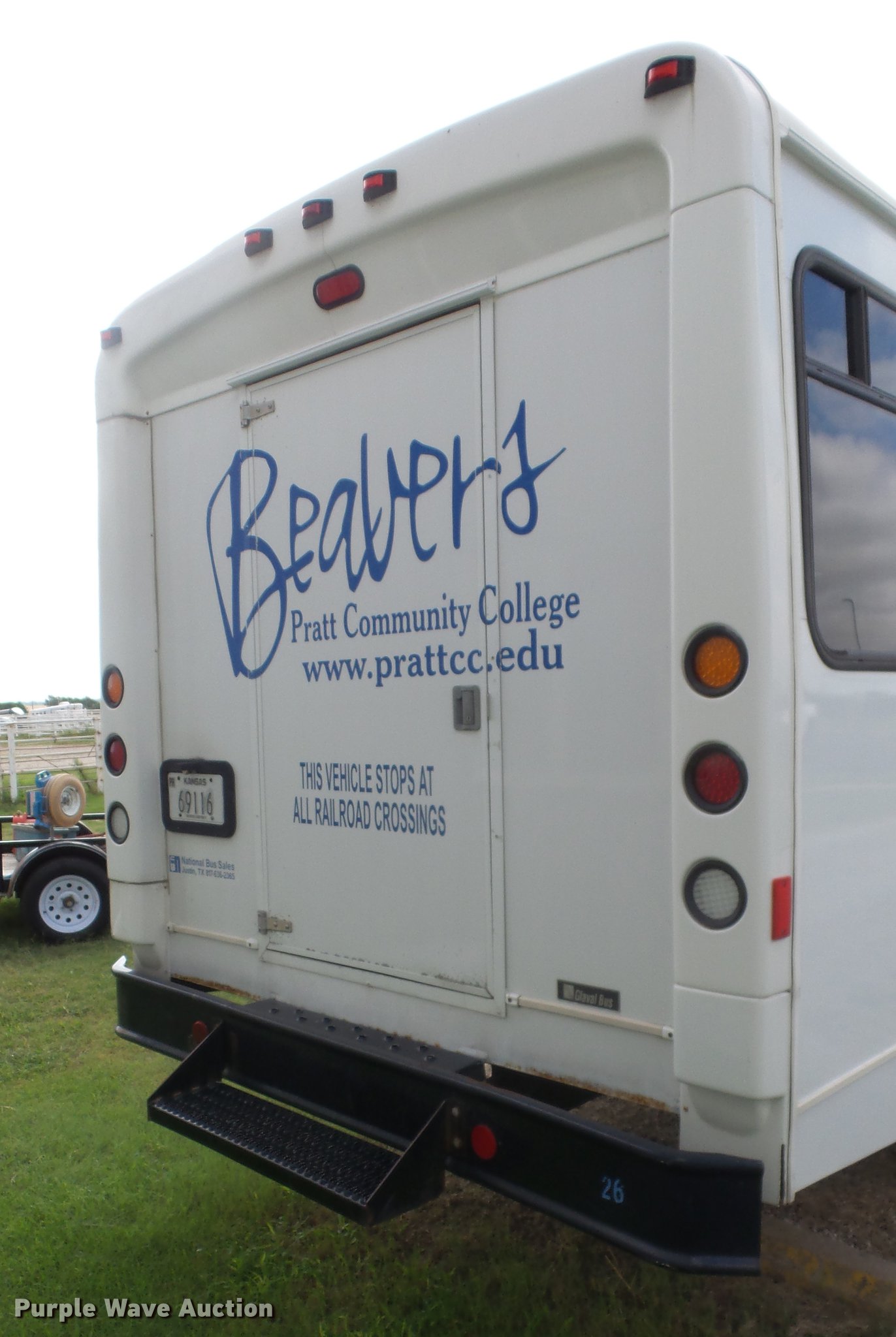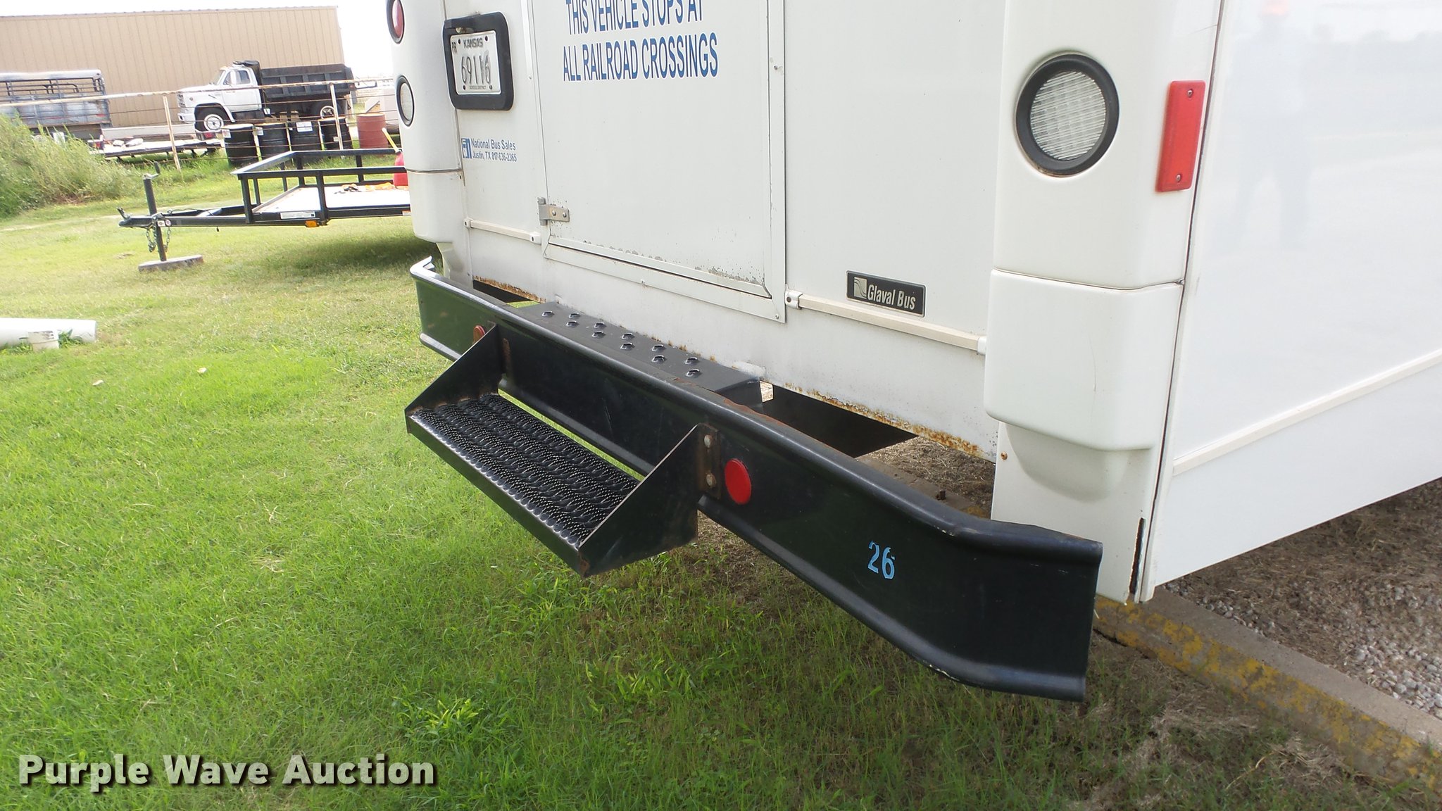 Purple Wave is selling a used Bus in Kansas. This item is a 2006 GMC C5500 bus with the following: 226,916 miles on odometer, 6.6L V8 OHV 32V turbo diesel engine, Automatic transmission, Single axle, AC and heat, AM/FM/CD, Manual windows and locks, Cloth interior, Rear entertainment system, 40 passenger capacity, Ceiling, rear, and side emergency exits, Front tow hooks, Spring suspension, Hydraulic brakes, 245/70R19.5 tires, GVWR 26,000 lbs, Engine head gasket blown, Belt pulley has been removed, Cracked windshield