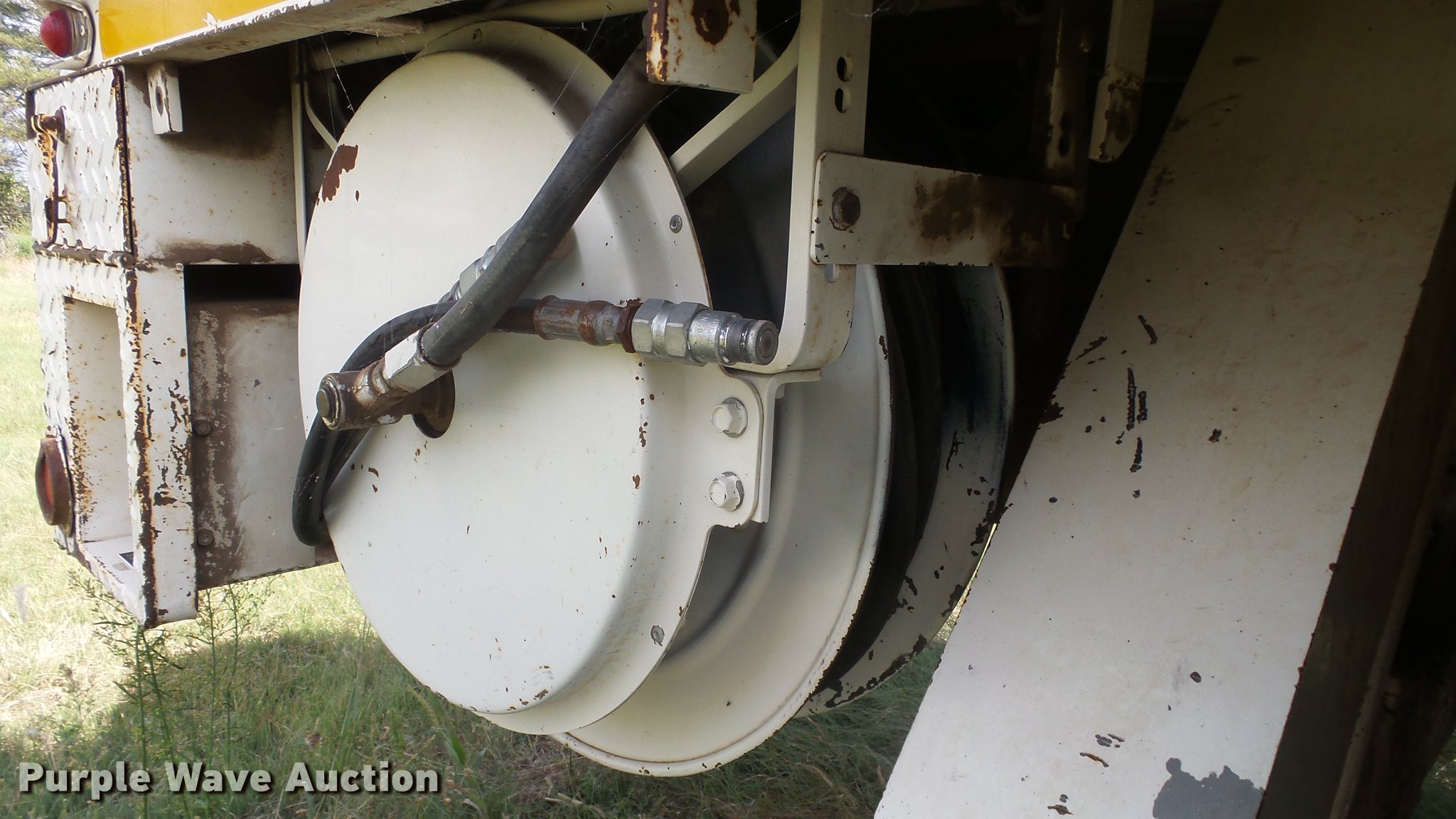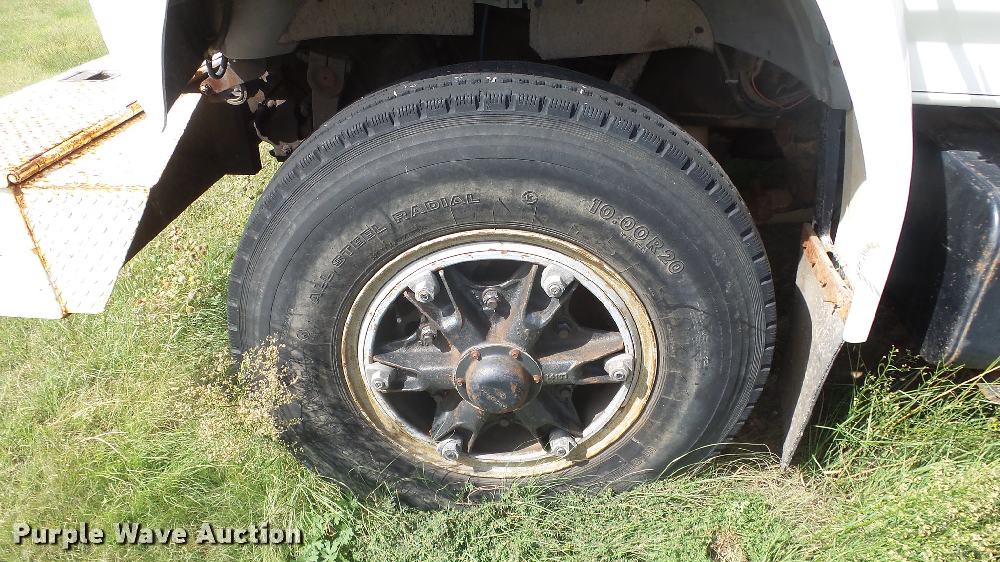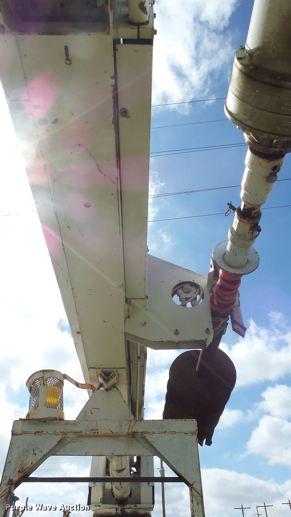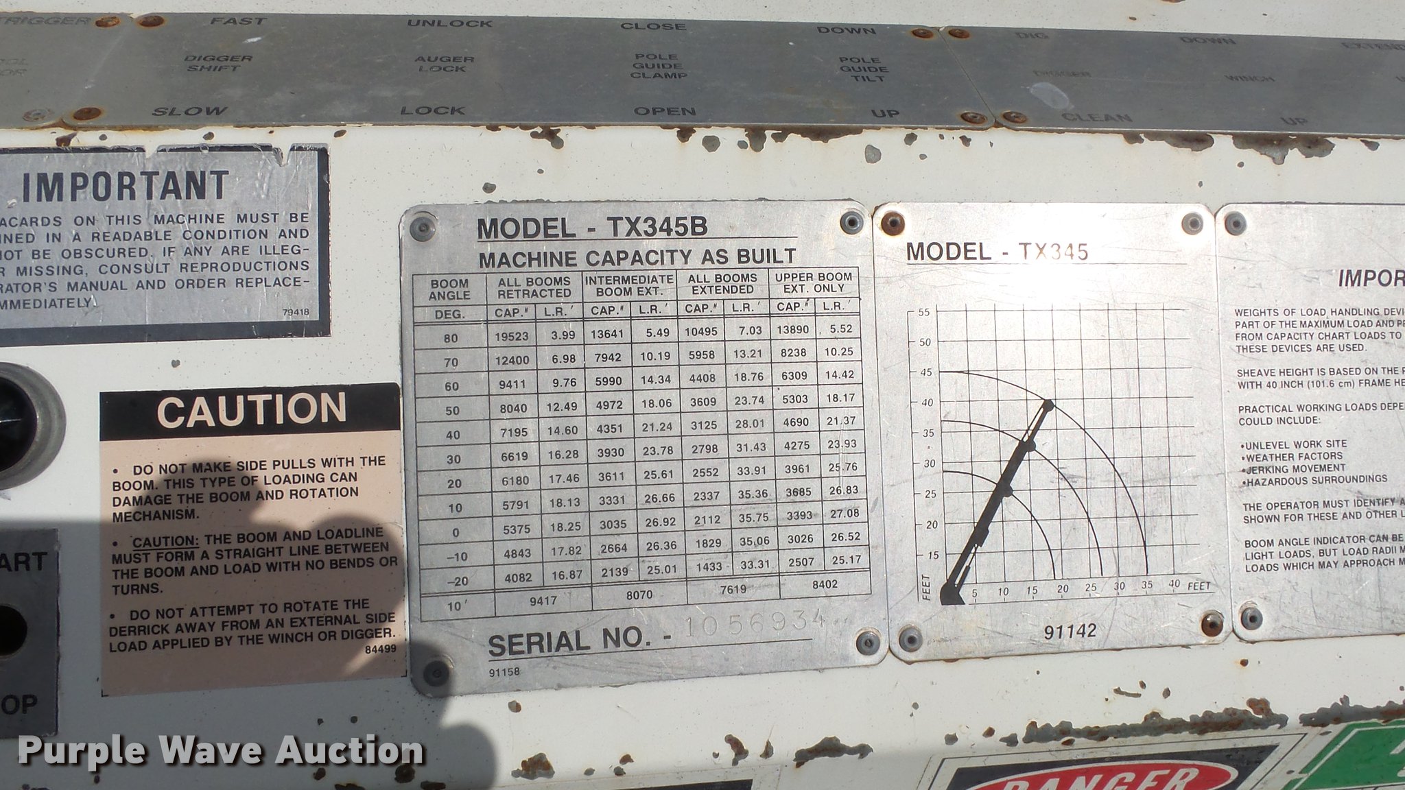 Purple Wave is selling a used Digger Derrick Truck in Kansas. This item is a 1991 Ford F800 digger derrick truck with the following: 101,225 miles on odometer, 7.8L L6 turbo diesel engine, Automatic transmission, AC and heat, AM/FM, Manual windows and locks, Vinyl interior, Brake controller, Munice PTO, UEC TX344B2 digger derrick bed, Approx. 14'L x 8'W, Steel deck, Toolboxes, Hydraulic hose reel, Left and right control stations, Texoma TX345 digger derrick, Approx. 8'L x 16" diameter auger, 45' max lift height, 40' max reach length, Rope material handler, Outriggers, Pintle hitch, Trailer wiring, Air brakes, 10.00R20 tires, Dead battery, Hydraulic leak on digger