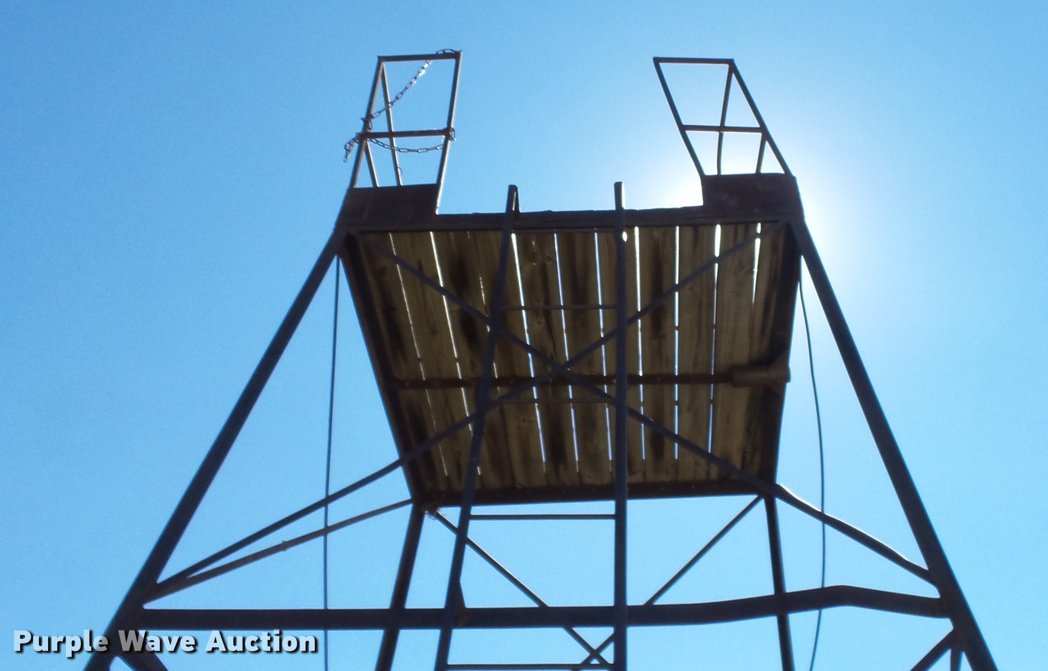Purple Wave is selling a used Building Materials in Kansas. This item is a Film tower with the following: Approx. 8' x 8' x 20'H, Wood platform, Steel frame