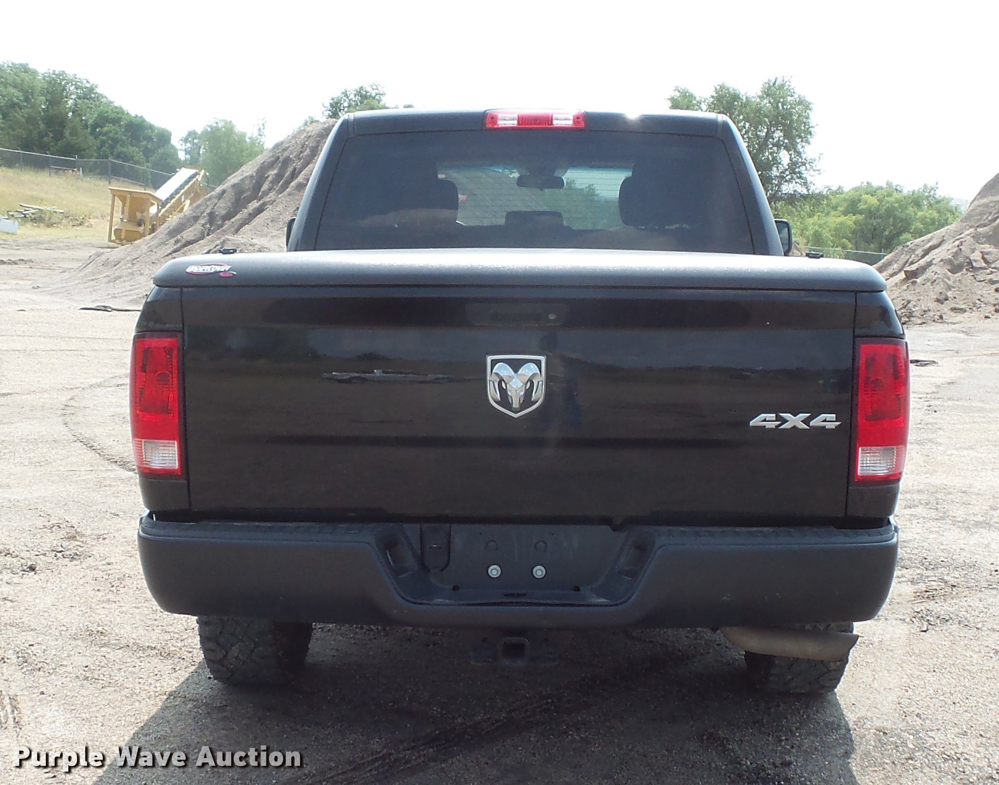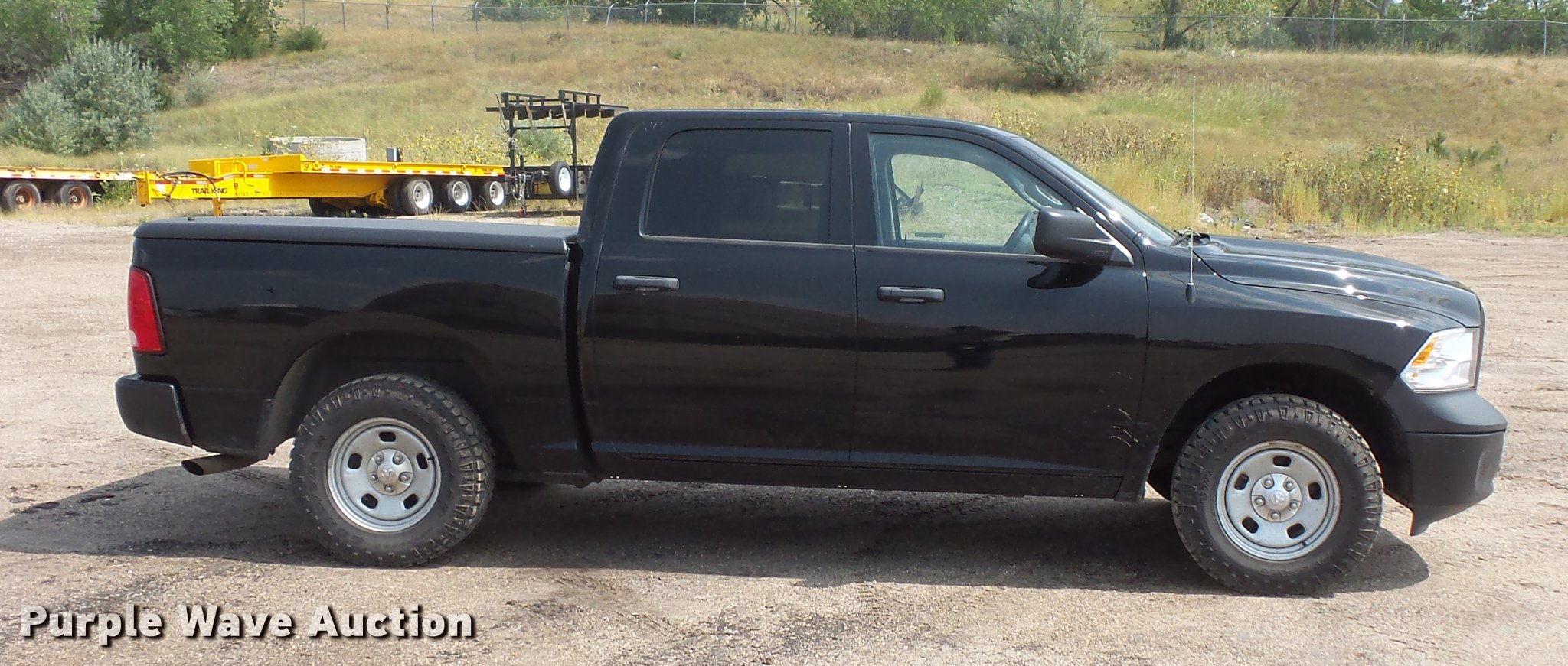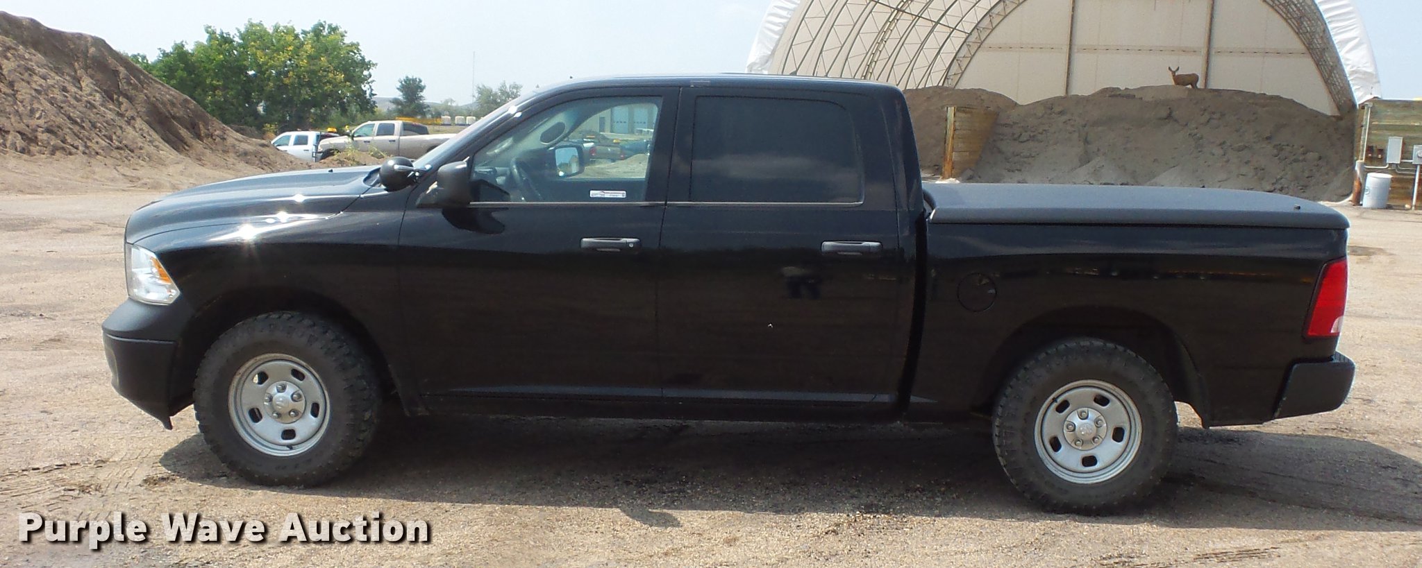 Purple Wave is selling a used 1/2 Ton Pickup or Van in South Dakota. This item is a 2014 Dodge Ram 1500 Crew Cab pickup truck with the following: 126,971 miles on odometer, 5.7L V8 OHV 16V gas engine, Automatic transmission, Four wheel drive, AC and heat, Tilt, Cruise, AM/FM, Power windows, locks, mirrors, and seat, Cloth front interior, Vinyl rear interior, Front tow hooks, Undercover bed cover, Bedslide slide-out tray, Receiver hitch, Trailer wiring, 265/70R17 tires, Hail damage, Upper control arms loose, Equip# CH202, Asset# 353306
