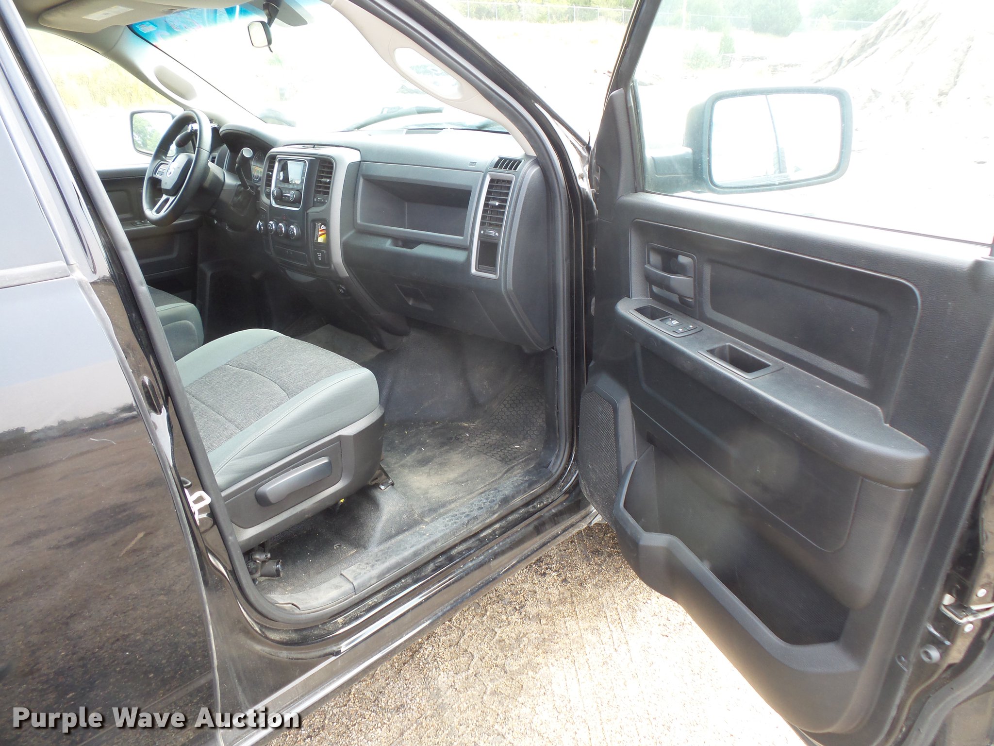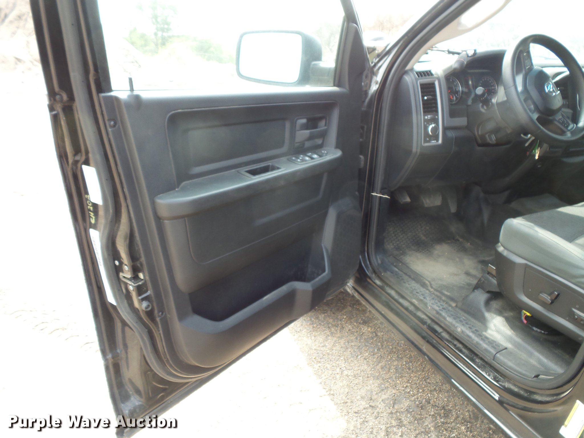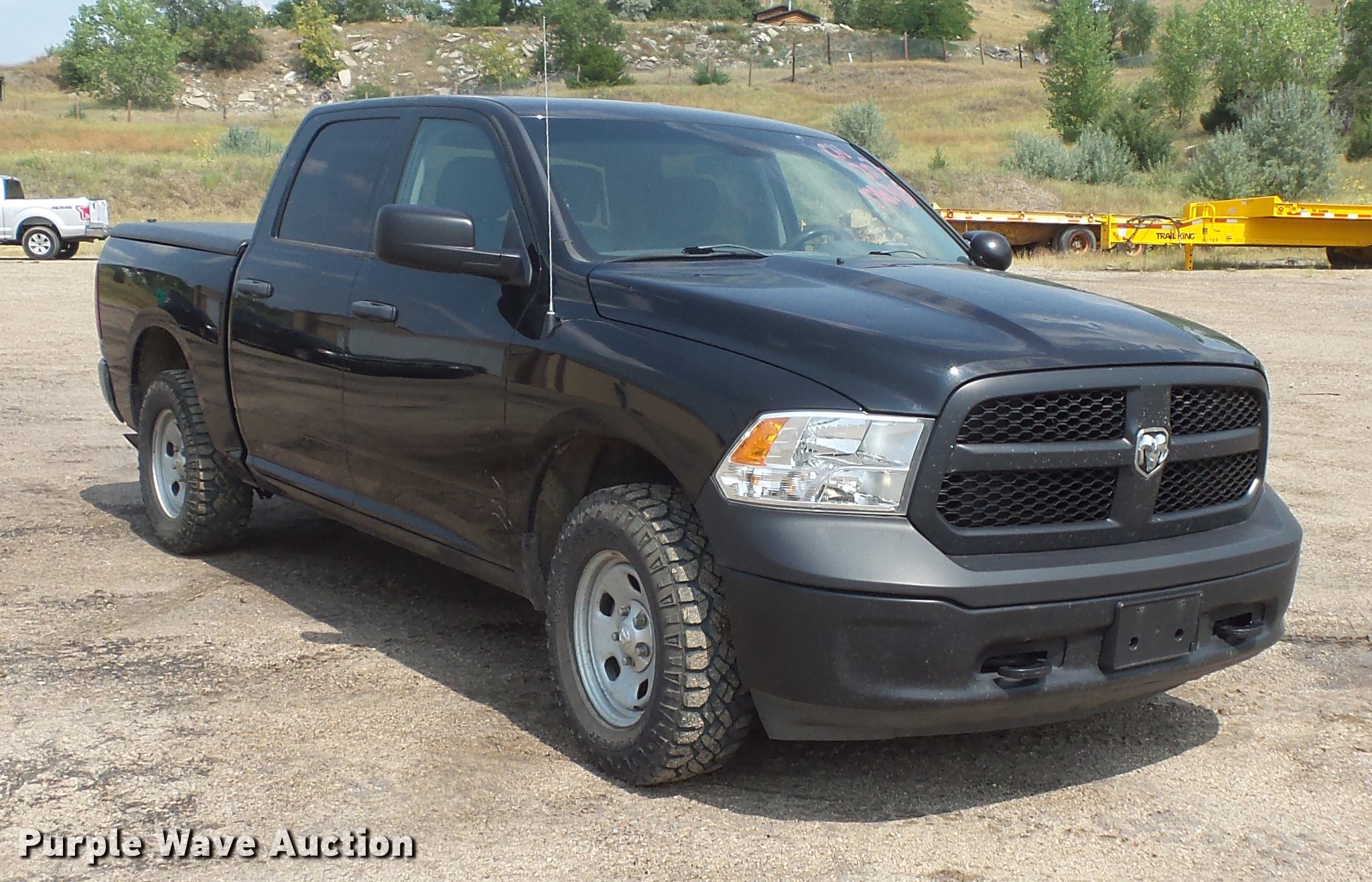 Purple Wave is selling a used 1/2 Ton Pickup or Van in South Dakota. This item is a 2014 Dodge Ram 1500 Crew Cab pickup truck with the following: 126,971 miles on odometer, 5.7L V8 OHV 16V gas engine, Automatic transmission, Four wheel drive, AC and heat, Tilt, Cruise, AM/FM, Power windows, locks, mirrors, and seat, Cloth front interior, Vinyl rear interior, Front tow hooks, Undercover bed cover, Bedslide slide-out tray, Receiver hitch, Trailer wiring, 265/70R17 tires, Hail damage, Upper control arms loose, Equip# CH202, Asset# 353306