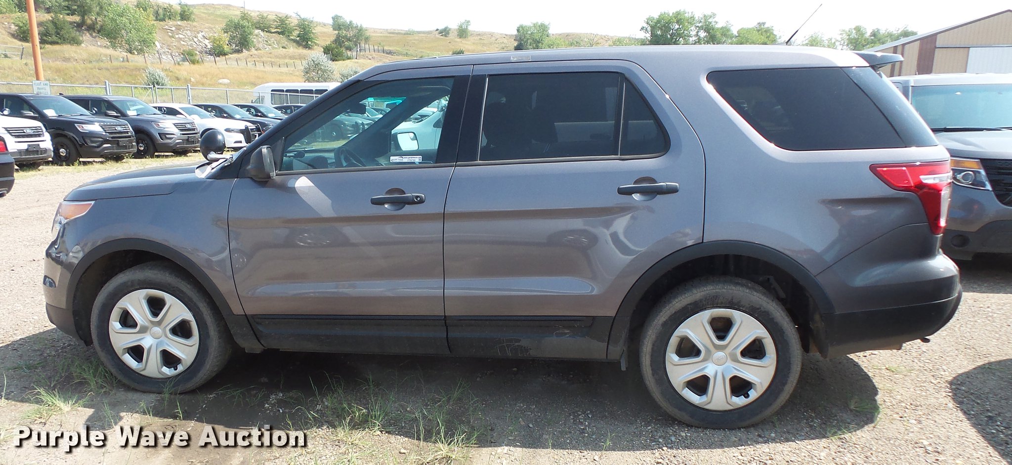 Purple Wave is selling a used Passenger Vehicle in South Dakota. This item is a 2013 Ford Explorer Police Interceptor SUV with the following: Unknown miles on odometer, 3.7L V6 DOHC 24V gas engine, Automatic transmission, AC and heat, Tilt, Cruise, AM/FM, Power windows, locks, mirrors, and seat, Cloth front interior, Vinyl rear interior, 245/55R18 tires, No battery, Catalytic converter issues, Equip# BT054, Asset# 352236