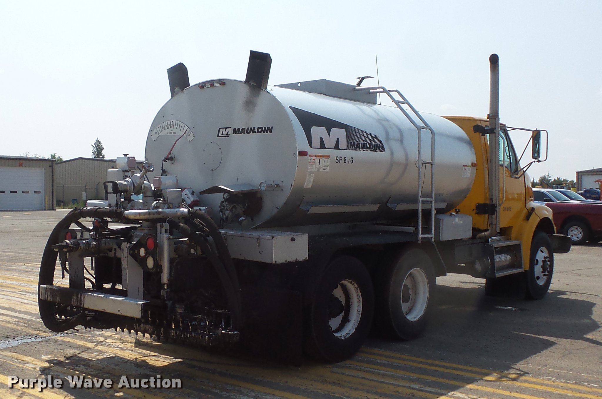 Purple Wave is selling a used Oil Distributor Truck in South Dakota. This item is a 2008 Sterling oil distributor truck with the following: 28,710 miles on odometer, Cummins ISC 8.3L L6 turbo diesel engine, 10 speed manual transmission, Tandem axle, AC and heat, AM/FM, Air suspension seat, Single exhaust stack, Front mounted PTO, Mauldin controller, Diesel burner, In-cab controls, Spray wand, Wash hose, 16'W spray boom, Side shift, (48) nozzles, Single fuel tank, Spring suspension, Air brakes, 180" wheelbase, 12R22.5 tires, GVWR 54,600 lbs, Equip# DN606, SF846, Asset# 346896, 346926