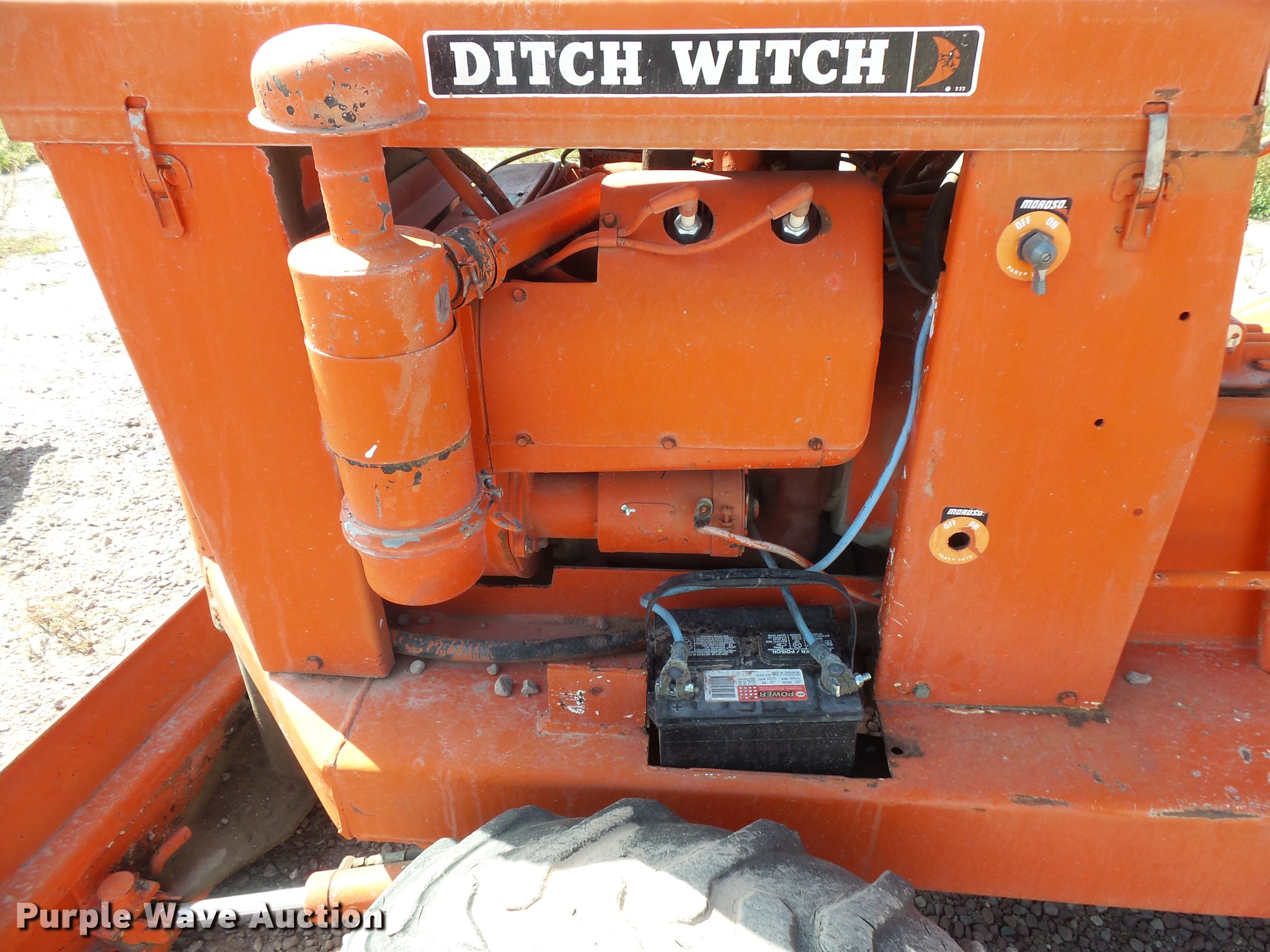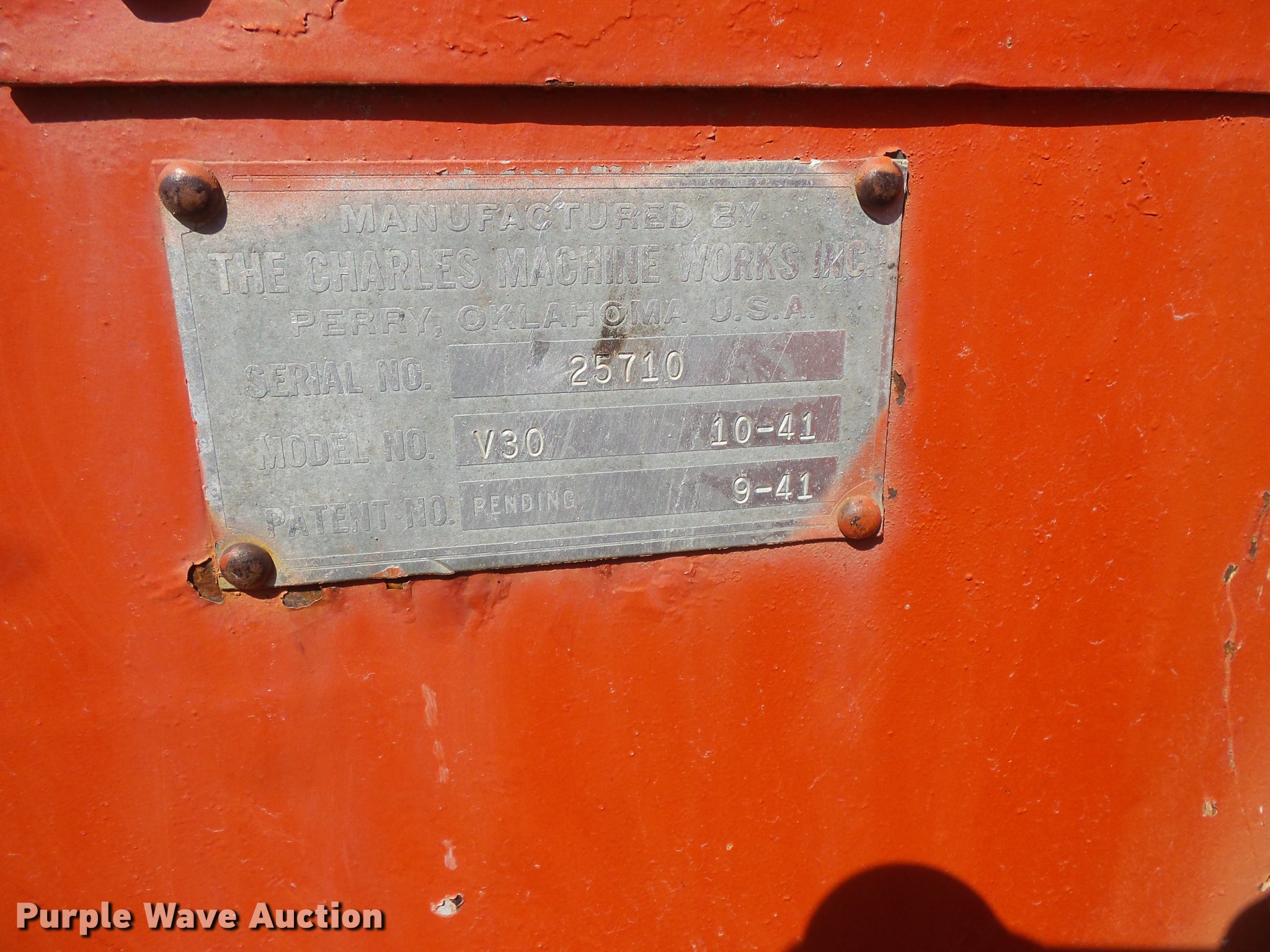 Purple Wave is selling a used Trencher or Rock Saw in Nebraska. This item is a Ditch Witch V30 trencher with the following: 333 hours on meter, Wisconsin VH4D four cylinder gas engine, Serial 5539387, Manual transmission, 4F-1R gears, Four wheel drive, OROPS, Trencher, 80" boom length, 4.5" cutting width, 4.5" diameter end idler, Dirt teeth, 64"W four-way backfill blade, 27x8.50 tires, 1980 Charles Machine Works S4 tilt deck trailer, 17'L x 75"W, 10'L ramps, D-ring tie downs, Pintle hitch, Jack stand, Single axle, 7.00-15 tires, Serial 25710