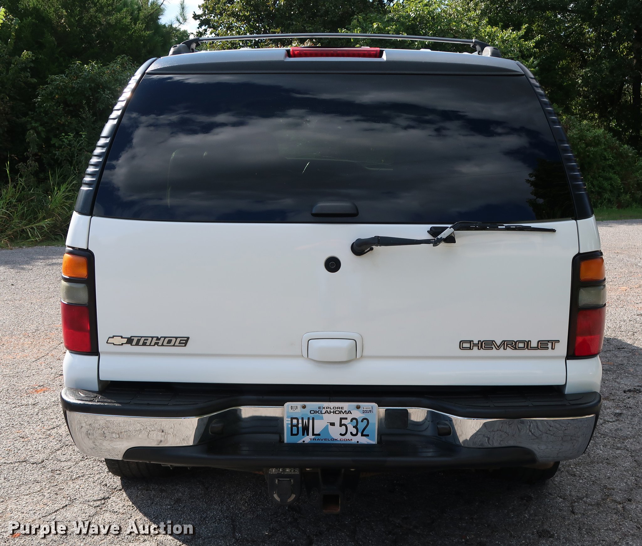 Purple Wave is selling a used Passenger Vehicle in Oklahoma. This item is a 2005 Chevrolet Tahoe LT SUV with the following: 225,941 miles on odometer, 5.3L V8 OHV 16V gas engine, Automatic transmission, AC and heat, Tilt, Cruise, AM/FM/CD, Power windows, locks, mirrors, and seats, Heated seats, Leather interior, Power sunroof, Adjustable foot pedals, Fog lights, Running boards, Receiver hitch, Trailer wiring, Goodyear Eagle RS-A P265/60R17 tires, Cracked windshield, Cracked drivers side mirror