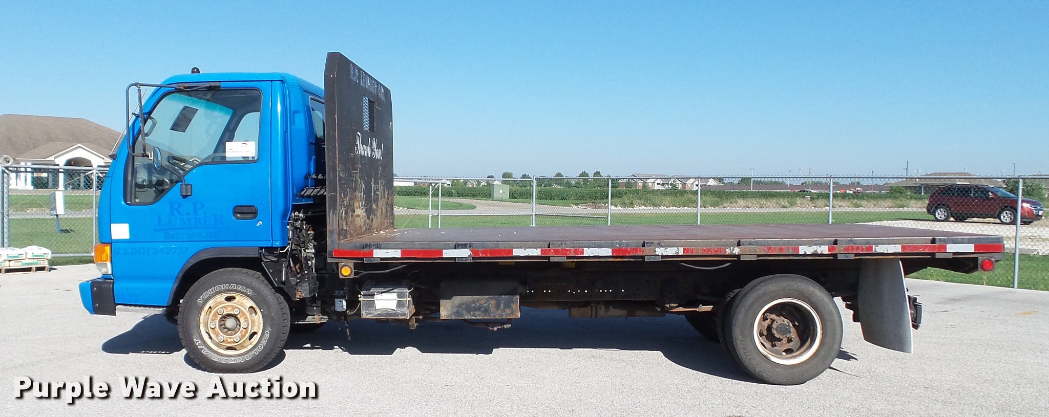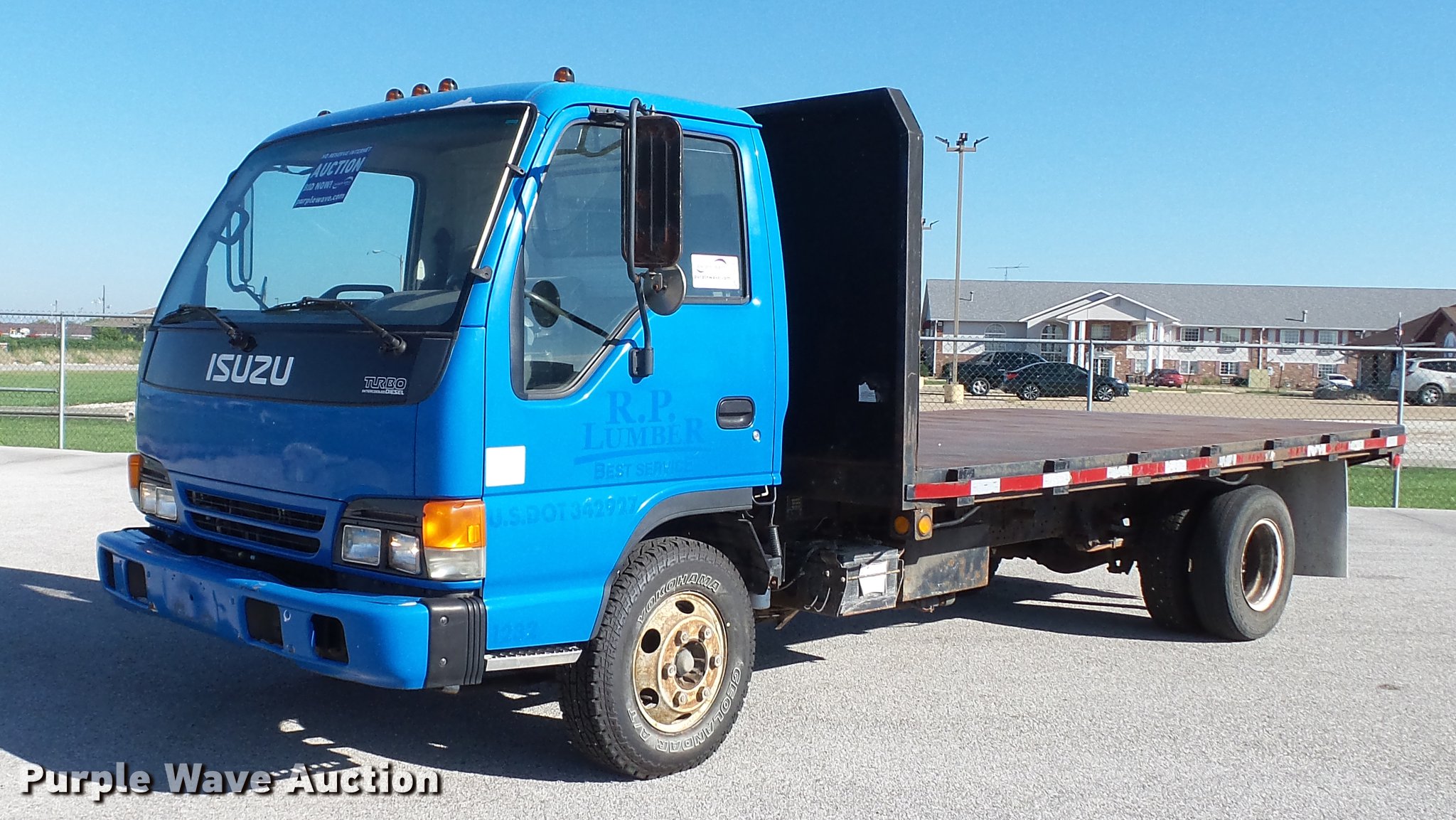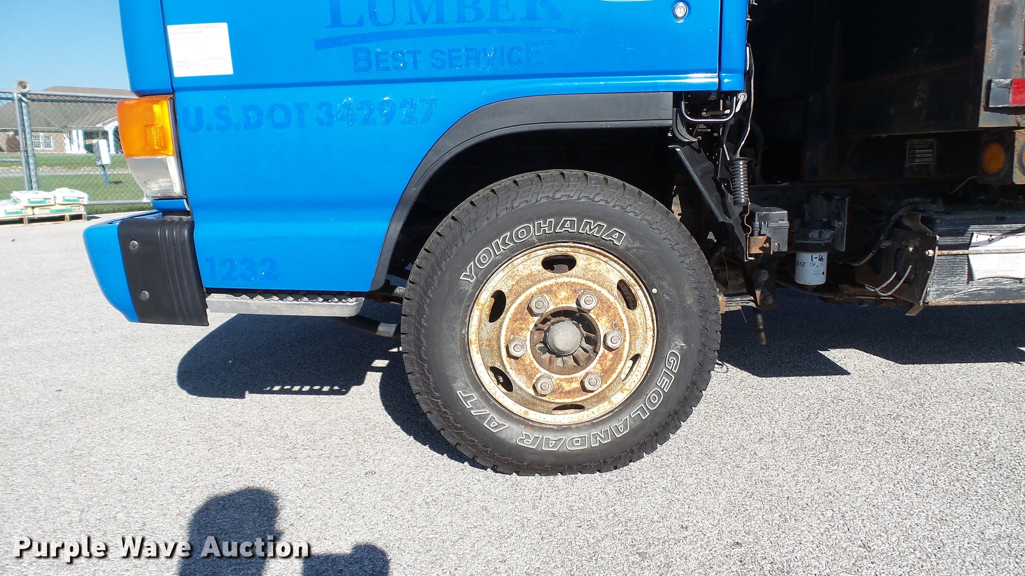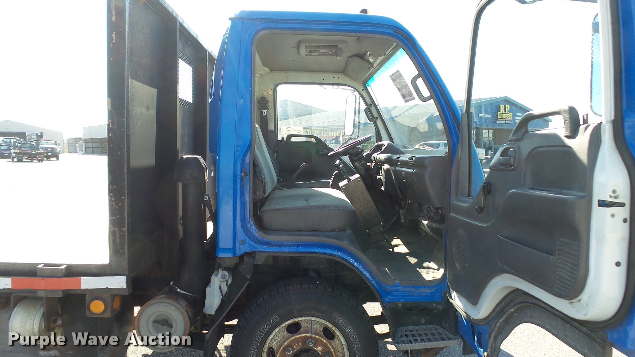 Purple Wave is selling a used Flat Bed Truck in Illinois. This item is a 2003 Isuzu NPR dump flatbed truck with the following: 188,035 miles on odometer, Isuzu 4HE1XN 4.75L four cylinder turbo diesel engine, Isuzu five speed manual transmission, Single axle, AC and heat, 14'L x 98"W dump flatbed, Steel floor, (4) 4" strap binders, Hydraulic dump, Single fuel tank, Receiver hitch, Trailer wiring, Spring suspension, Hydraulic brakes, LT215/85R16 tires, GVWR 14,500 lbs, ABS light on, Unit# 1232
