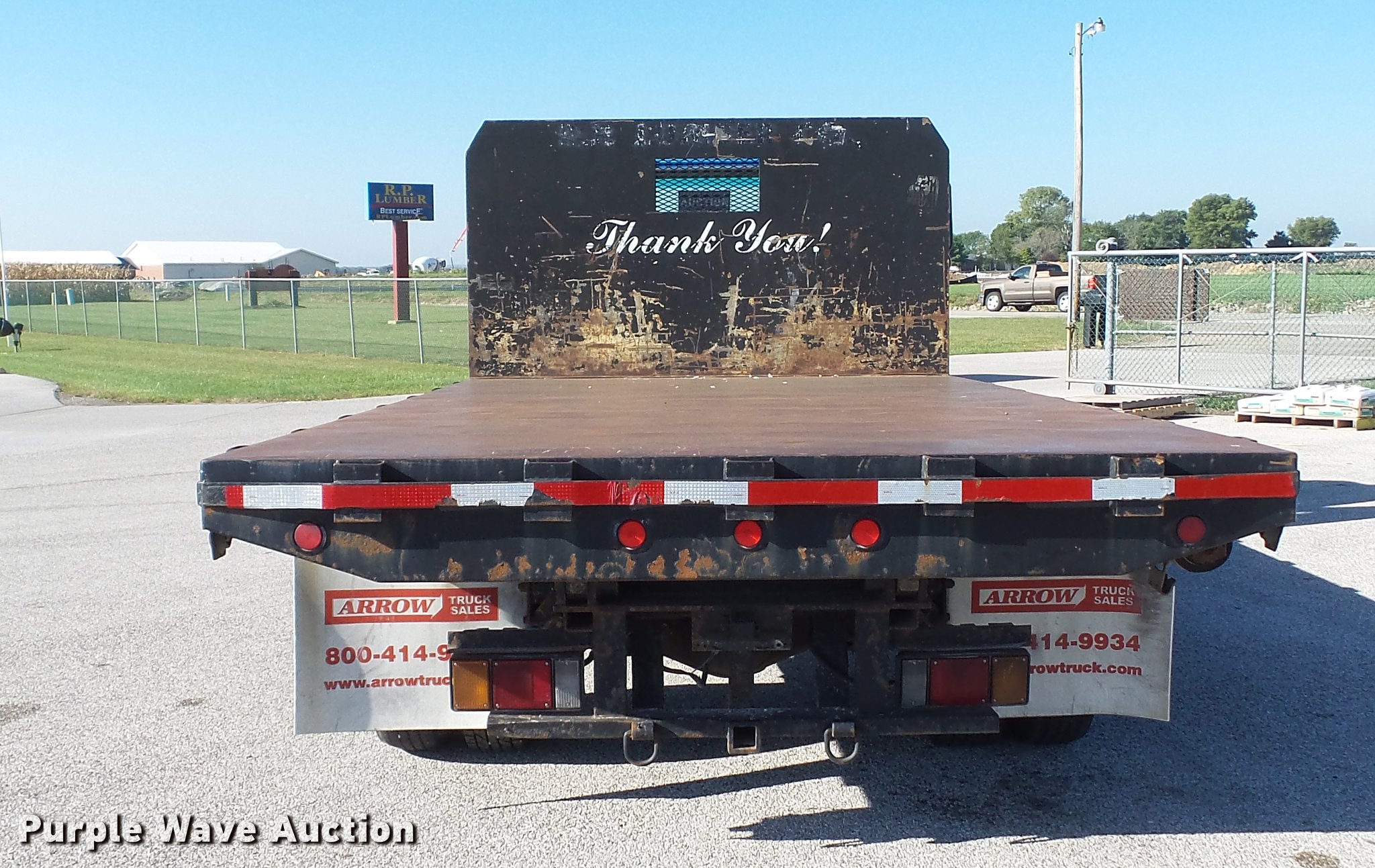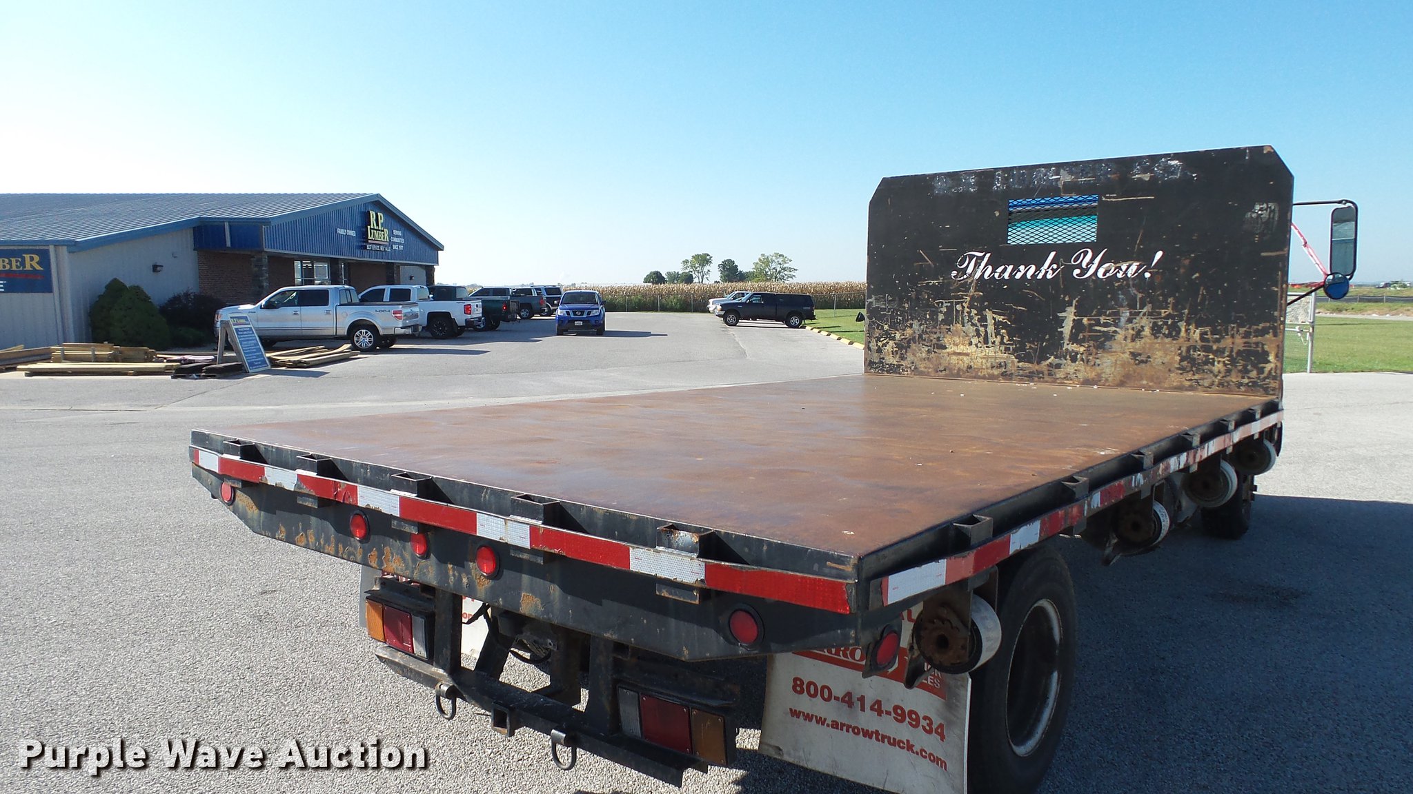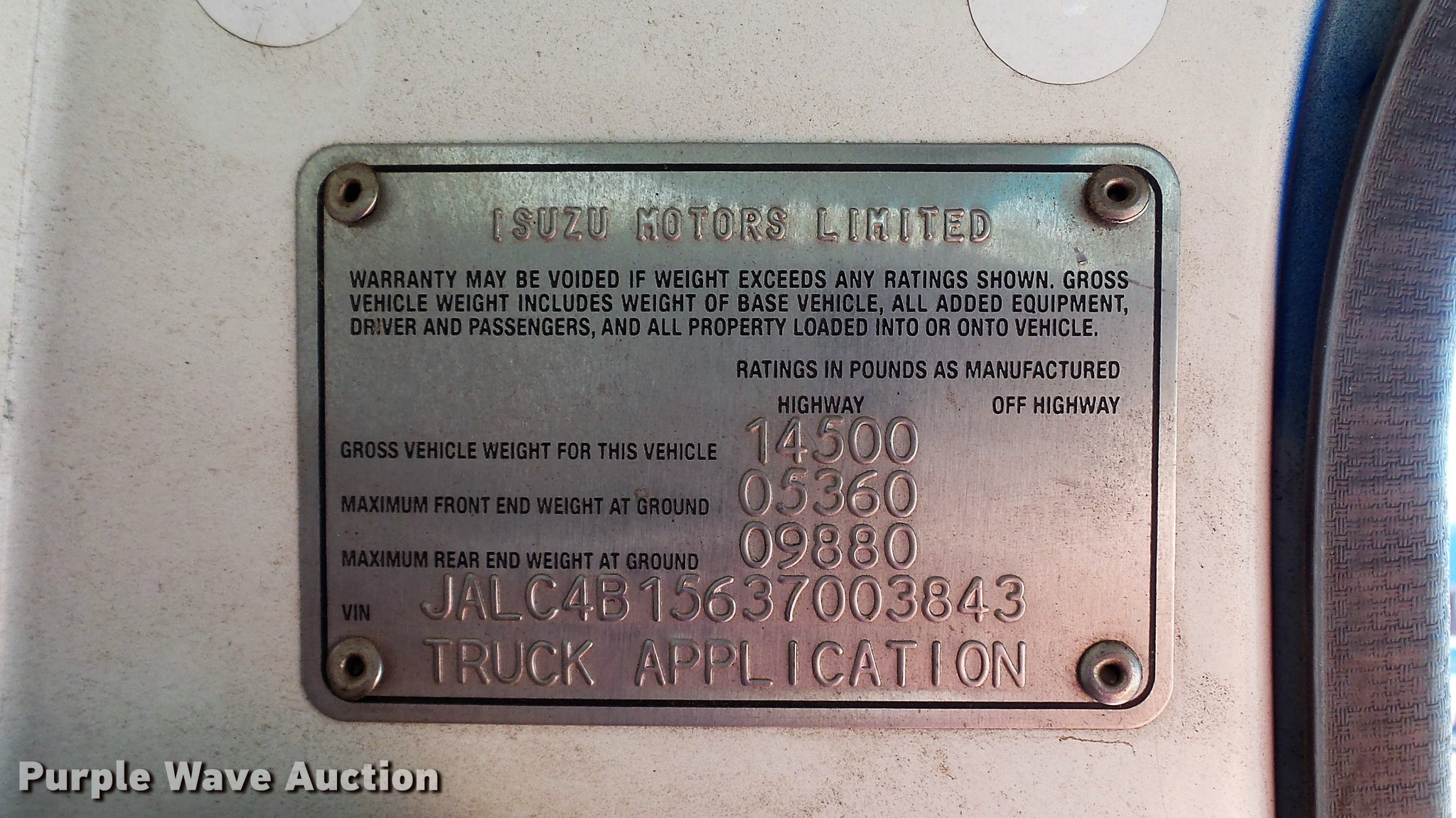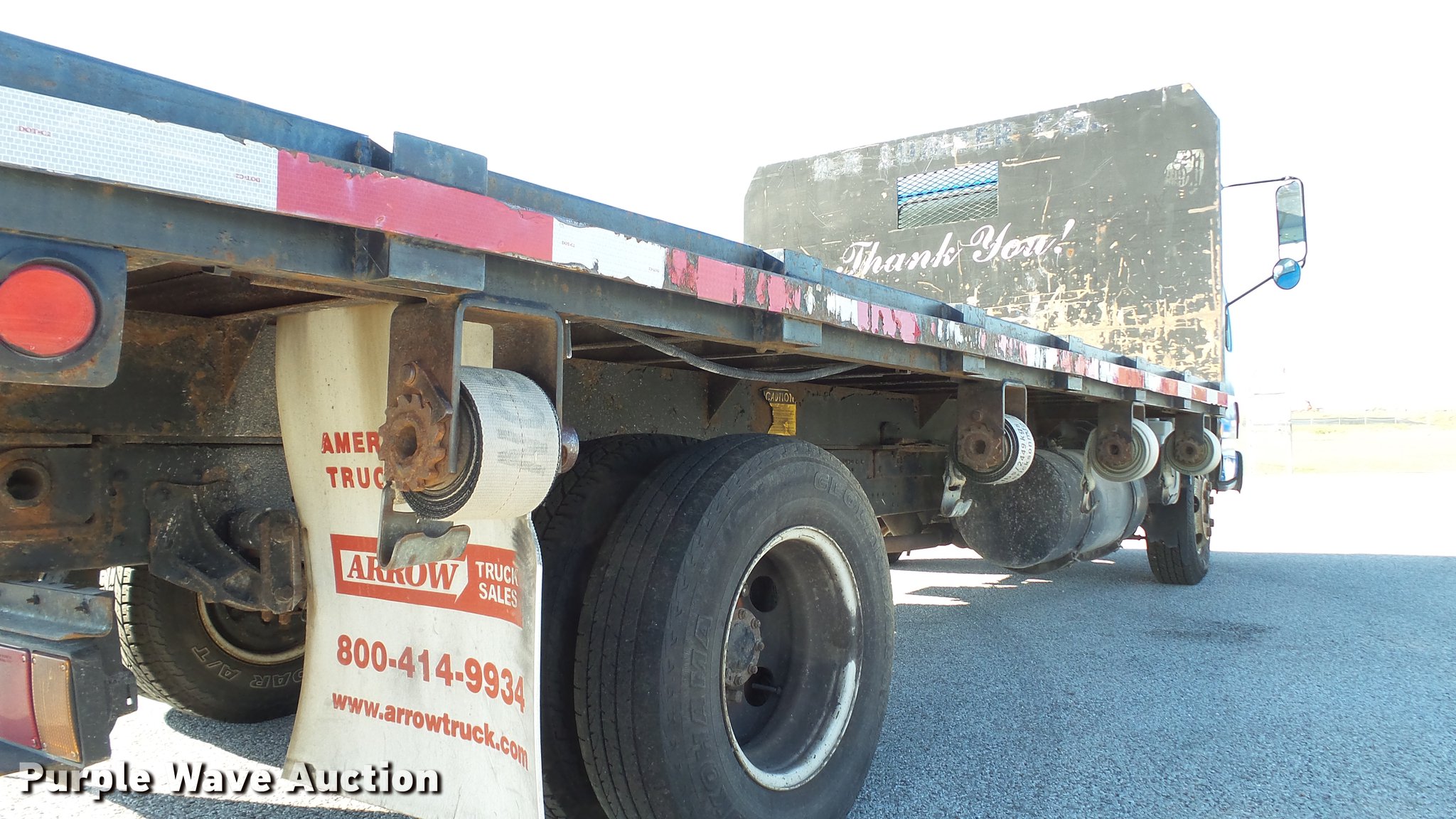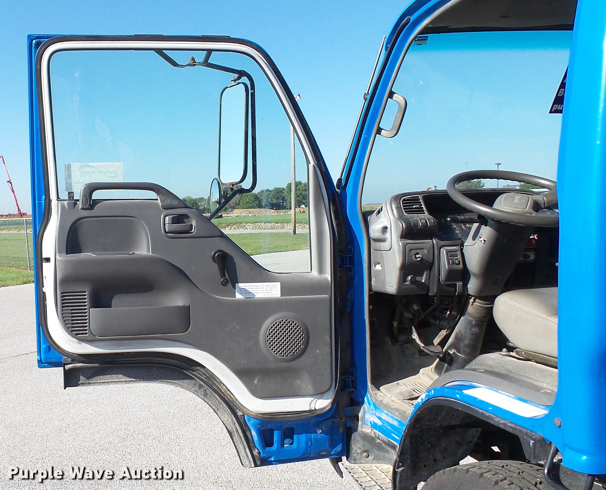 Purple Wave is selling a used Flat Bed Truck in Illinois. This item is a 2003 Isuzu NPR dump flatbed truck with the following: 188,035 miles on odometer, Isuzu 4HE1XN 4.75L four cylinder turbo diesel engine, Isuzu five speed manual transmission, Single axle, AC and heat, 14'L x 98"W dump flatbed, Steel floor, (4) 4" strap binders, Hydraulic dump, Single fuel tank, Receiver hitch, Trailer wiring, Spring suspension, Hydraulic brakes, LT215/85R16 tires, GVWR 14,500 lbs, ABS light on, Unit# 1232