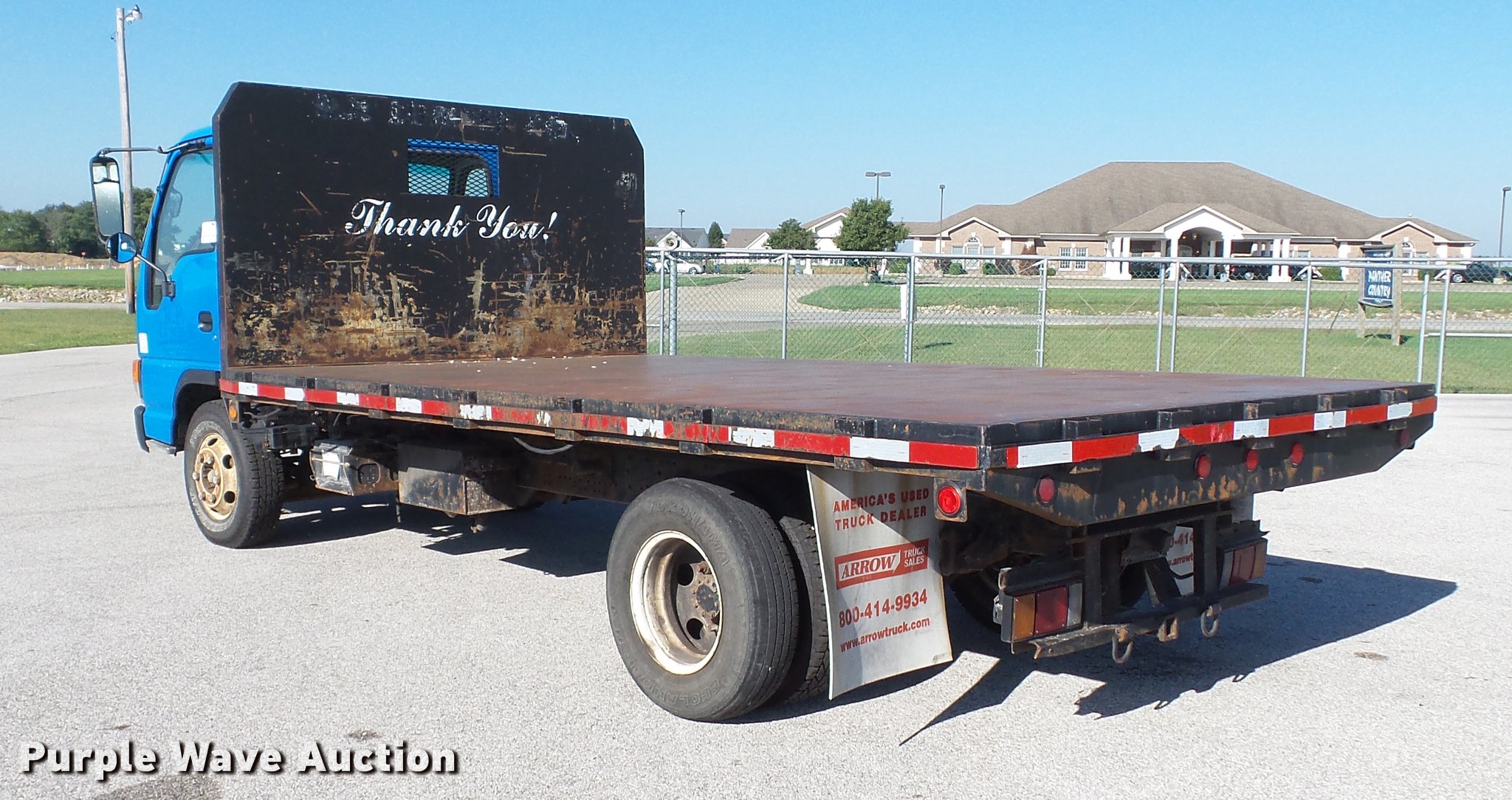 This 2003 Isuzu NPR dump flatbed truck will sell to the highest bidder regardless of price.