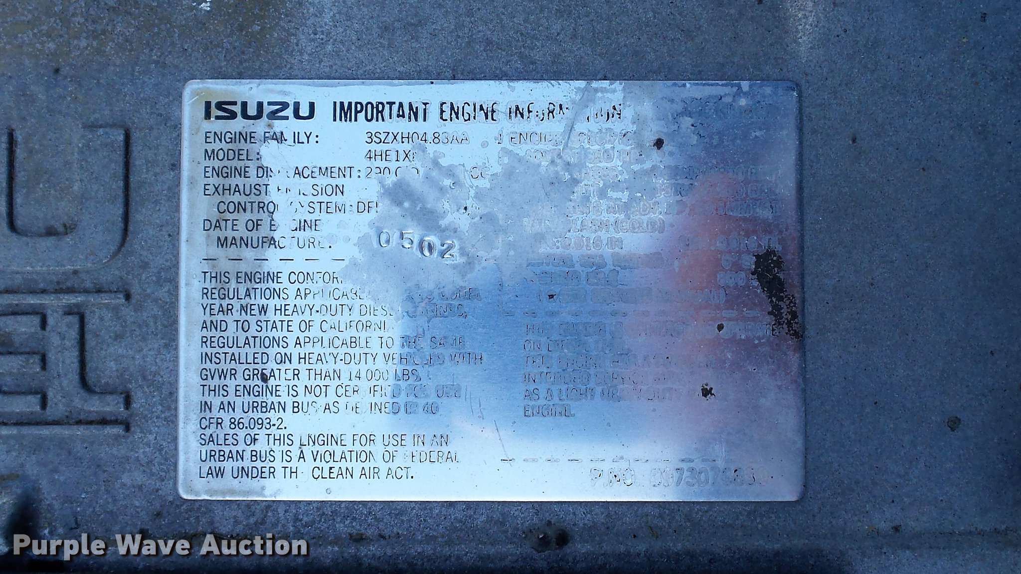 - Isuzu 4HE1XN 4.75L four cylinder turbo diesel engine
