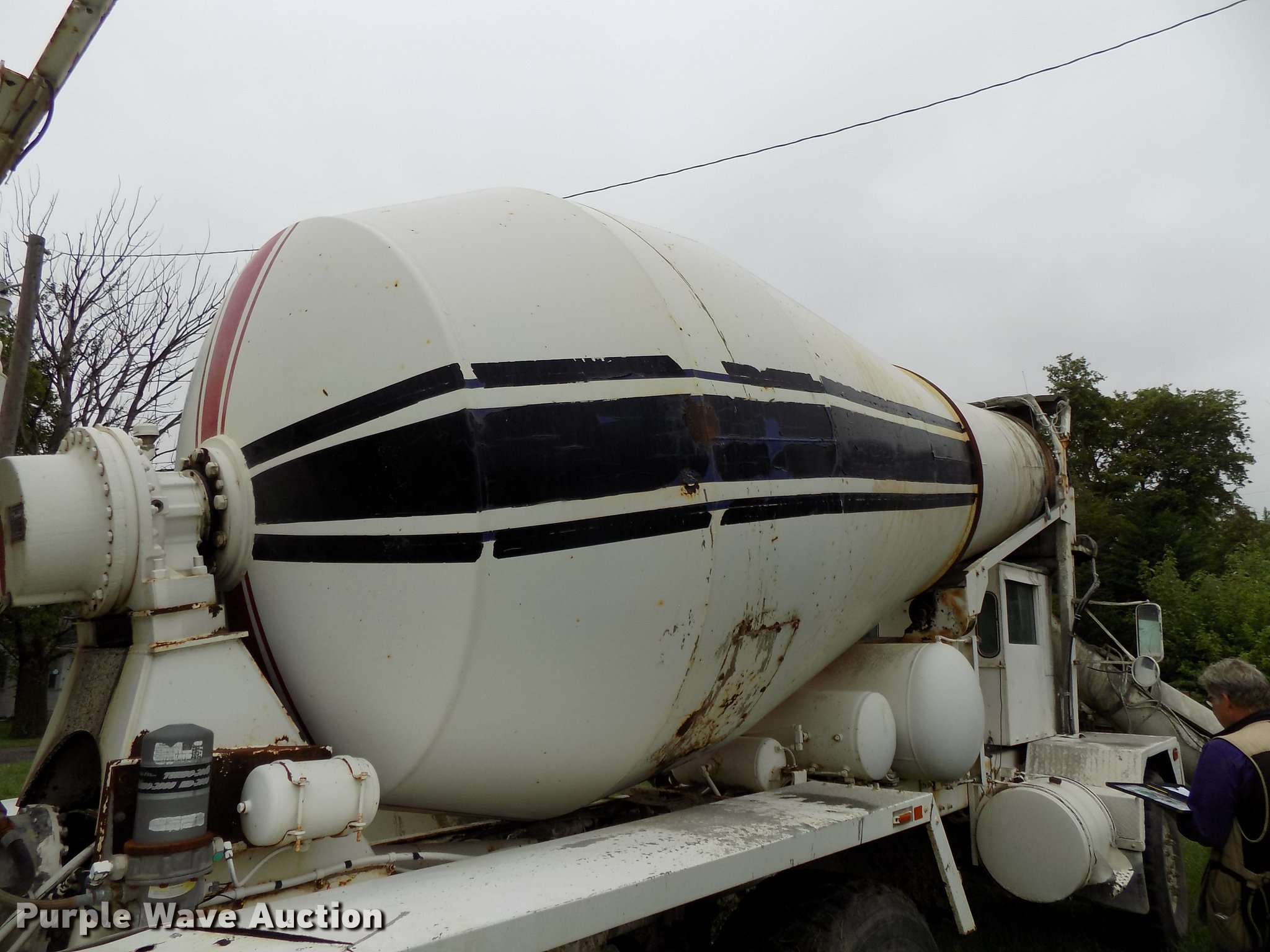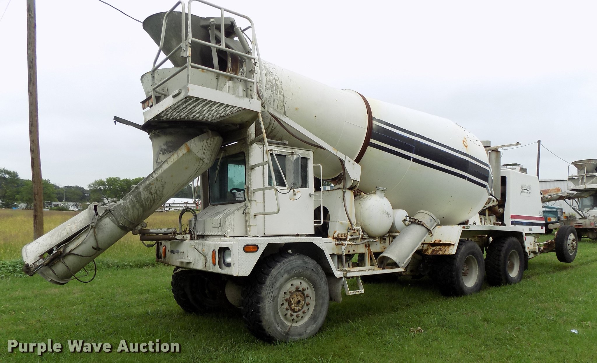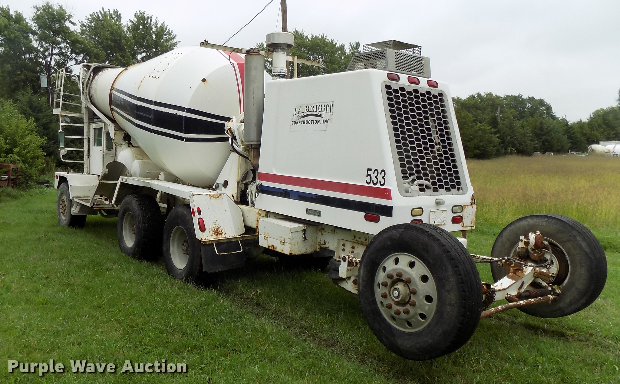Purple Wave is selling a used Ready Mix or Pump Truck in Nebraska. This item is a 1999 Advance C10350A76811 ready mix truck with the following: 478 hours on meter, Caterpillar C10 six cylinder turbo diesel engine, 350 HP, Serial 8YS06994, Automatic transmission, Full locking differential, Tandem axle, Tag axle, Heat, Suspension seat, PTO, Backup alarm, Advance mixer bed, 11 cu.yd. capacity, Ladder, Chute extension, Front discharge, Front drum controls, Serial 6902299, Walking beam suspension, Air brakes, Engine brake, Aluminum wheels, 445/65R22.5 front tires, 11R22.5 tag axle tires, 445/65R22.5 rear tires, GVWR 79,000 lbs, FAWR 21,000 lbs, IAWR 23,000 lbs, RAWR 23,000 lbs, TAWR 11,000 lbs, Unit# 533