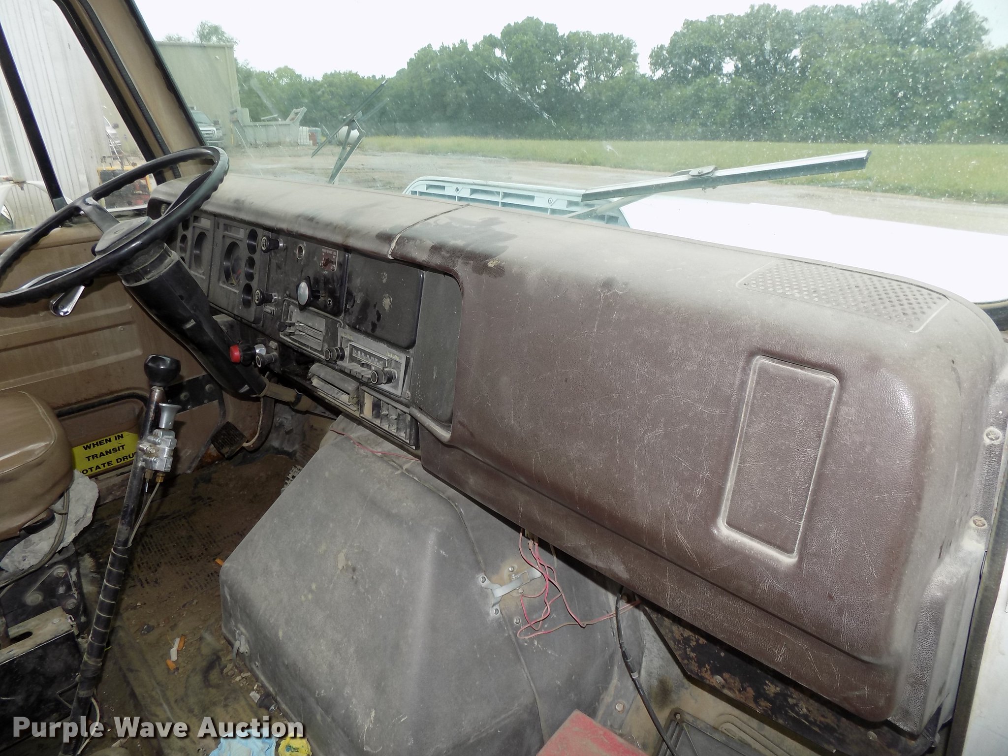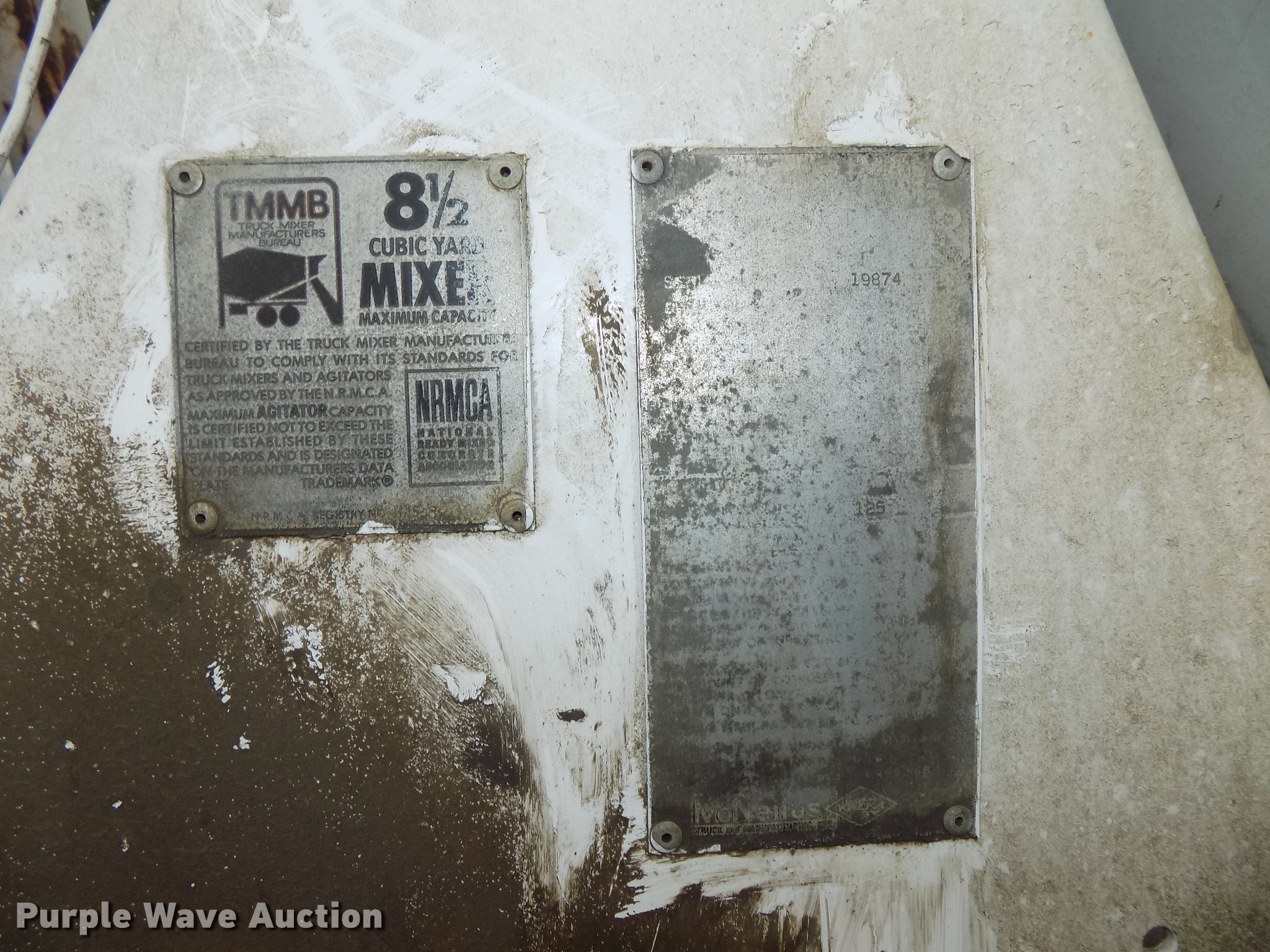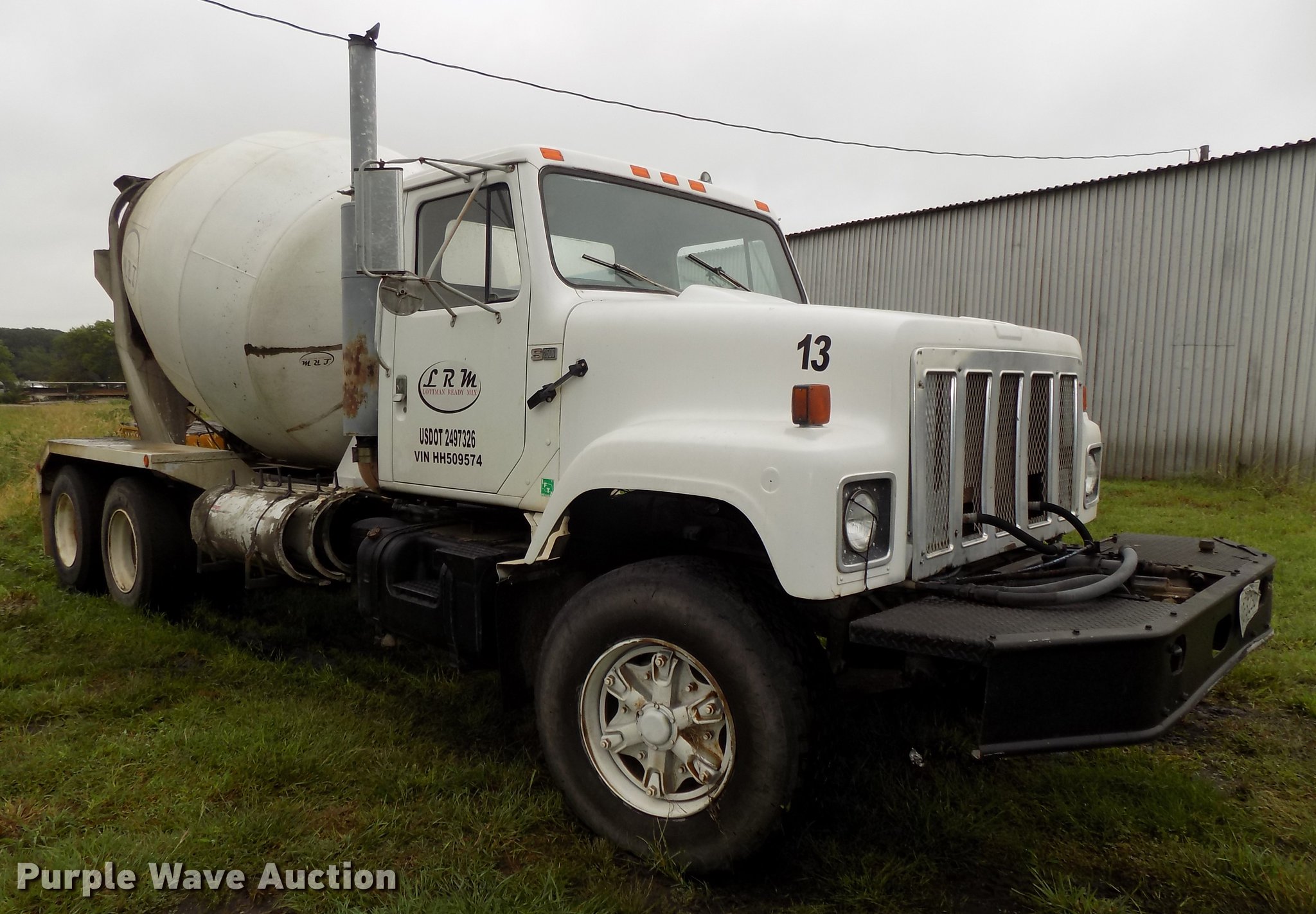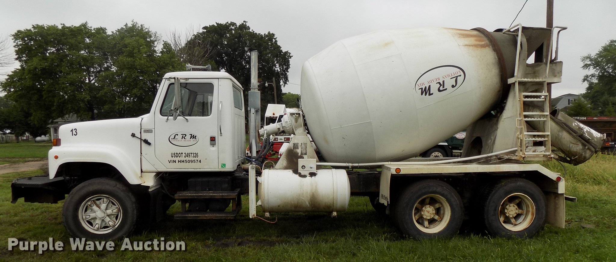 Purple Wave is selling a used Ready Mix or Pump Truck in Nebraska. This item is a 1987 International 2574 ready mix truck with the following: 192,809 miles on odometer, 1,930 hours on meter, Cummins L10 six cylinder turbo diesel engine, Eaton Fuller Road Ranger seven speed manual transmission, Inter-axle differential lock, Tandem axle, Heat, AM/FM, Air suspension seat, Drum/axle controls, Front mounted PTO, 8.5 cu.yd. mixer bed, Rear drum controls, (3) steel chutes, 125 gallon water tank, Ladder, Rear discharge, Single fuel tank, 222" wheelbase, Walking beam suspension, Air brakes, 385/65R22.5 front tires, 11R22.5 rear tires, GVWR 56,460 lbs, FAWR 18,460 lbs, IAWR 19,000 lbs, RAWR 19,000 lbs, Contents not included