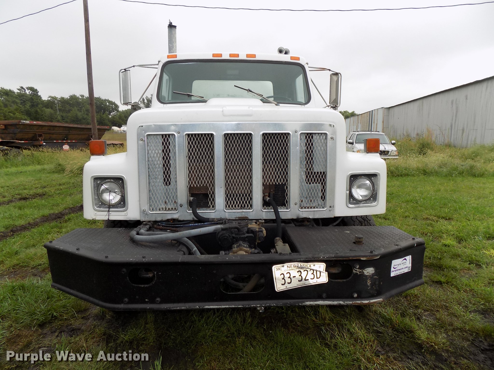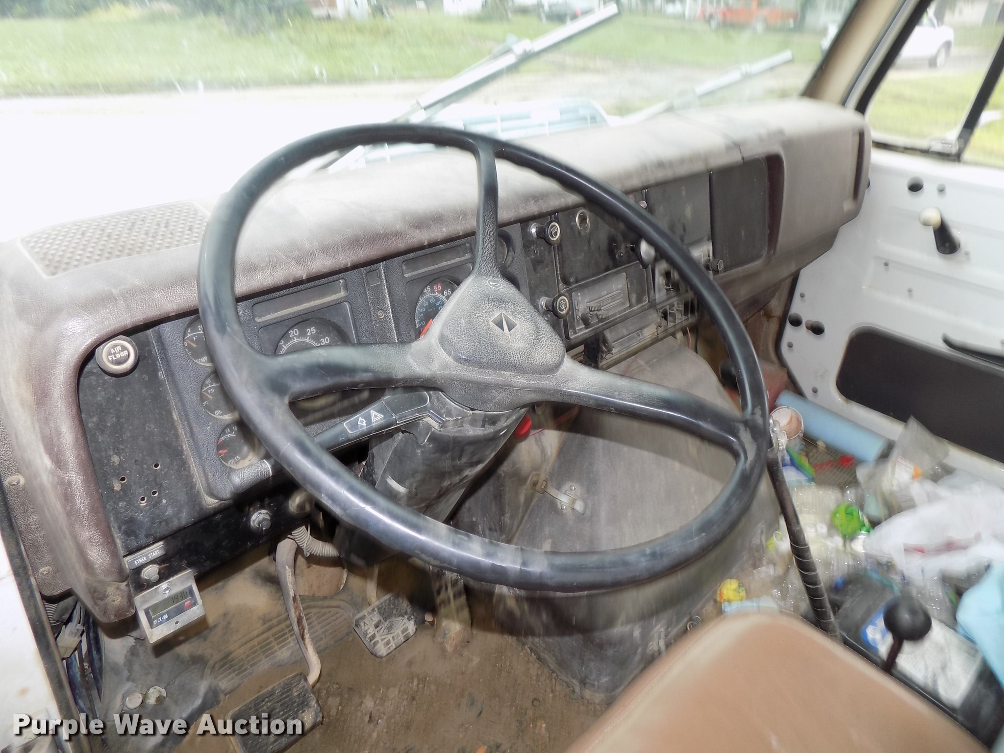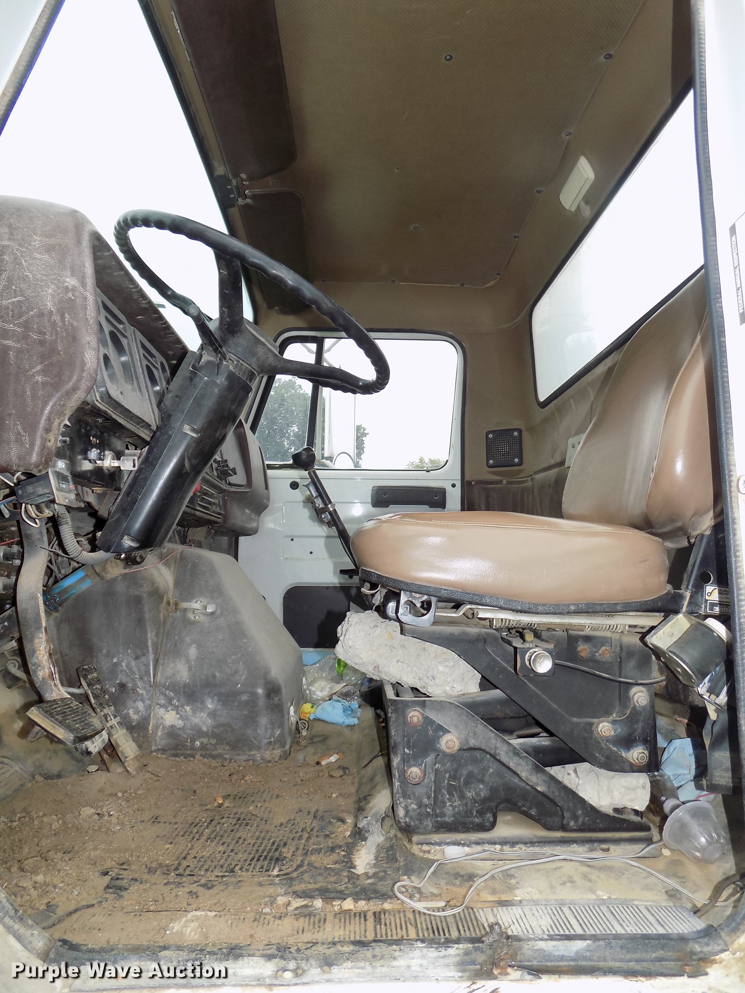 Purple Wave is selling a used Ready Mix or Pump Truck in Nebraska. This item is a 1987 International 2574 ready mix truck with the following: 192,809 miles on odometer, 1,930 hours on meter, Cummins L10 six cylinder turbo diesel engine, Eaton Fuller Road Ranger seven speed manual transmission, Inter-axle differential lock, Tandem axle, Heat, AM/FM, Air suspension seat, Drum/axle controls, Front mounted PTO, 8.5 cu.yd. mixer bed, Rear drum controls, (3) steel chutes, 125 gallon water tank, Ladder, Rear discharge, Single fuel tank, 222" wheelbase, Walking beam suspension, Air brakes, 385/65R22.5 front tires, 11R22.5 rear tires, GVWR 56,460 lbs, FAWR 18,460 lbs, IAWR 19,000 lbs, RAWR 19,000 lbs, Contents not included