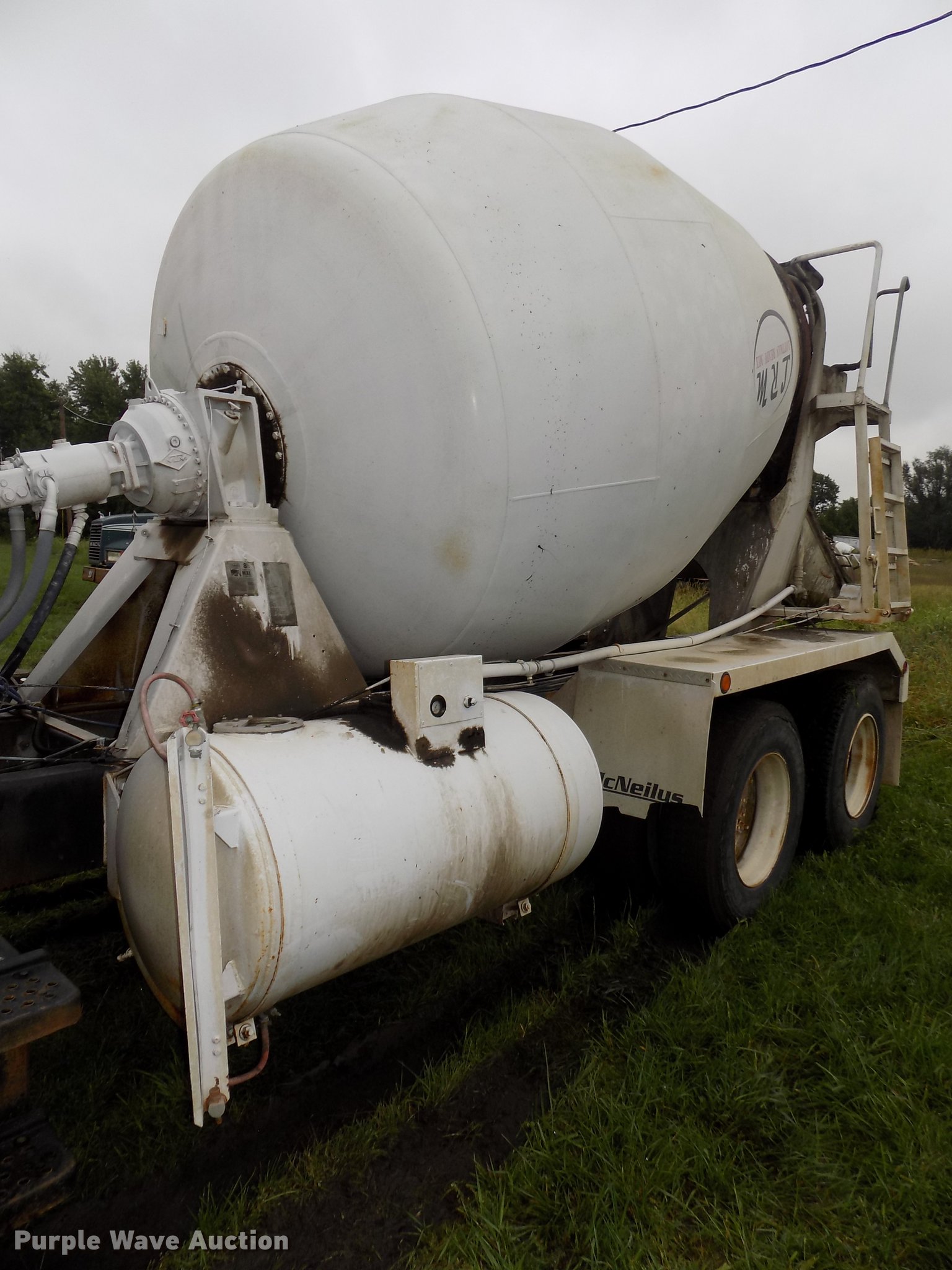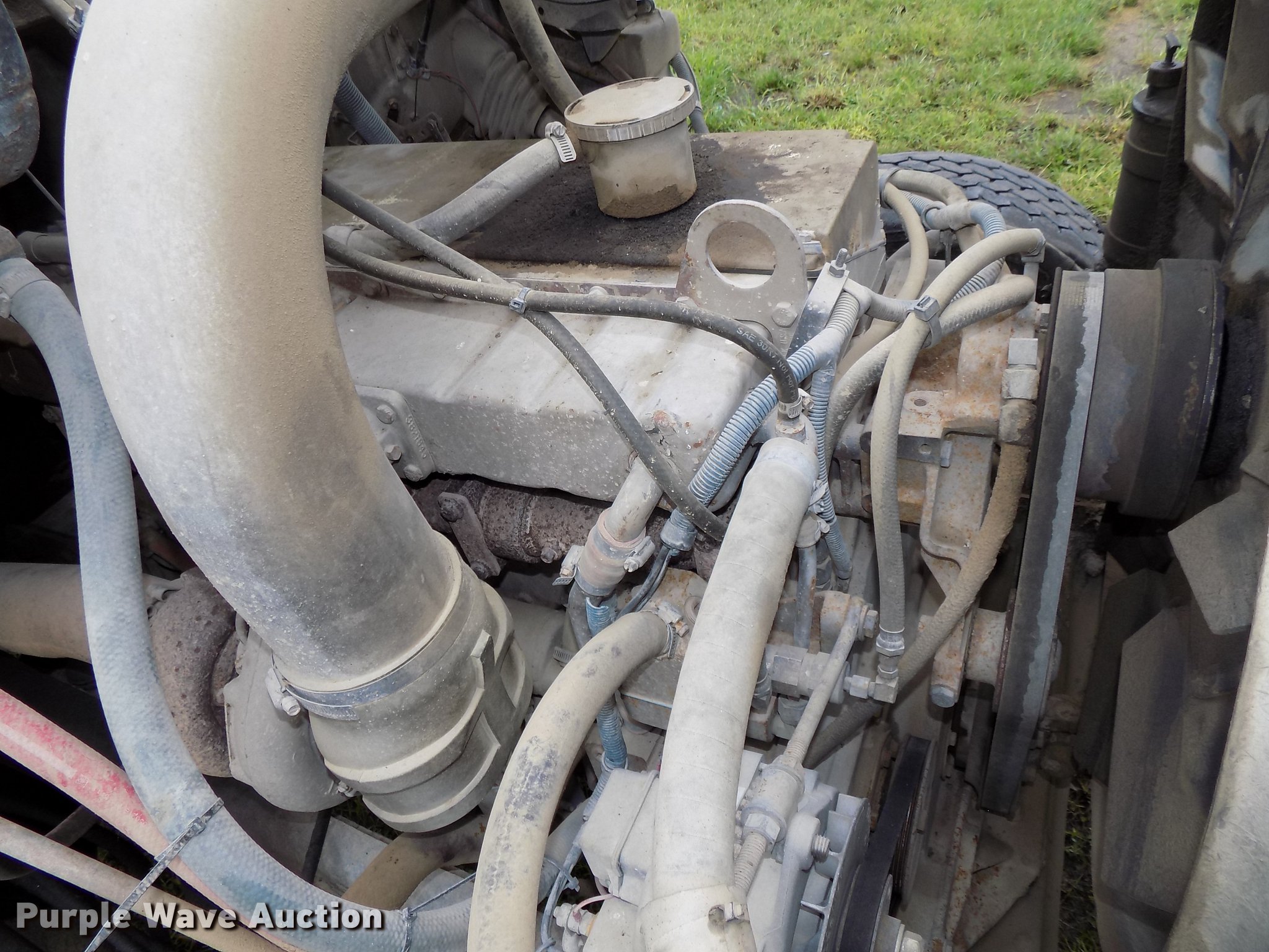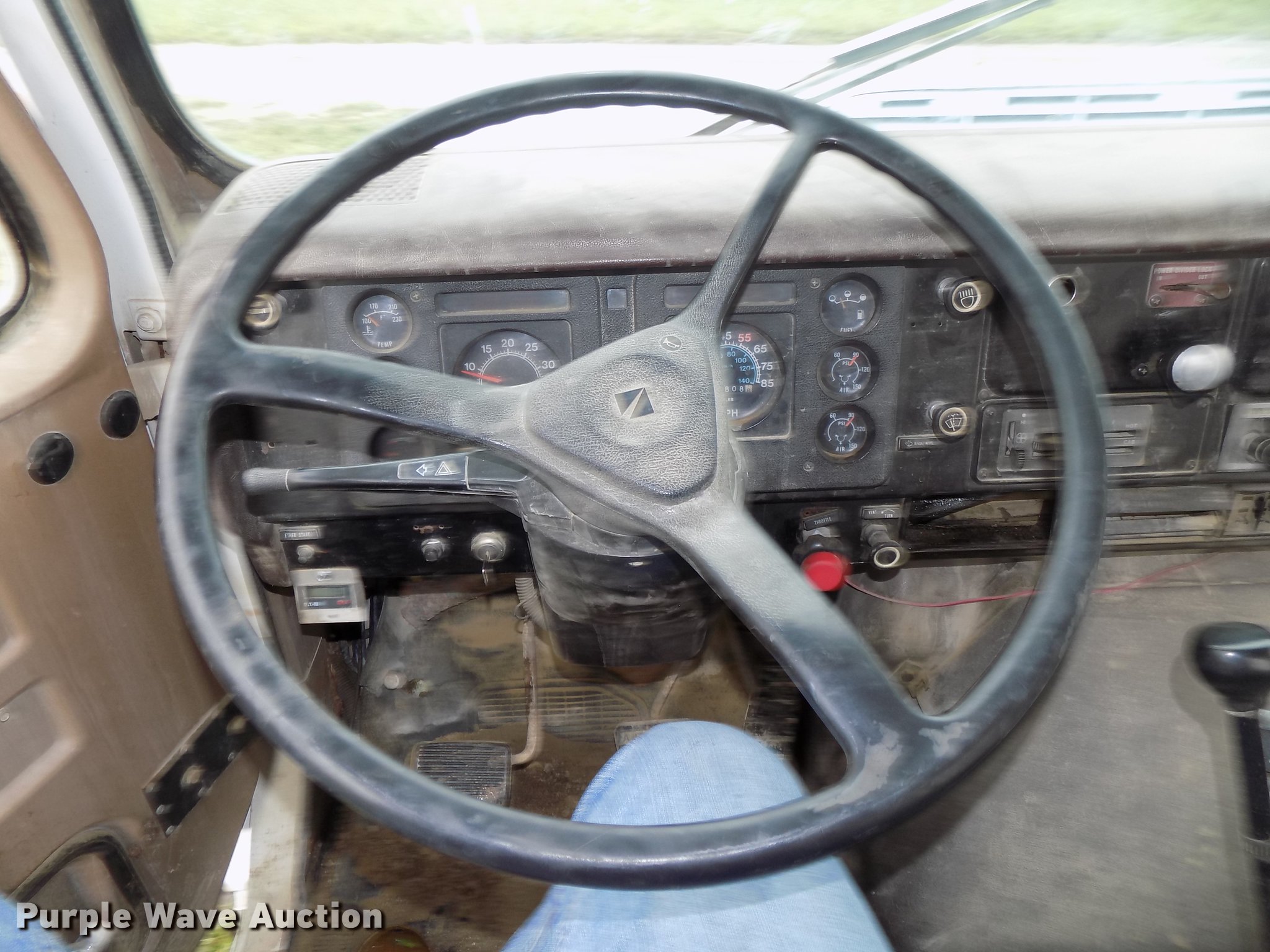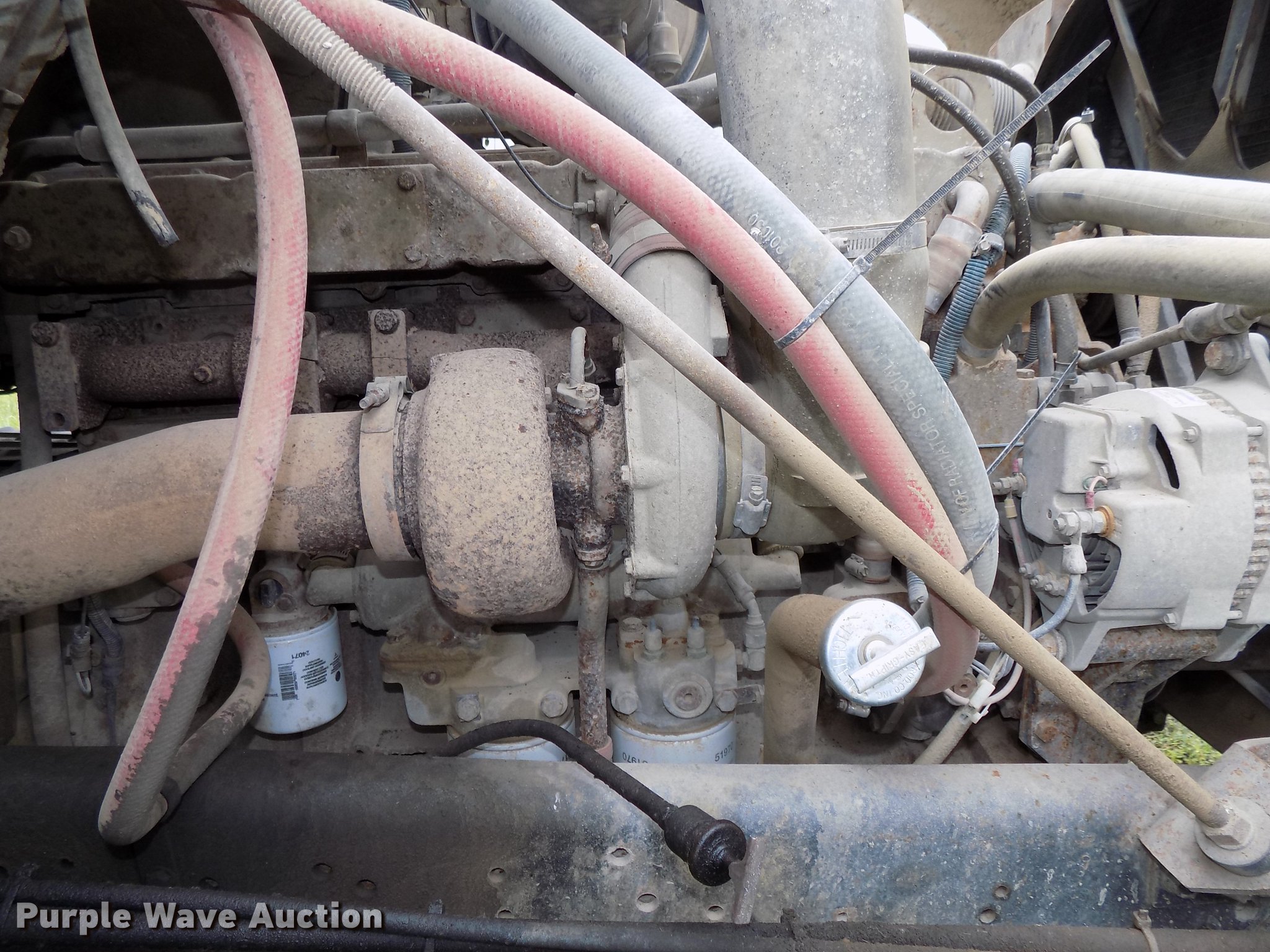Purple Wave is selling a used Ready Mix or Pump Truck in Nebraska. This item is a 1987 International 2574 ready mix truck with the following: 192,809 miles on odometer, 1,930 hours on meter, Cummins L10 six cylinder turbo diesel engine, Eaton Fuller Road Ranger seven speed manual transmission, Inter-axle differential lock, Tandem axle, Heat, AM/FM, Air suspension seat, Drum/axle controls, Front mounted PTO, 8.5 cu.yd. mixer bed, Rear drum controls, (3) steel chutes, 125 gallon water tank, Ladder, Rear discharge, Single fuel tank, 222" wheelbase, Walking beam suspension, Air brakes, 385/65R22.5 front tires, 11R22.5 rear tires, GVWR 56,460 lbs, FAWR 18,460 lbs, IAWR 19,000 lbs, RAWR 19,000 lbs, Contents not included