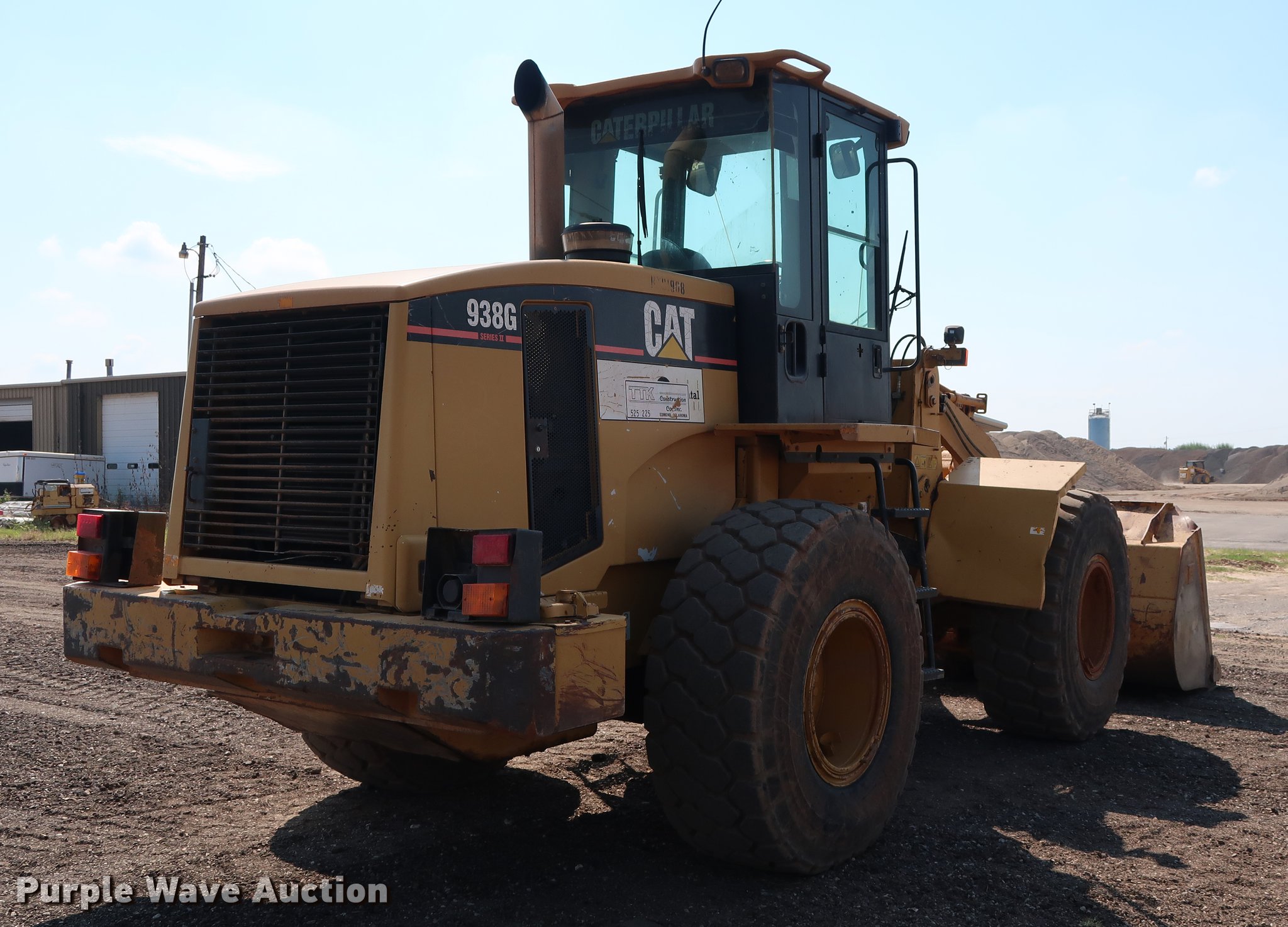 Purple Wave is selling a used Wheel Loader in Oklahoma. This item is a 2006 Caterpillar 938G Series II wheel loader with the following: 12,279 hours on meter, Caterpillar 3126 7.2L six cylinder turbo diesel engine, 260 HP, Serial BMA, Powershift transmission, 4F-4R gears, EROPS, AC and heat, Tilt steering wheel, Two-lever bucket controls, Air suspension seat, Front and rear work lights, Wipers, Backup alarm, Hydraulic quick coupler, Caterpillar 106"W bucket, Bolt-on cutting edge, 3.65 cu. yd. capacity, Front auxiliary hydraulics, Counterweight, Yokohama 20.5R25 tires, Forks selling separately as item DD5327, Serial CAT0938GARTB01908, Unit# 525.225