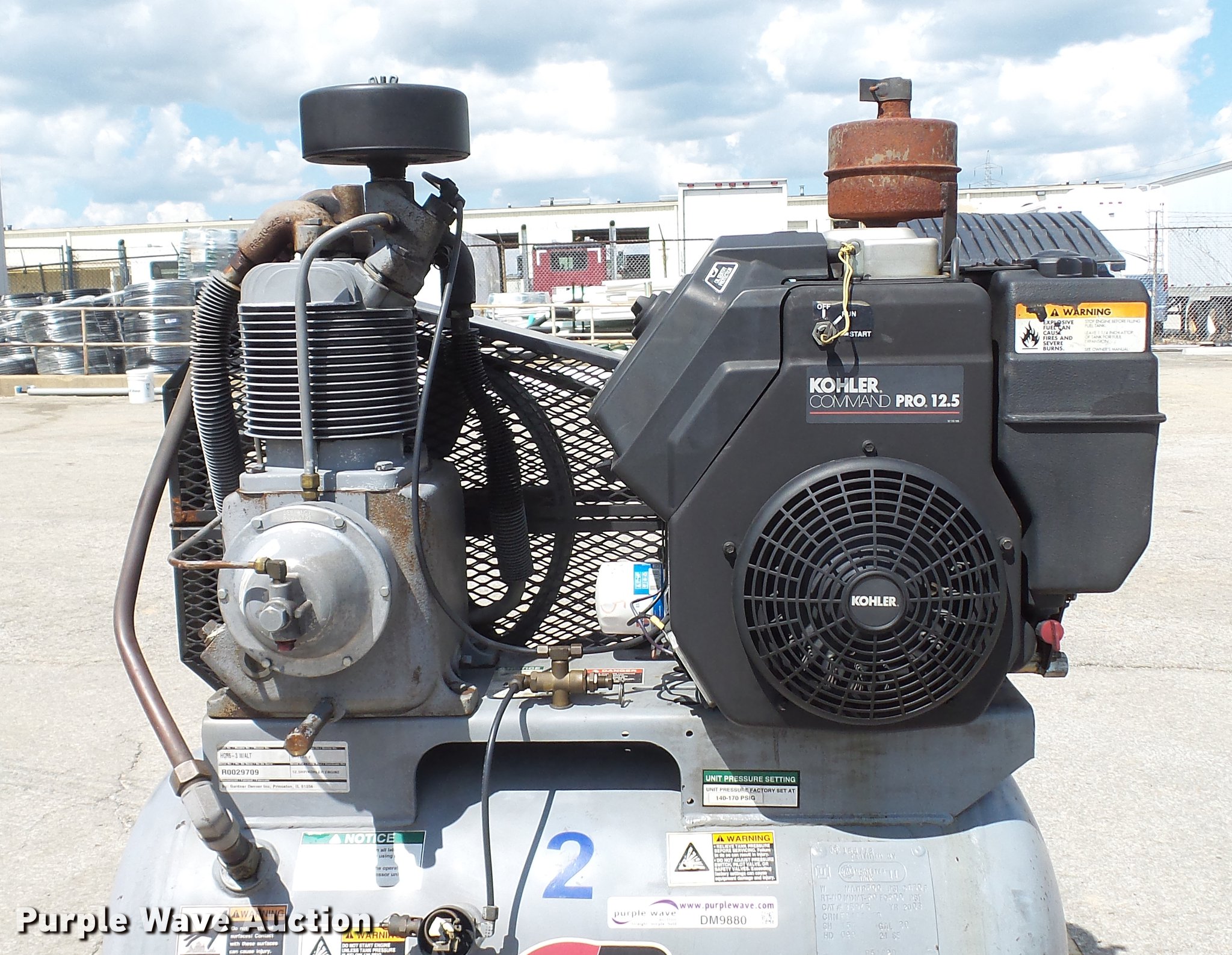 Purple Wave is selling a used Air Compressor in Missouri. This item is a Gardner Denver HGR6-3 air compressor with the following: Kohler 12.5 Hp gas engine, 170 psig max, 23.5 cfm, 30 gallon tank, Booster pack not included, Serial R0029709