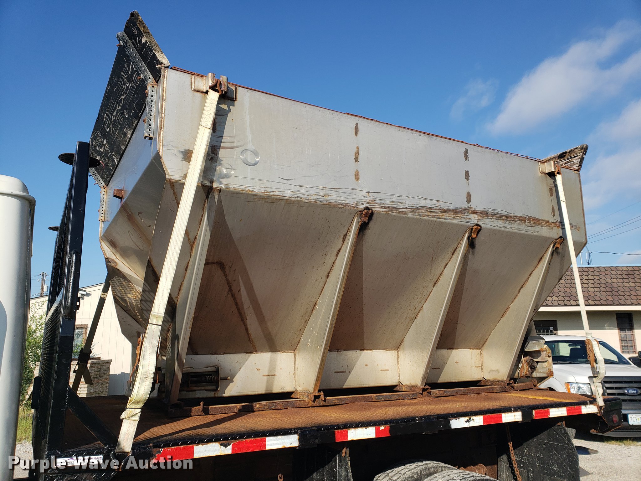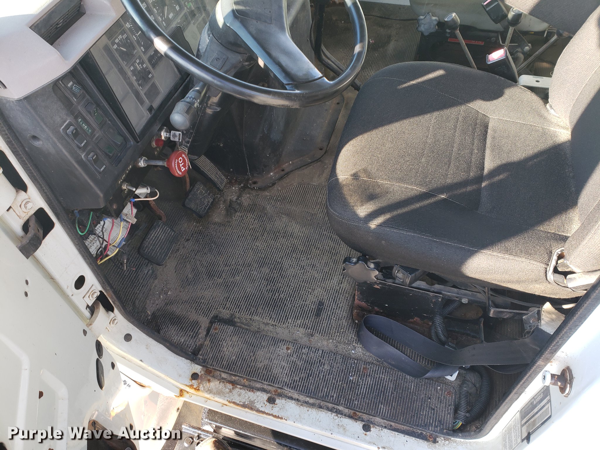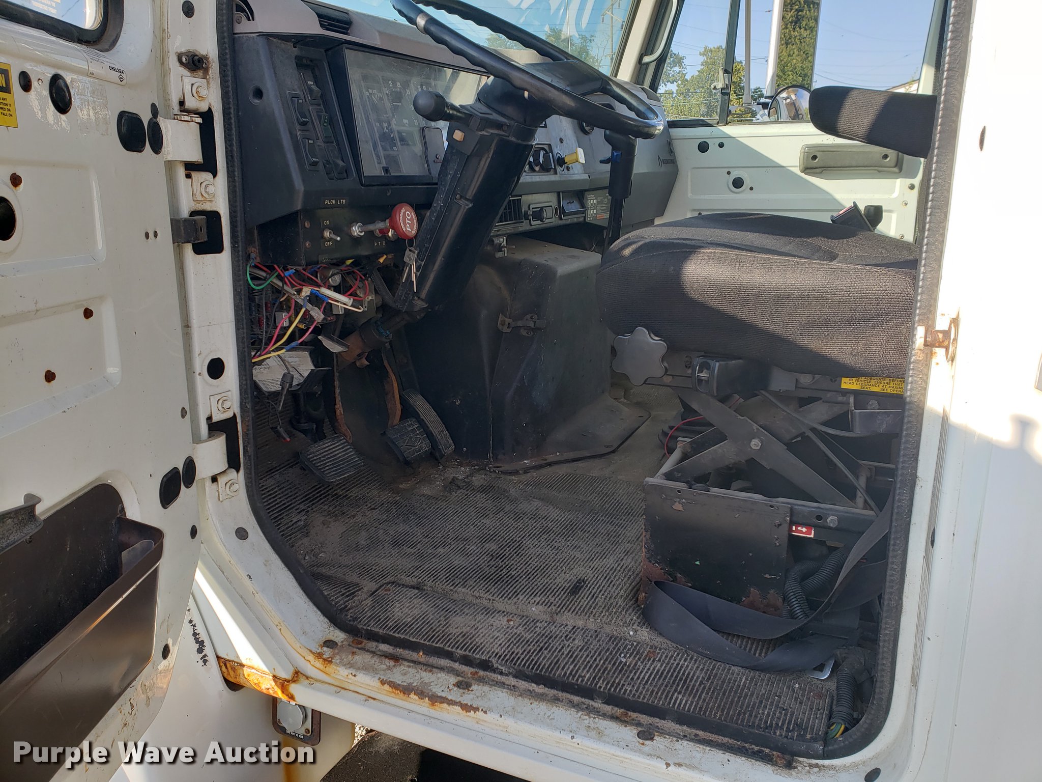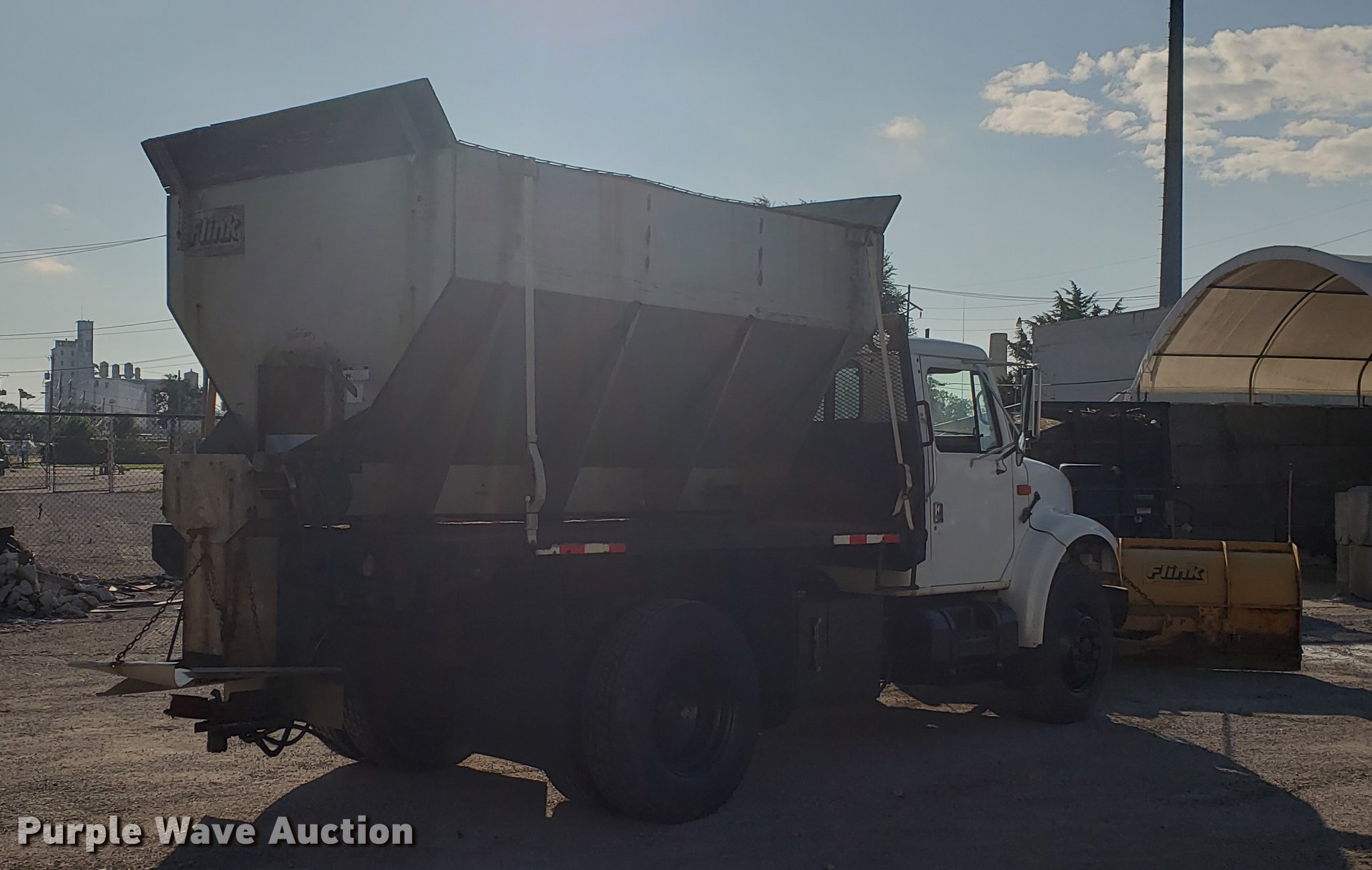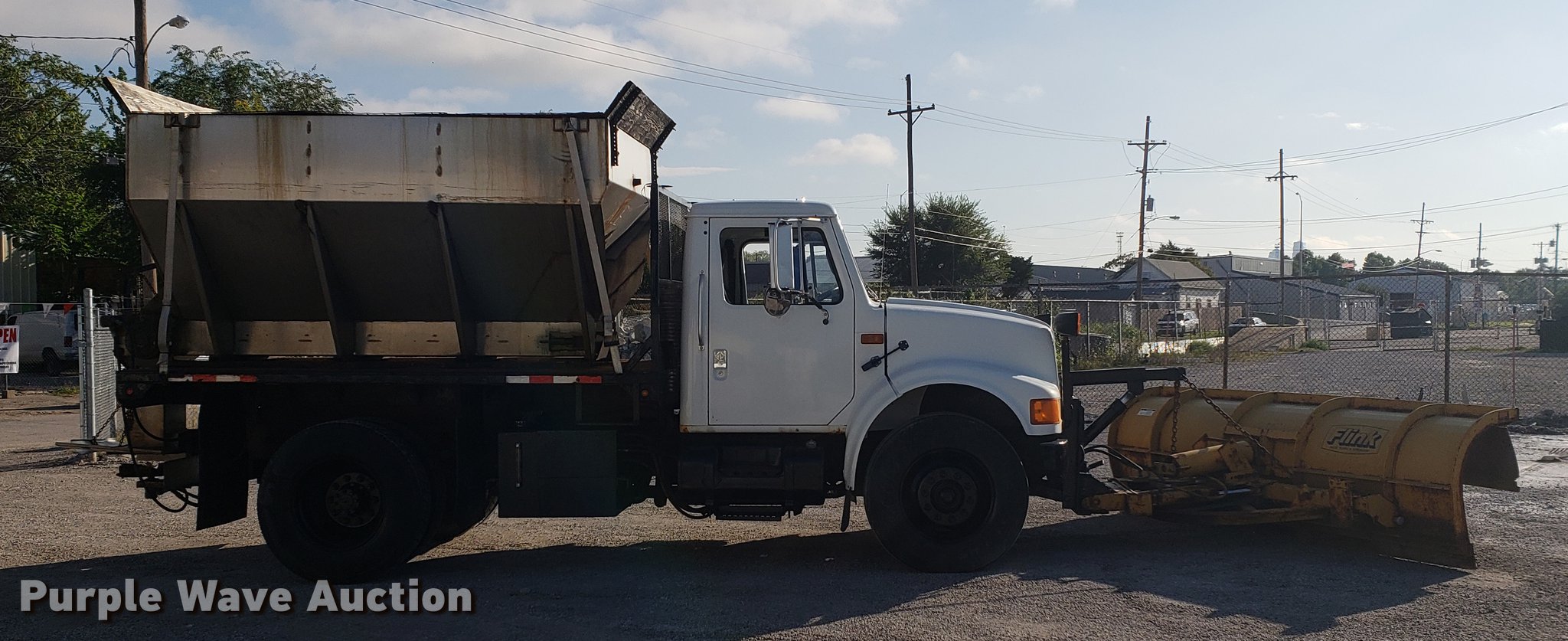 Purple Wave is selling a used Flat Bed Truck in Kansas. This item is a 1996 International 4900 flat dump bed truck with the following: 89,985 miles on odometer, 6,251 hours on meter, International DT466 7.6L L6 turbo diesel engine, Eaton Fuller eight speed manual transmission, Single axle, Heat, AM/FM, Power windows, Heated mirrors, Air suspension seat, PTO, 11'L x 8'W flatbed, Flink stainless steel spreader, 10'L x 7'W, Hydraulic operation, Top grate, Flink 11'W snow plow, Plow lights, Dual fuel tanks, Pintle hitch, 152" wheelbase, Spring suspension, Air brakes, 11R22.5 tires