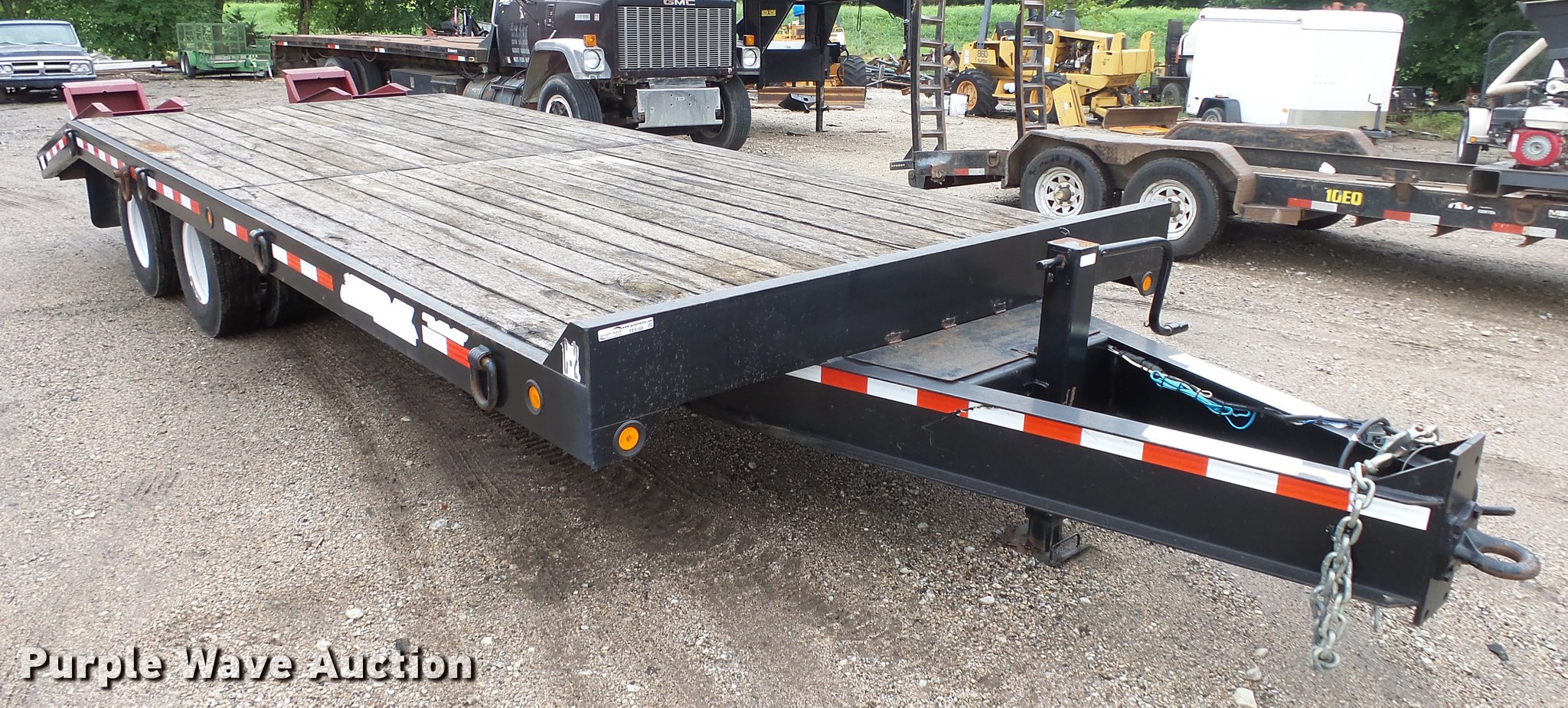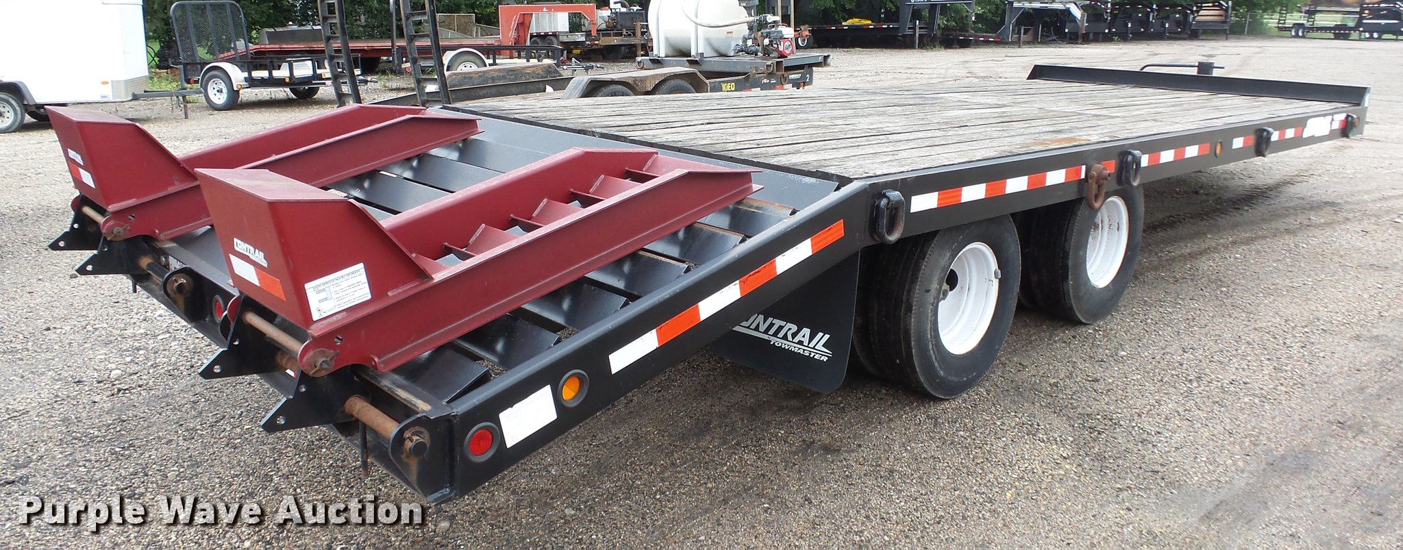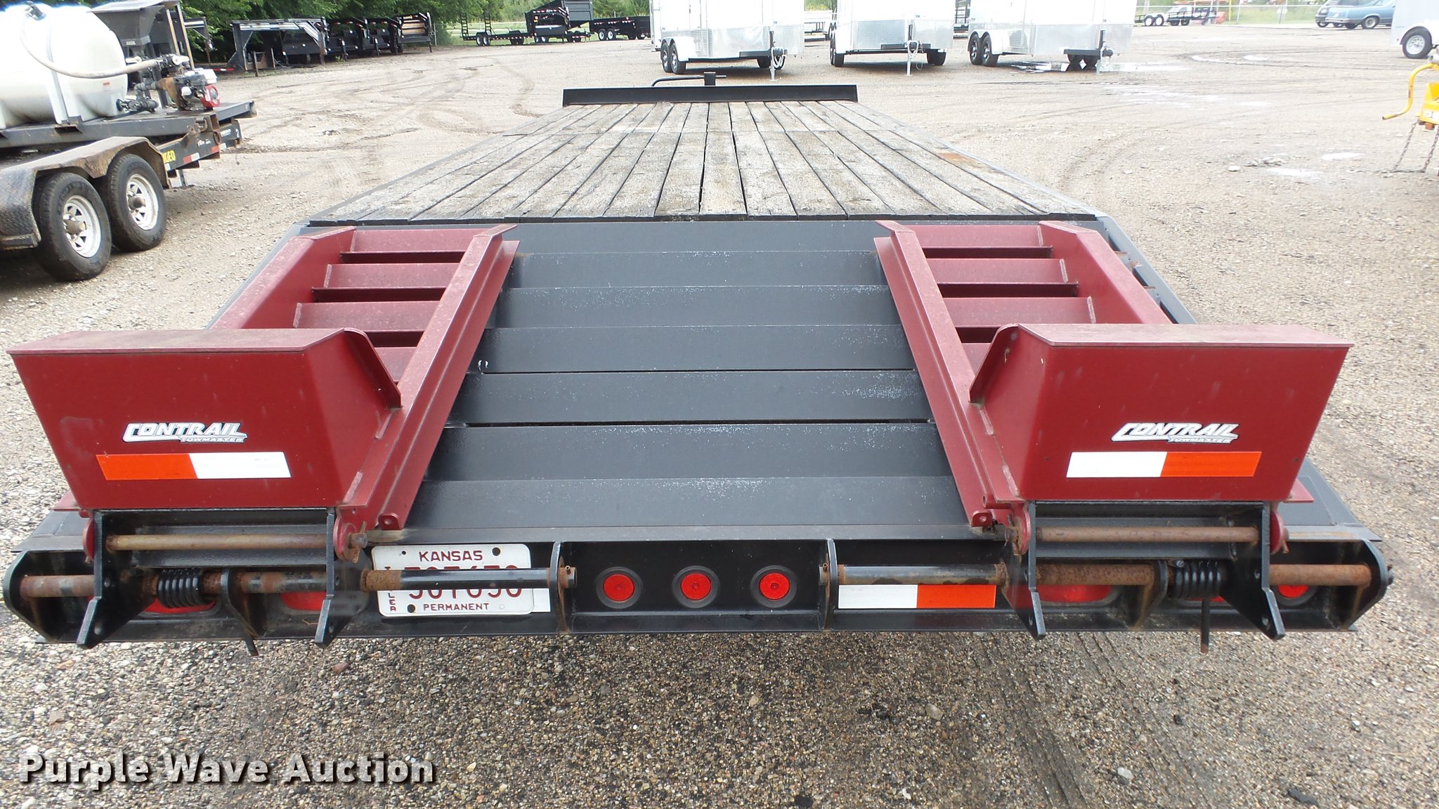 Purple Wave is selling a used Equip. Trailer in Kansas. This item is a 2009 Contrail equipment trailer with the following: 25' overall length, 20'L x 101"W wood deck, 5'L dovetail, 5'L x 21"W ramps, Pintle hitch, Spring suspension, Tandem axle, 235/85R16 tires, GVWR 30,970 lbs
