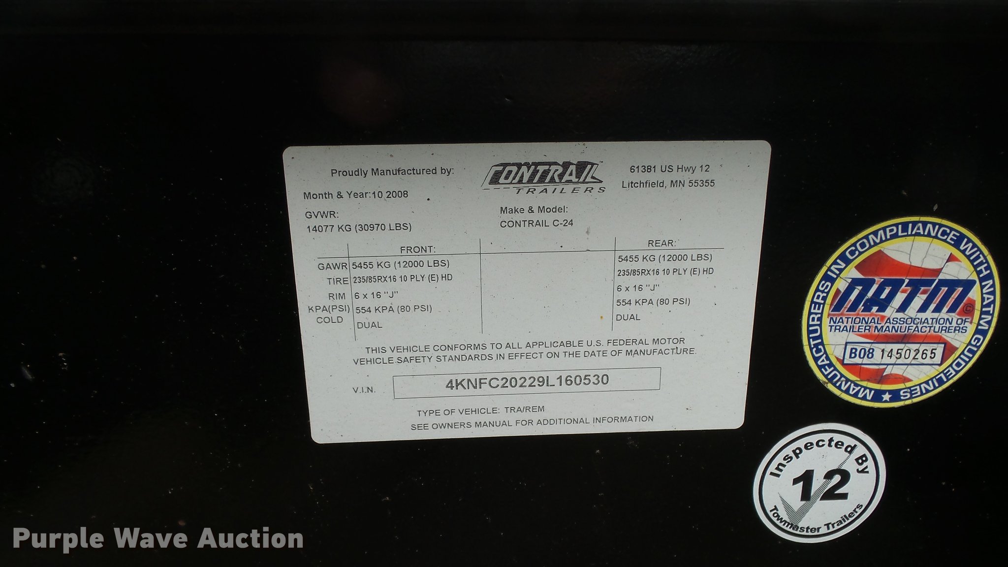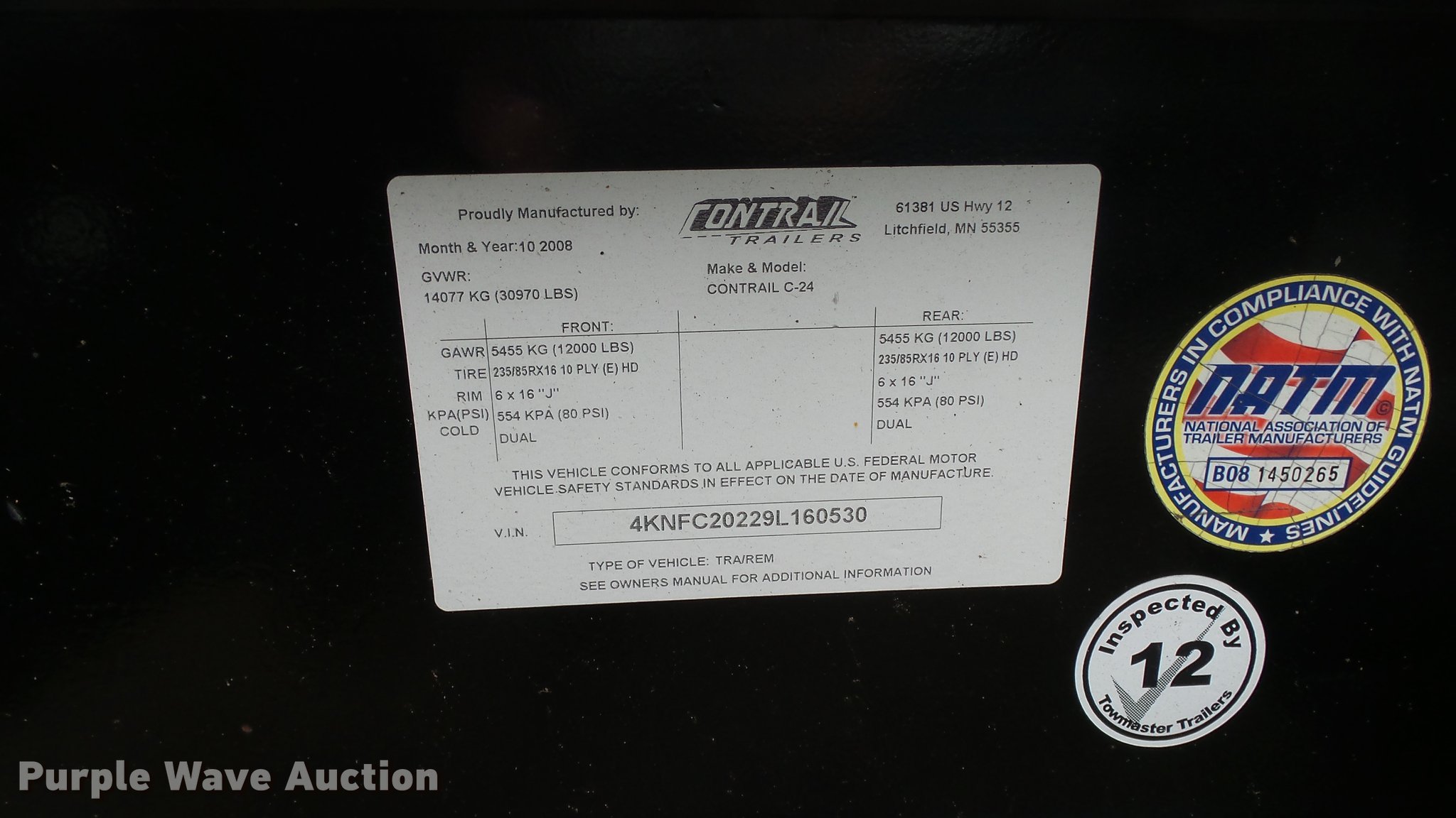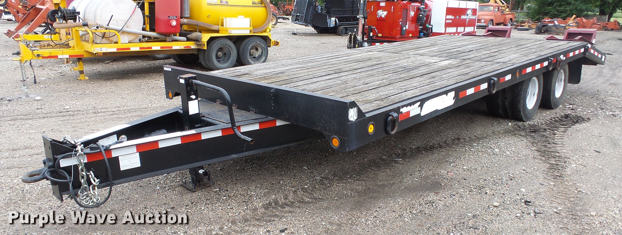Purple Wave is selling a used Equip. Trailer in Kansas. This item is a 2009 Contrail equipment trailer with the following: 25' overall length, 20'L x 101"W wood deck, 5'L dovetail, 5'L x 21"W ramps, Pintle hitch, Spring suspension, Tandem axle, 235/85R16 tires, GVWR 30,970 lbs