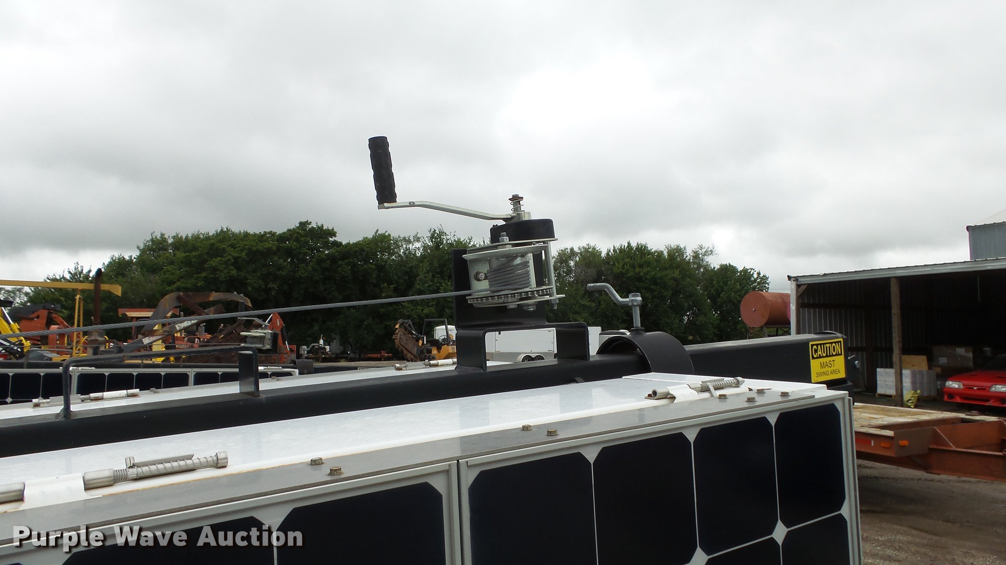 Purple Wave is selling a used Light Plant in Kansas. This item is a 2011 Progress Solar SLT800 light plant with the following: (4) bulbs, 24V, 70 watt, (2) 84" x 41" solar panels, Sun Saver controller, Outriggers, Ball hitch, 205/75D14 tires