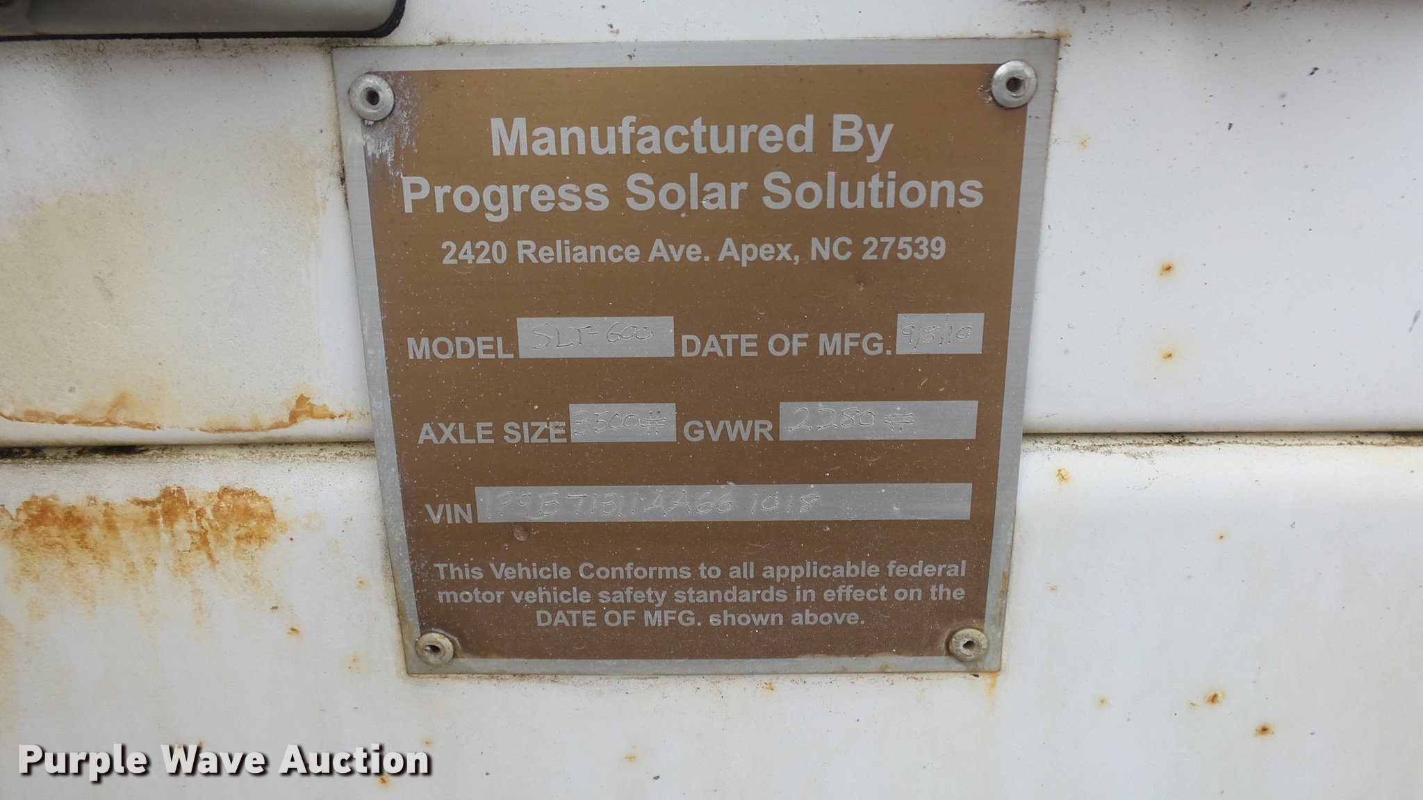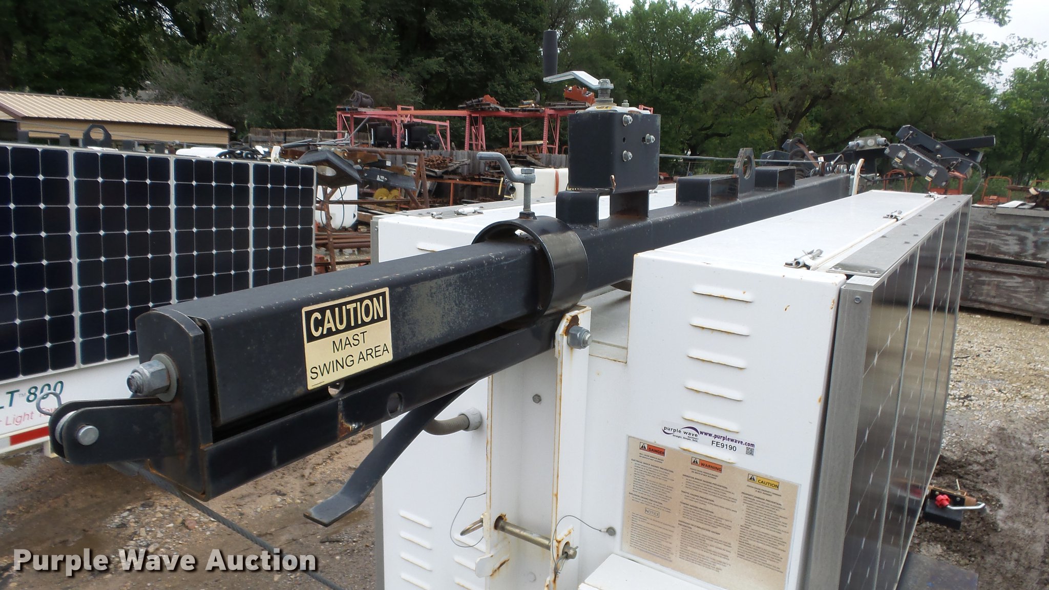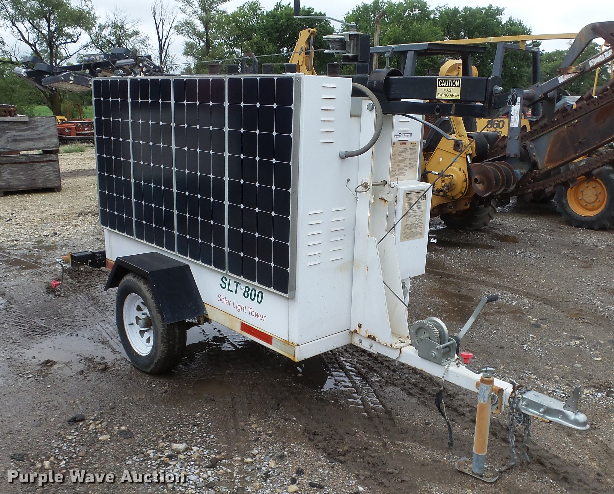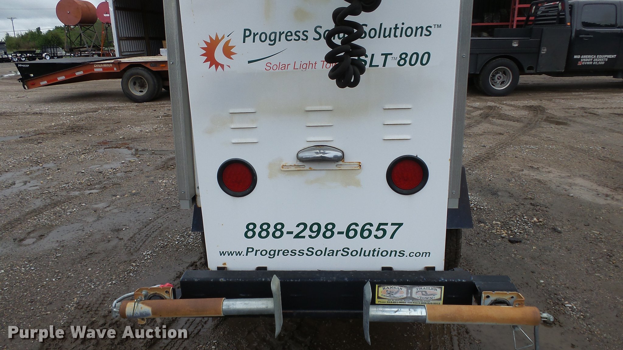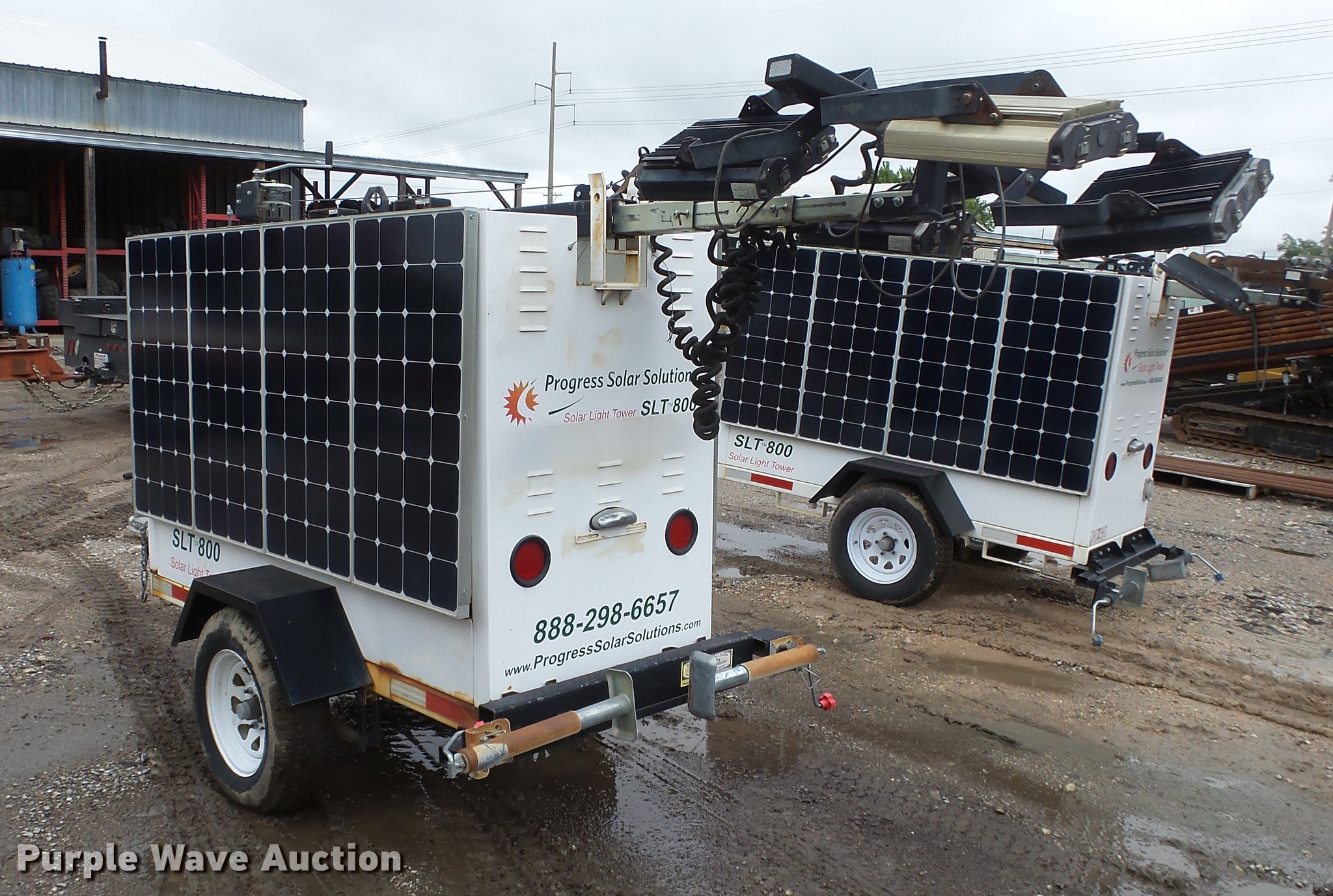 Purple Wave is selling a used Light Plant in Kansas. This item is a 2010 Progress SLT800 light plant with the following: (4) bulbs, 24V, 70 watt, (2) 84" x 41" solar panels, Sun Saver controller, Manual hoist, Outriggers, Ball hitch, 205/75D14 tires