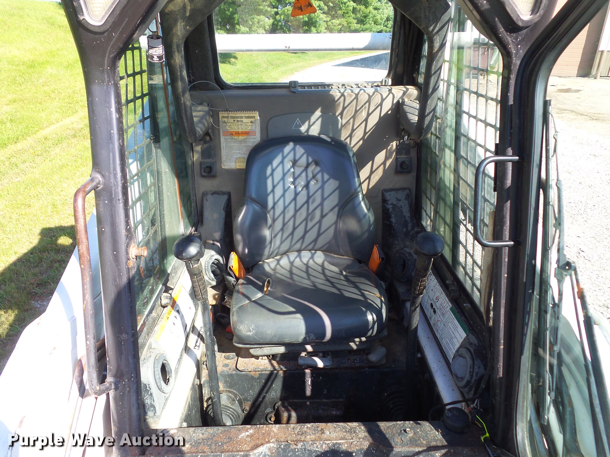 Purple Wave is selling a used Skid Steer Loader in Iowa. This item is a 2004 Bobcat S185 skid steer with the following: 1,828 hours on meter, Kubota four cylinder turbo diesel engine, Hydrostatic transmission, Enclosed cab, Heat, Hand and foot controls, Wipers, Front work lights, Backup alarm, 68"W bucket, Manual quick coupler, Auxiliary hydraulics, Bobcat 10-16.5NHS tires, Serial 525012056