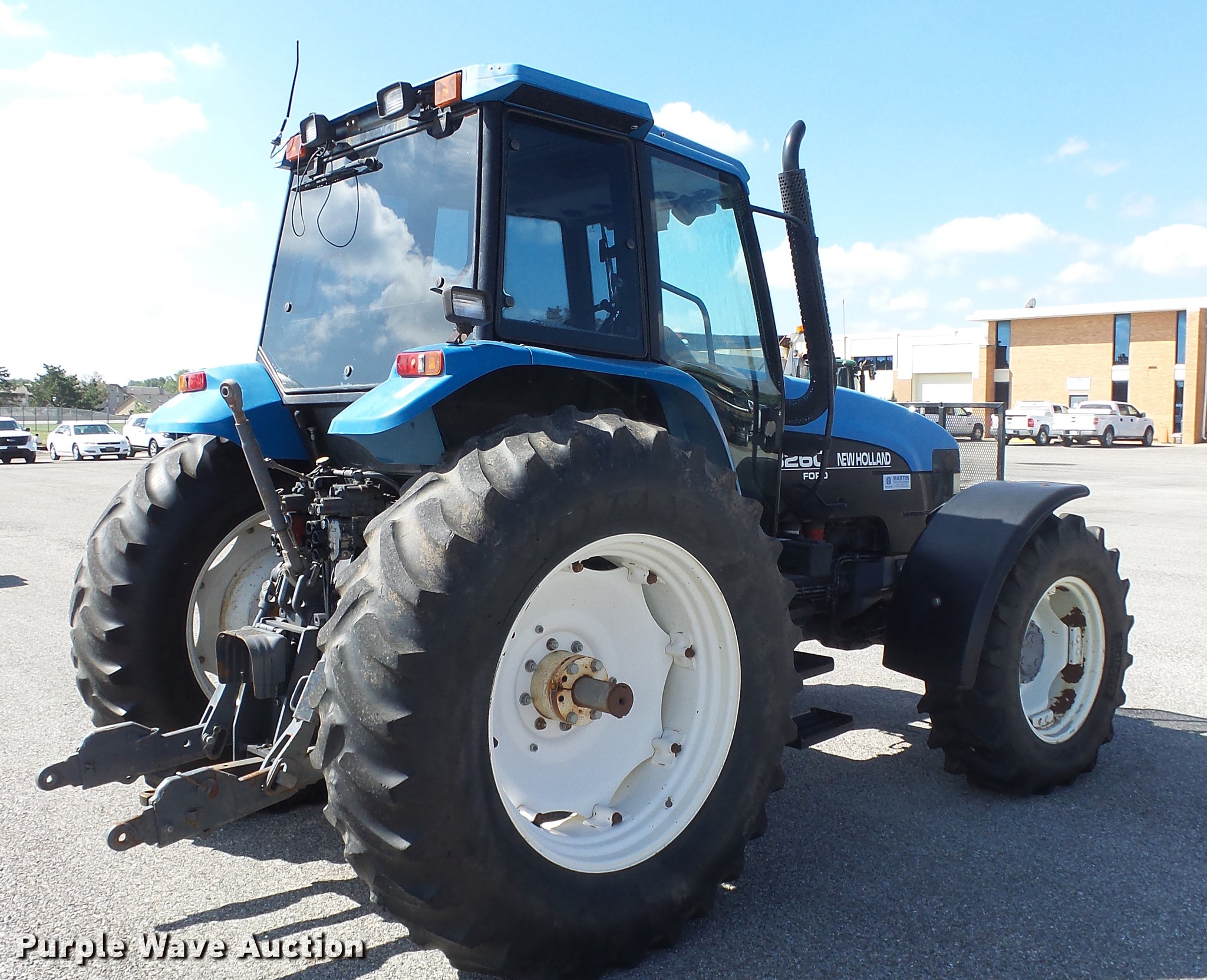 Purple Wave is selling a used Tractor in Kansas. This item is a 1998 New Holland 8260 MFWD tractor with the following: 4,067 hours on meter, Ford six cylinder diesel engine, 100 HP, Dual Command synchro transmission, 23F-12R gears, AC and heat, Spring suspension seat, Wipers, Work lights, Three point, 540 PTO, Seven pin outlet, (4) rear hydraulic remote sets, 108" wheelbase, 380/85R28 front tires, 18.4-38 rear tires, Serial 1018123, Unit# 2257
