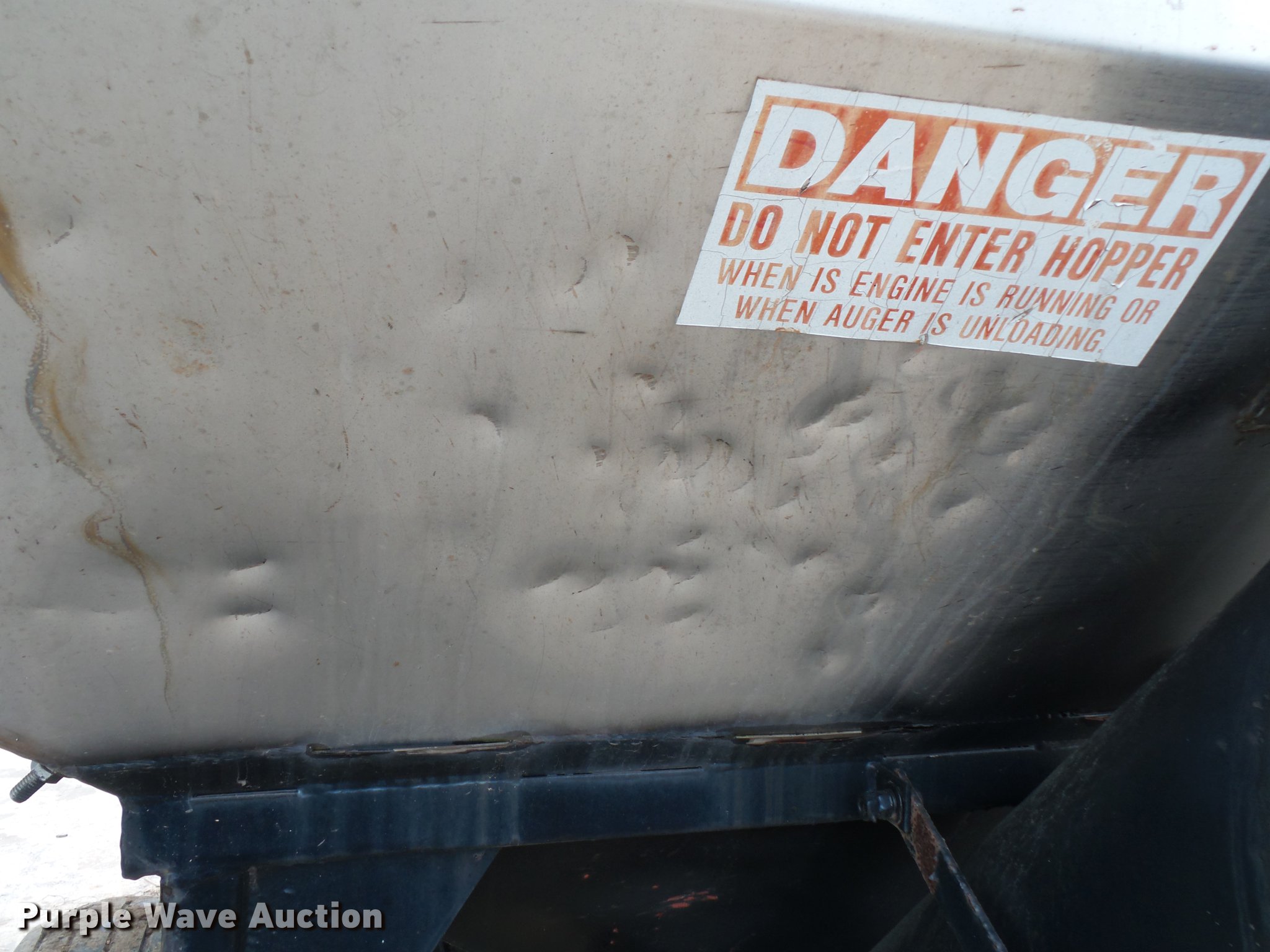 Purple Wave is selling a used Fertilizer or Seed Tender in Missouri. This item is a Adams fertilizer tender with the following: 7.5'L x 7.5'W, 10" diameter discharge auger, Roll tarp, Manual shut-off gate, Gas engine, Pin hitch, Tandem axle, 12.5-15 tires, Unit# 87705