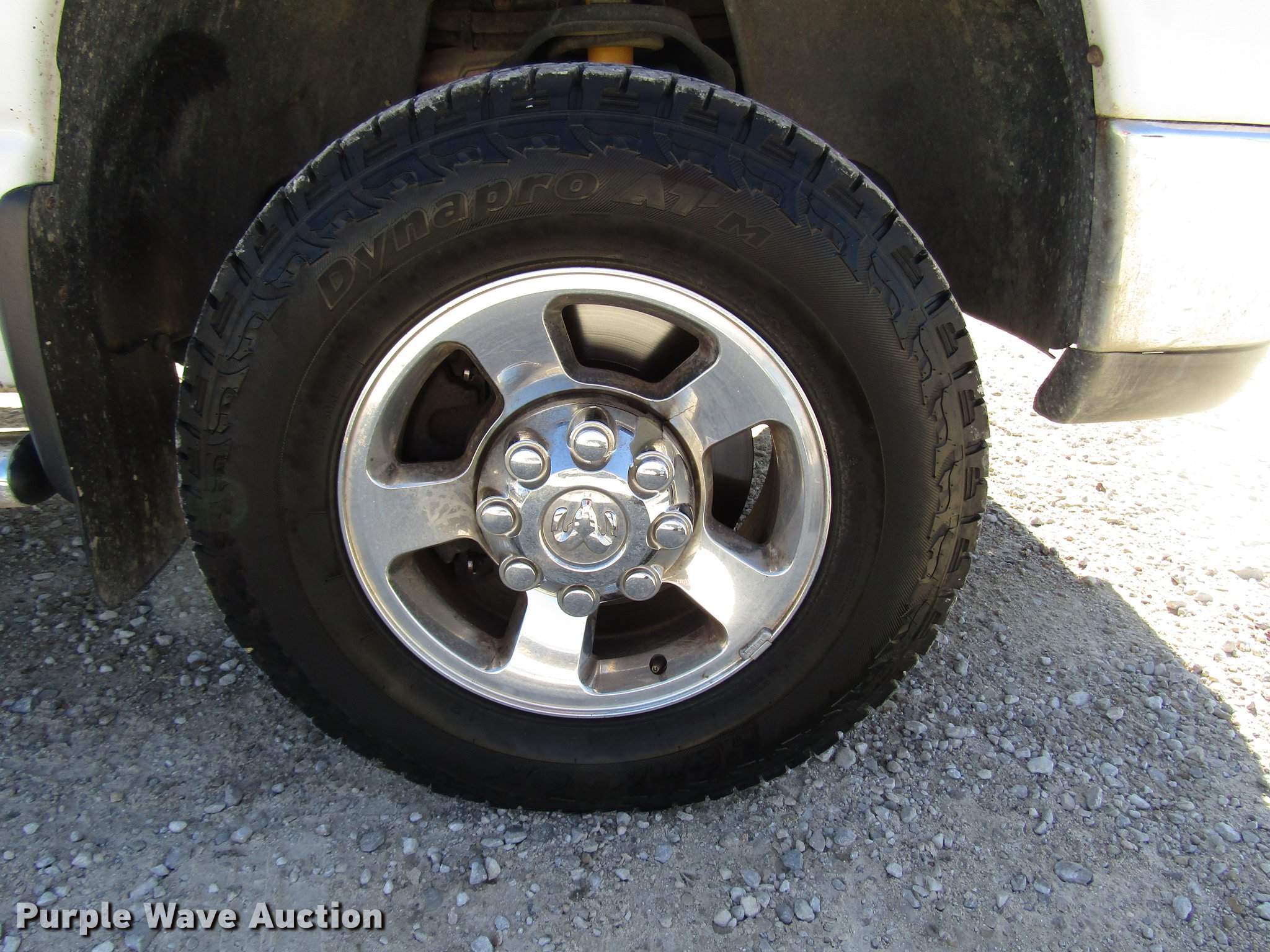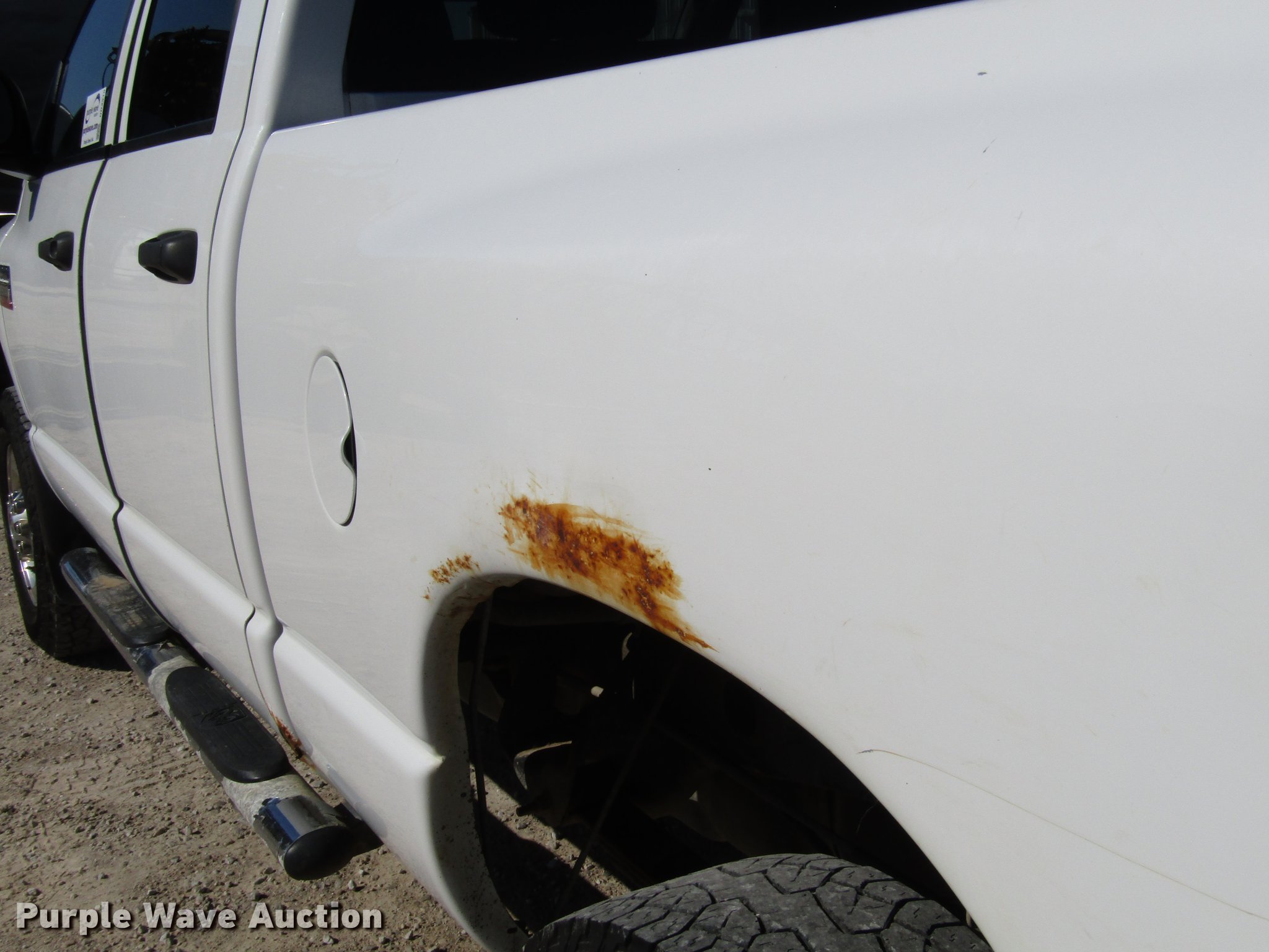 Purple Wave is selling a used 3/4 or 1 Ton Pickup or Van in Indiana. This item is a 2009 Dodge Ram 2500 Quad Cab pickup truck with the following: 198,981 miles on odometer, 5.7L V8 OHV 16V gas engine, Automatic transmission, Four wheel drive, AC and heat, Tilt, Cruise, AM/FM/CD, Power windows, locks, and mirrors, Cloth interior, Fog lights, Front tow hooks, Gooseneck ball, Receiver hitch, Trailer wiring, 265/70R17 front tires, 265/75R17 rear tires