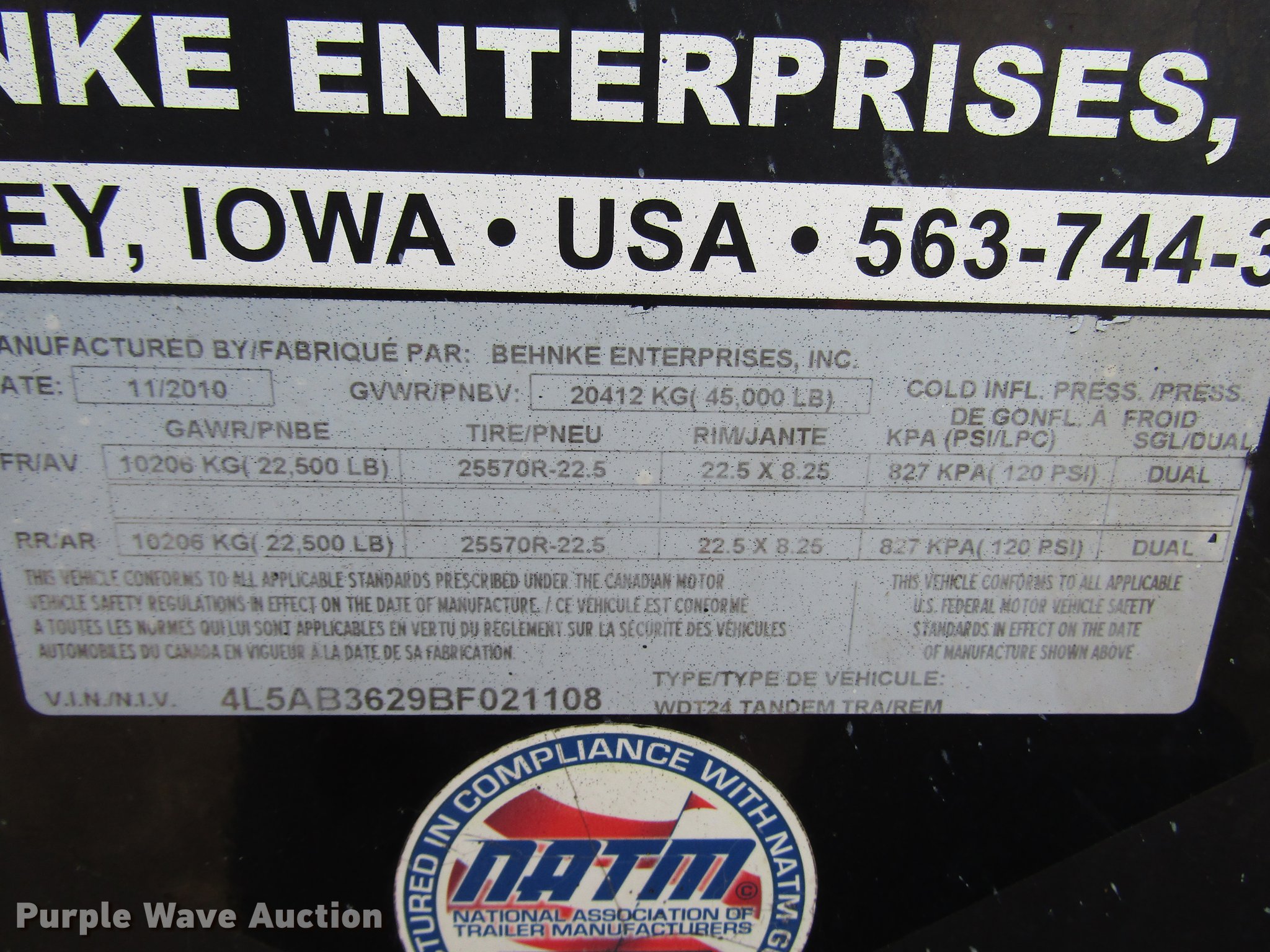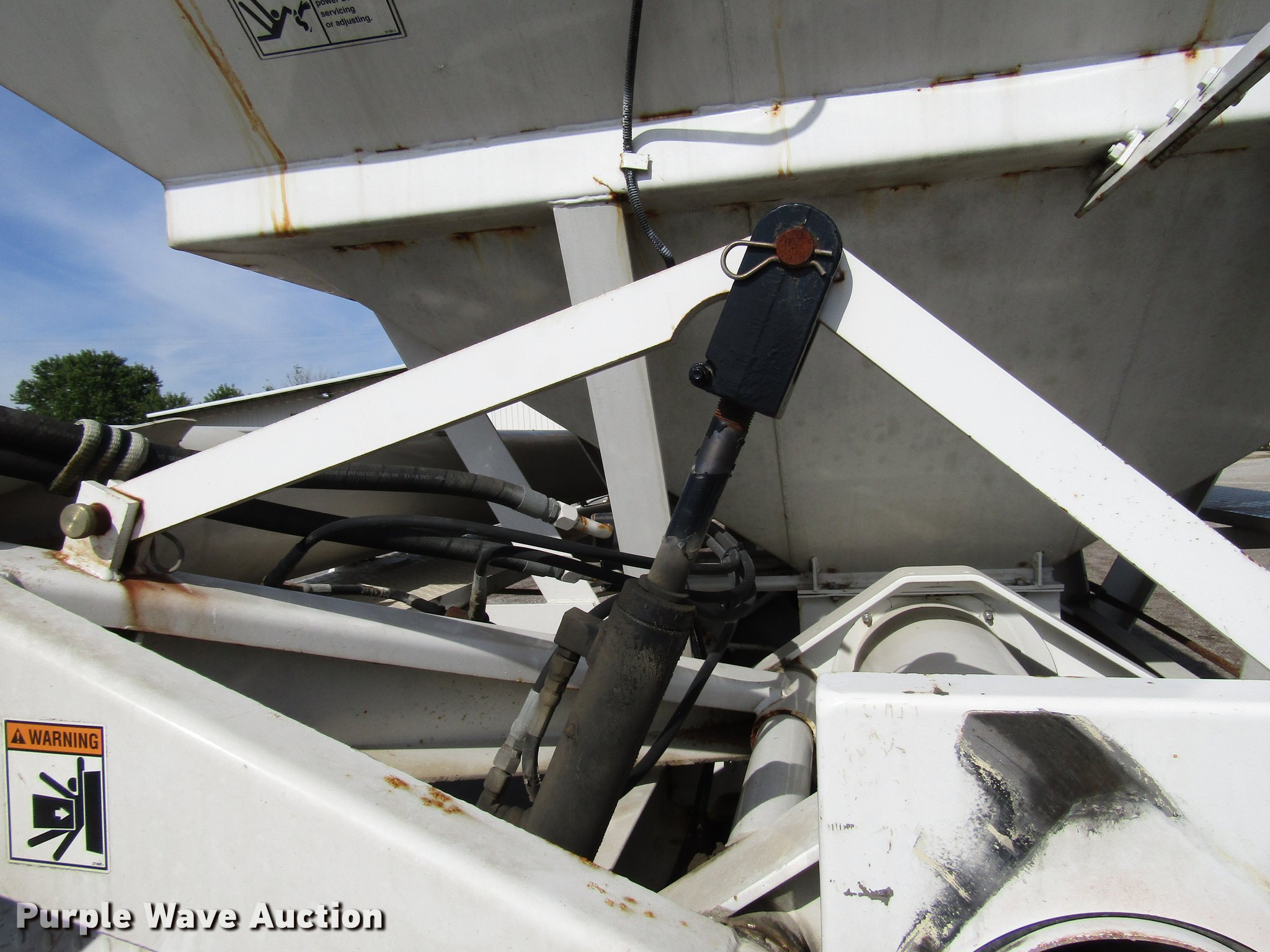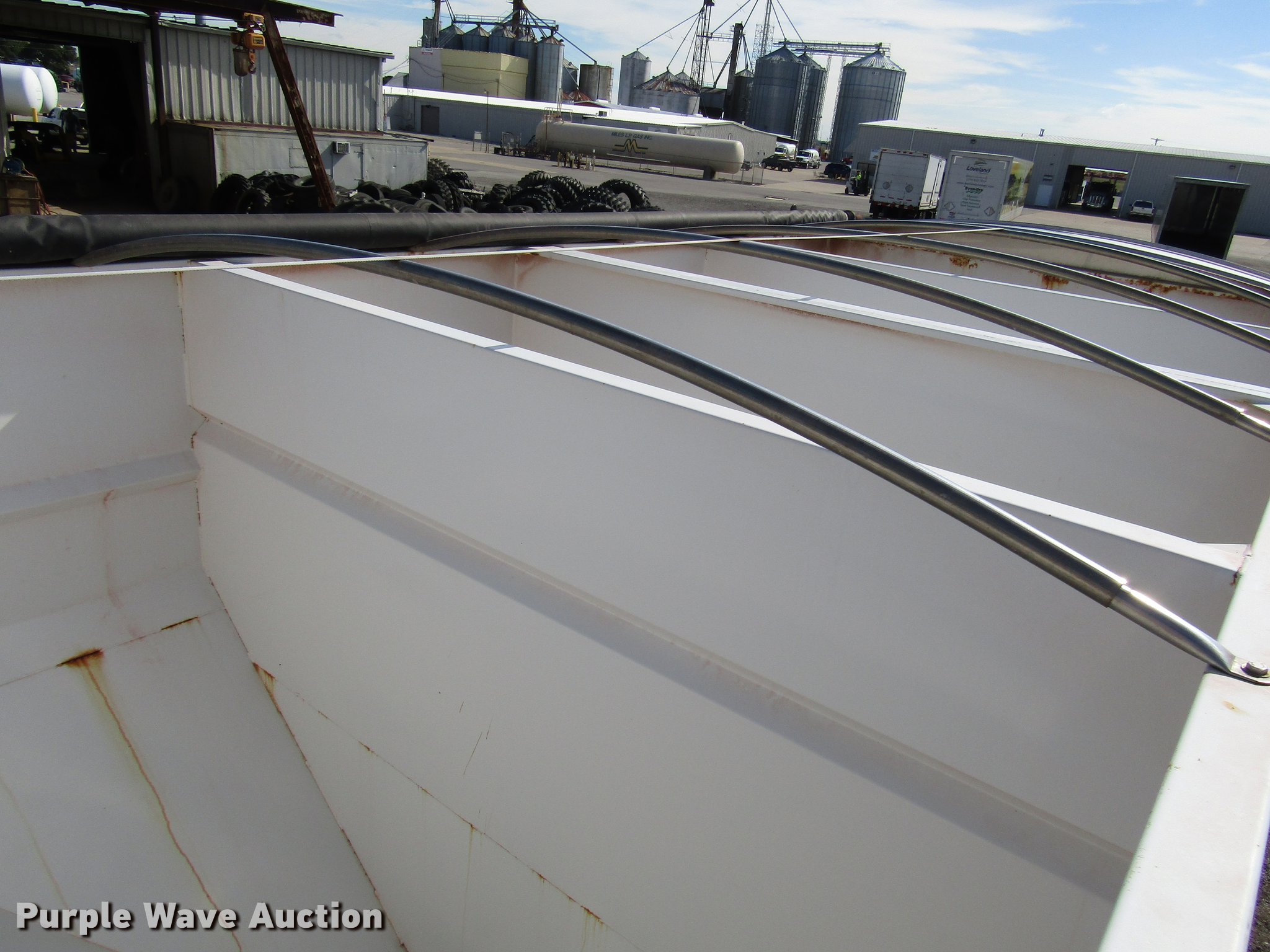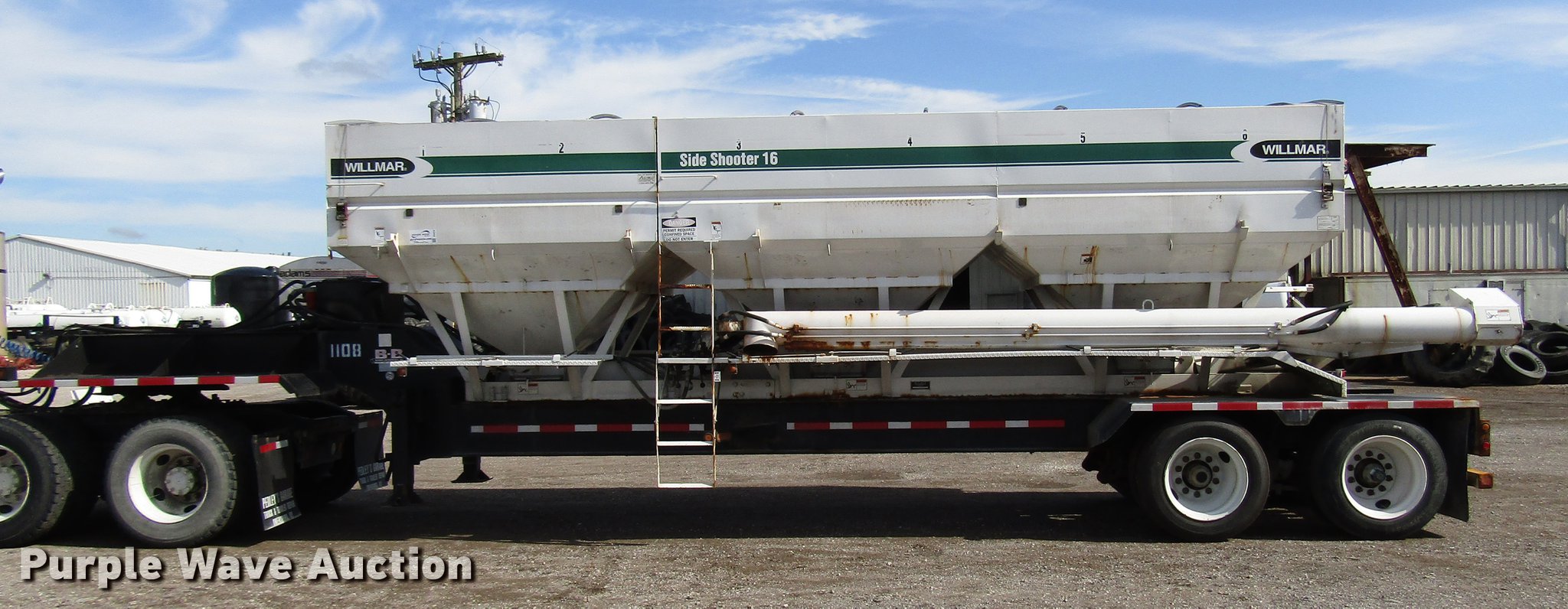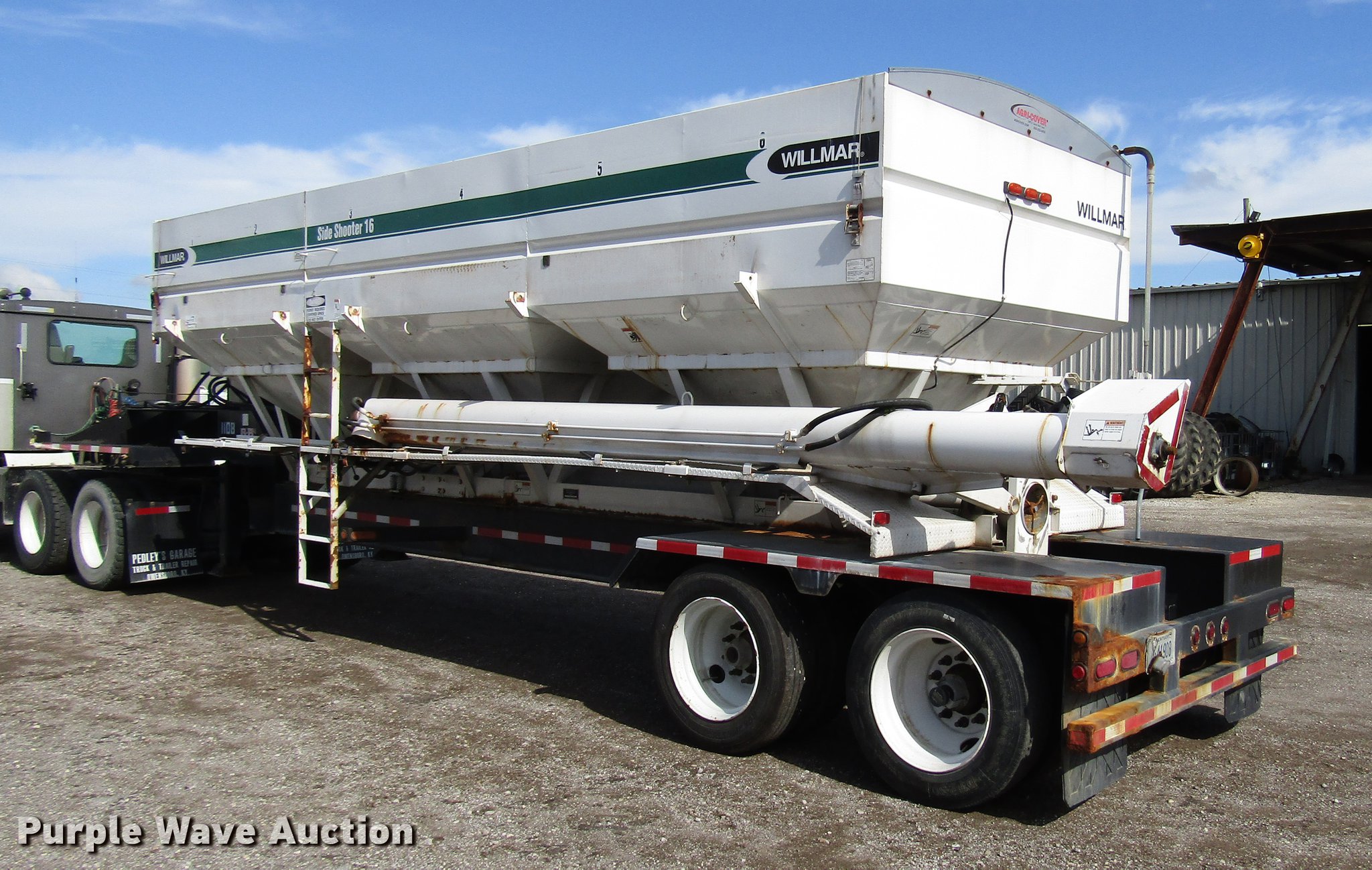Purple Wave is selling a used Fertilizer or Feed Delivery Trailer in Kentucky. This item is a 2011 B-B fertilizer tender trailer with Willmar Side Shooter 16 with the following: 36'L x 8'W, 26'L body, 60" side height, Willmar Side Shooter fertilizer tender, 22.5'L, (6) compartments, 16 ton capacity, 18'L x 10" diameter discharge auger, Hand controls, Serial AGCW16SSKNU001154, Roll tarp, Toolbox, Steel construction, Fifth wheel plate, Dual leg landing gear, Spring suspension, Air brakes, Tandem axle, Steel wheels, 255/70R22.5 tires, GAWR 22,500 lbs, Unit # 23889