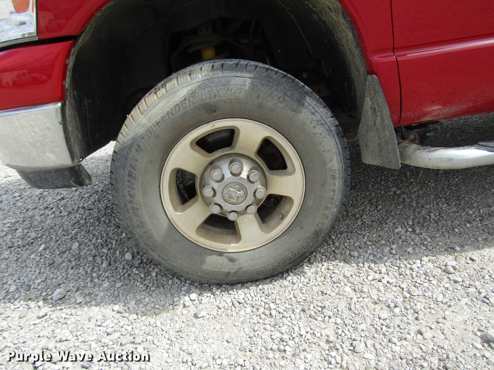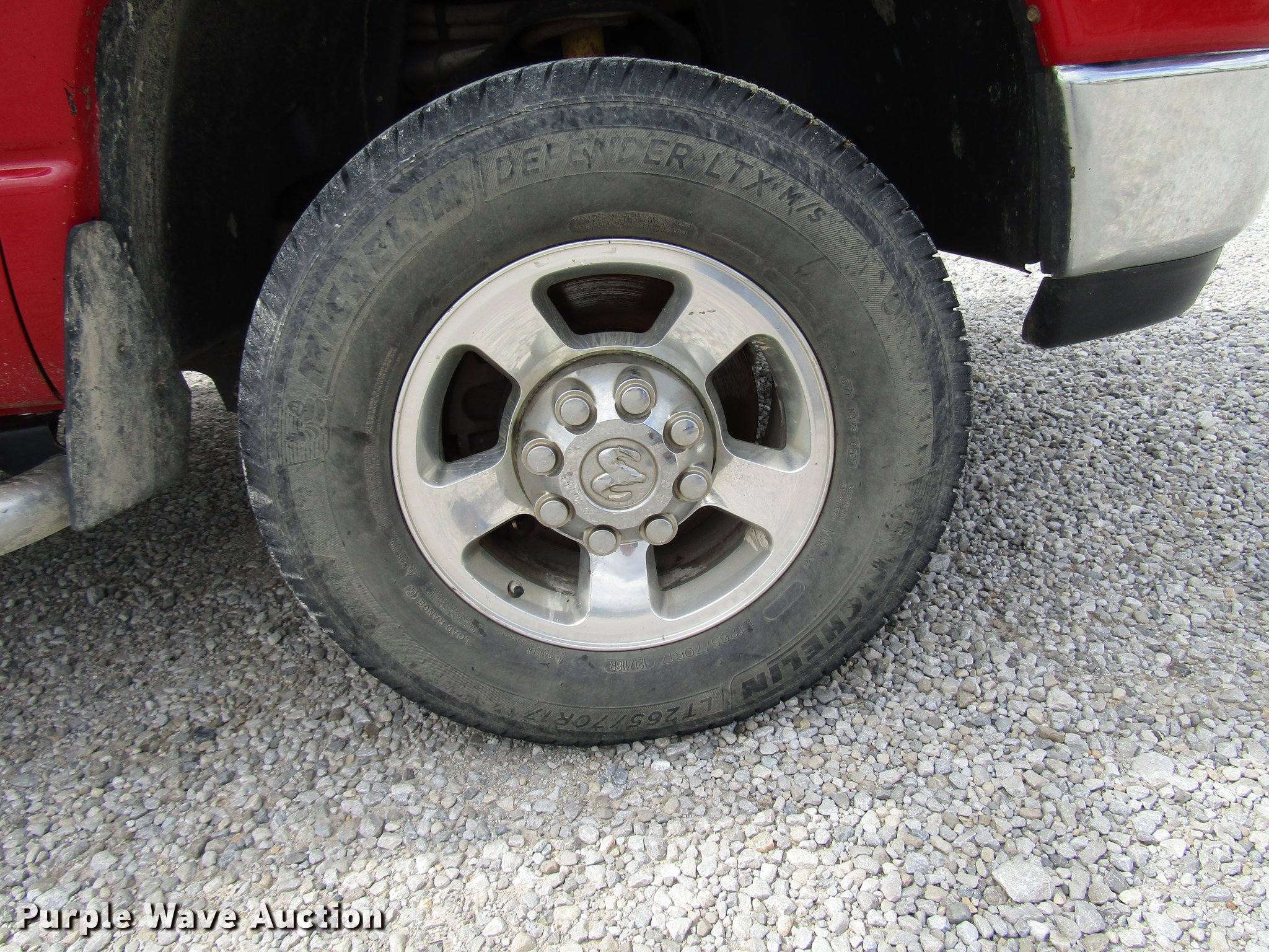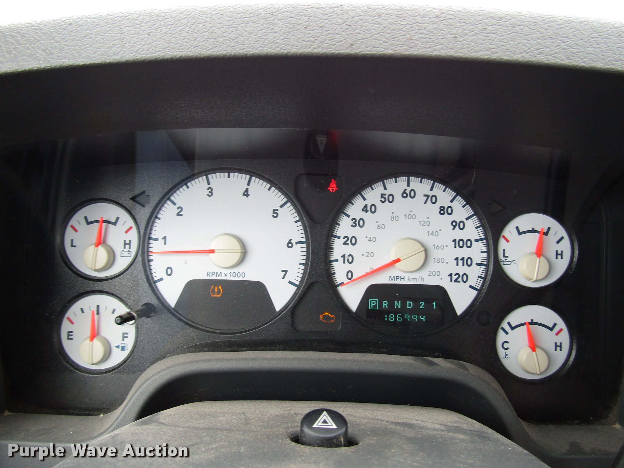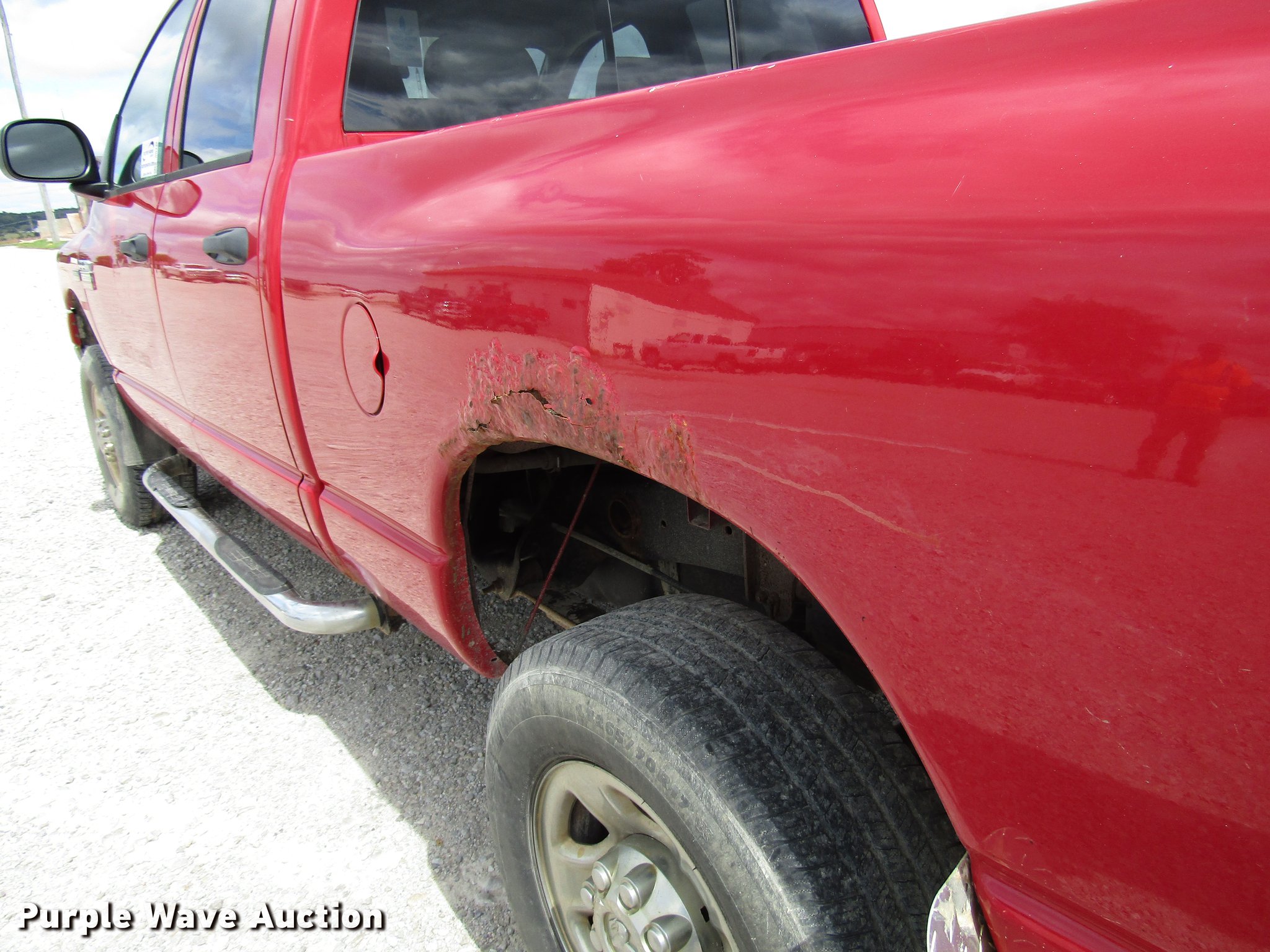 Purple Wave is selling a used 3/4 or 1 Ton Pickup or Van in Indiana. This item is a 2009 Dodge Ram 2500 Quad Cab pickup truck with the following: 186,994 miles on odometer, 5.7L V8 OHV 16V gas engine, Automatic transmission, Four wheel drive, AC and heat, Tilt, Cruise, AM/FM/CD, Power windows, locks, and mirrors, Cloth interior, Fog lights, Front tow hooks, Gooseneck ball, Receiver hitch, Trailer wiring, 265/70R17 tires, Check engine light on, Battery needs to be replaced