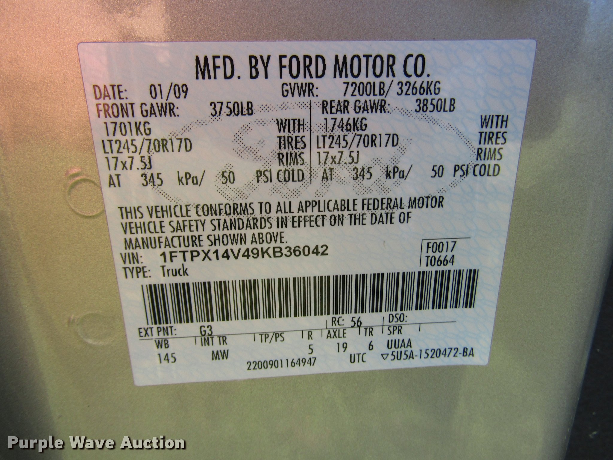 Purple Wave is selling a used 1/2 Ton Pickup or Van in Indiana. This item is a 2009 Ford F150 SuperCab pickup truck with the following: 164,857 miles on odometer, 5.4L V8 SOHC 24V FFV gas engine, Automatic transmission, Four wheel drive, AC and heat, Tilt, Cruise, AM/FM/CD, Power windows, locks, mirrors, and seat, Cloth interior, Fog lights, Front tow hooks, Toolbox, Receiver hitch, Trailer wiring, 265/70R17 tires, Unit # 14121