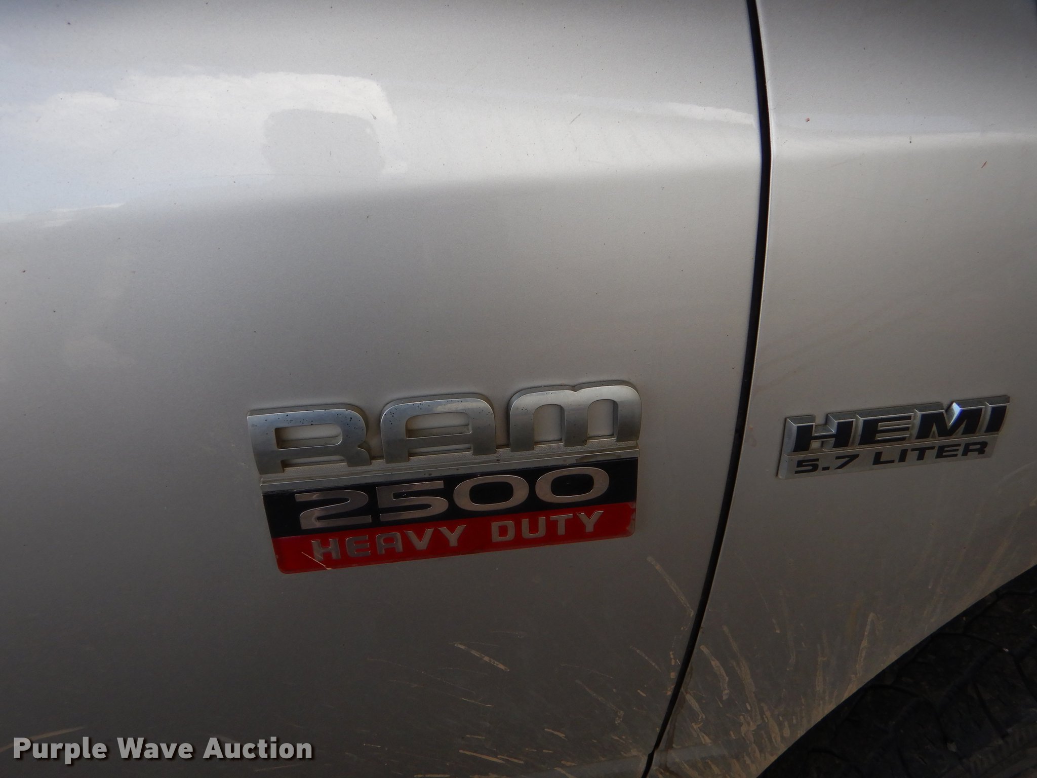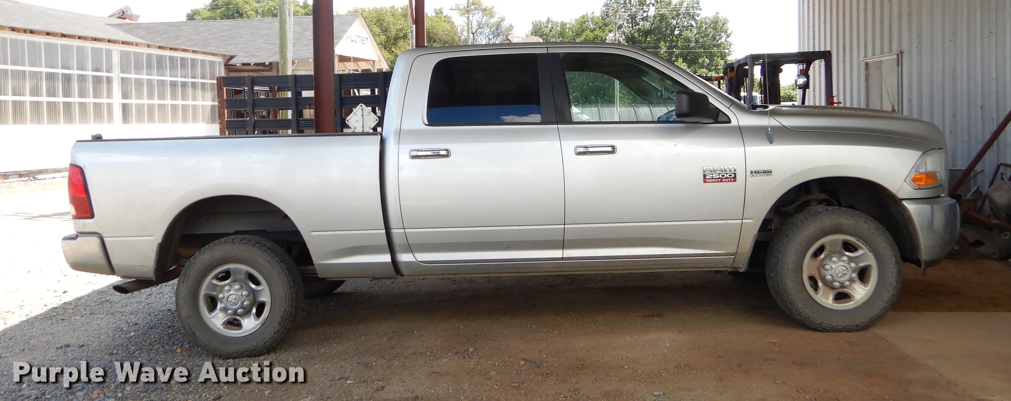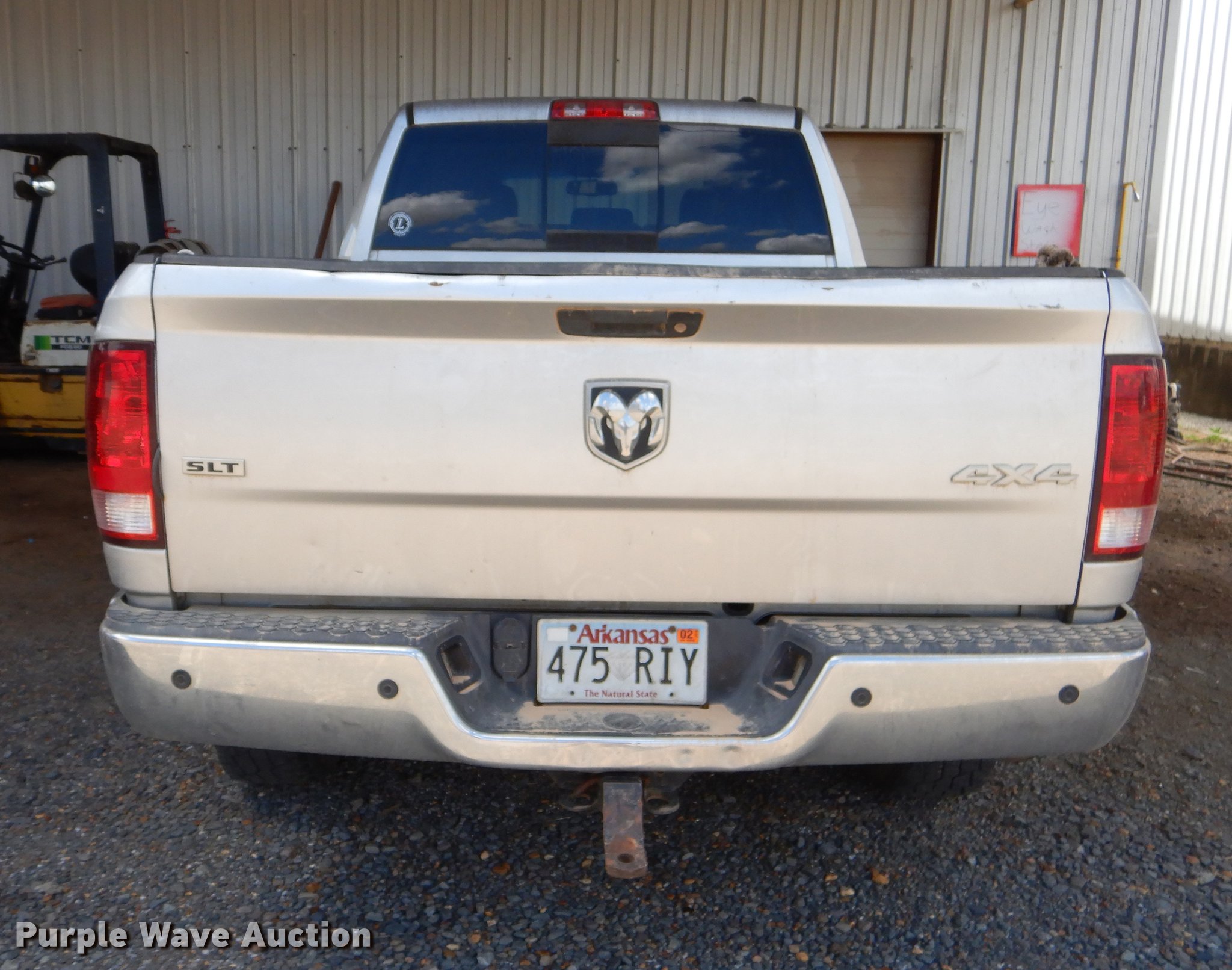 Purple Wave is selling a used 3/4 or 1 Ton Pickup or Van in Arkansas. This item is a 2012 Dodge Ram 2500HD SLT Quad Cab pickup truck with the following: 185,091 miles on odometer, 5.7L V8 OHV 16V gas engine, Automatic transmission, Four wheel drive, AC, Tilt, Cruise, AM/FM/CD, Power windows, locks, and mirrors, Bed liner, Receiver hitch, 265/70R17 tires, Possible engine issues