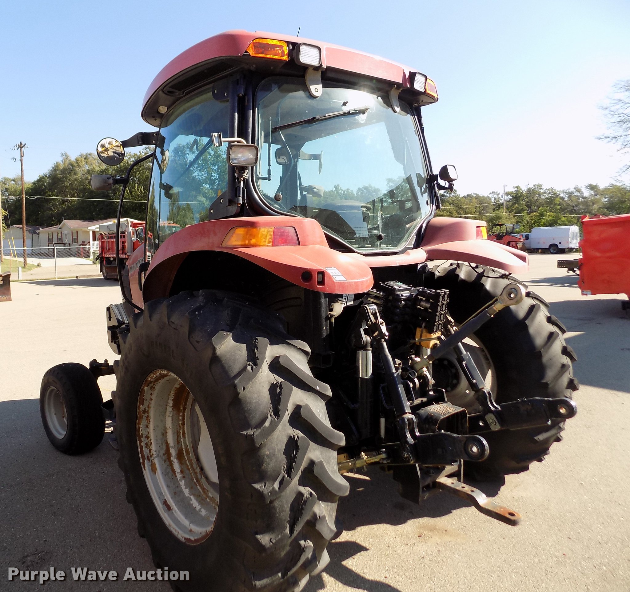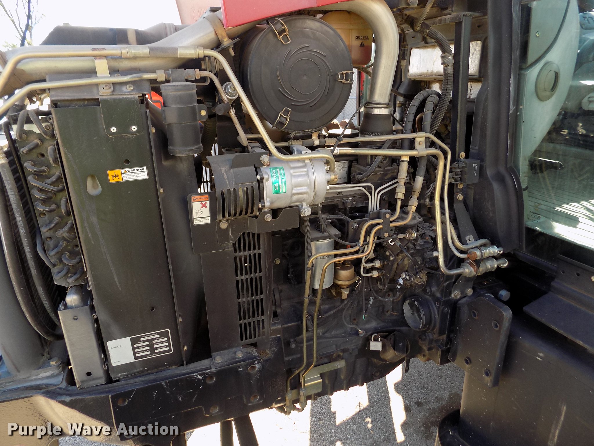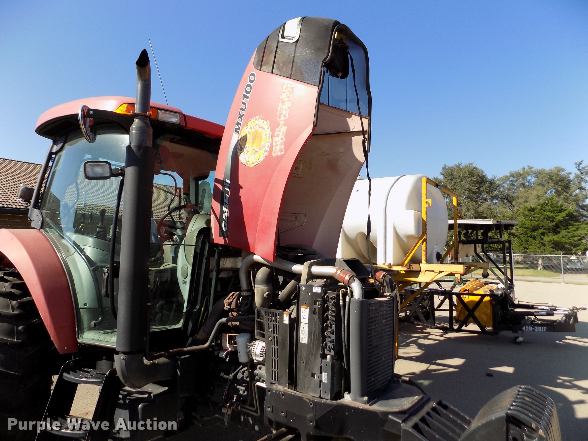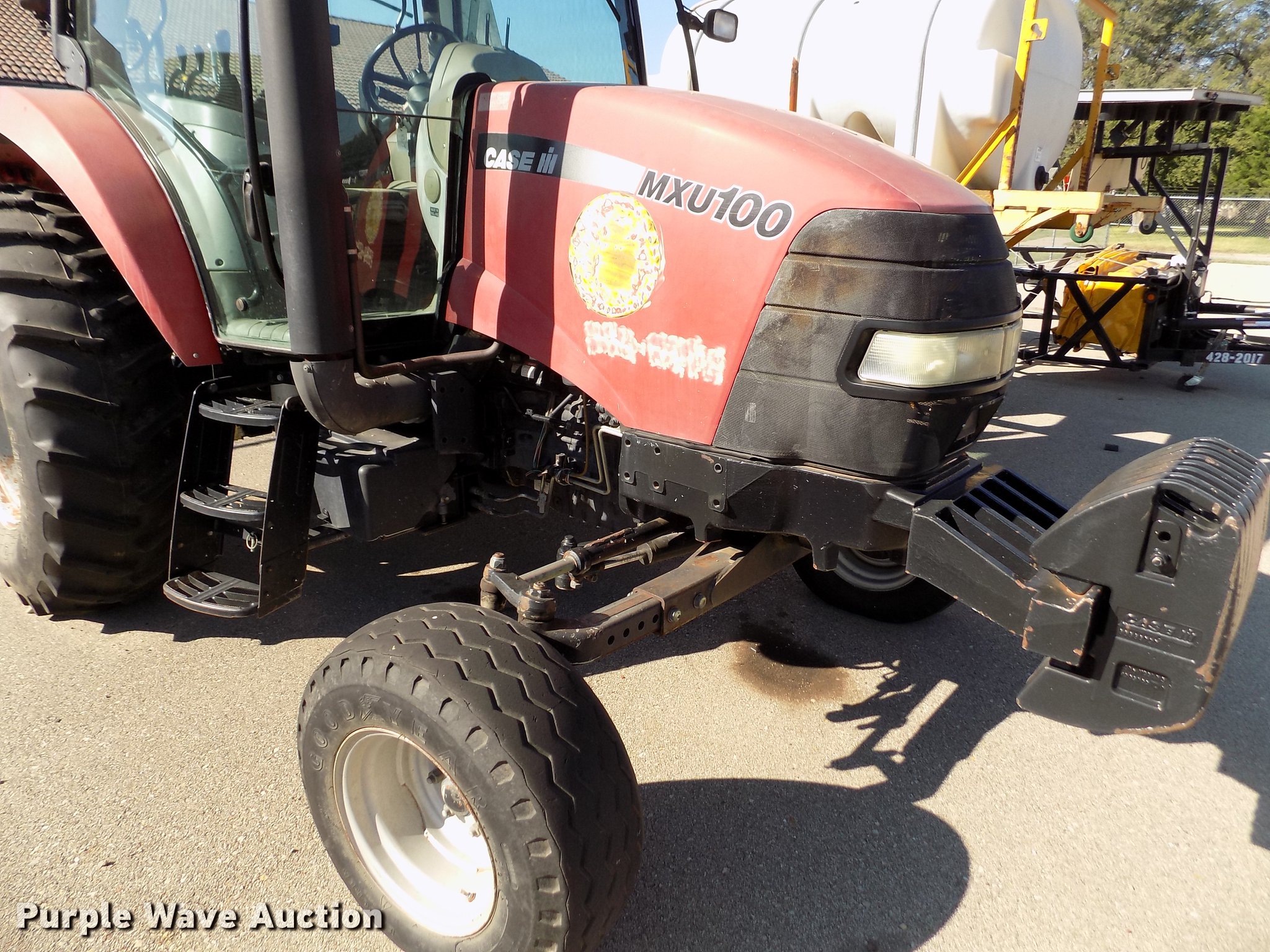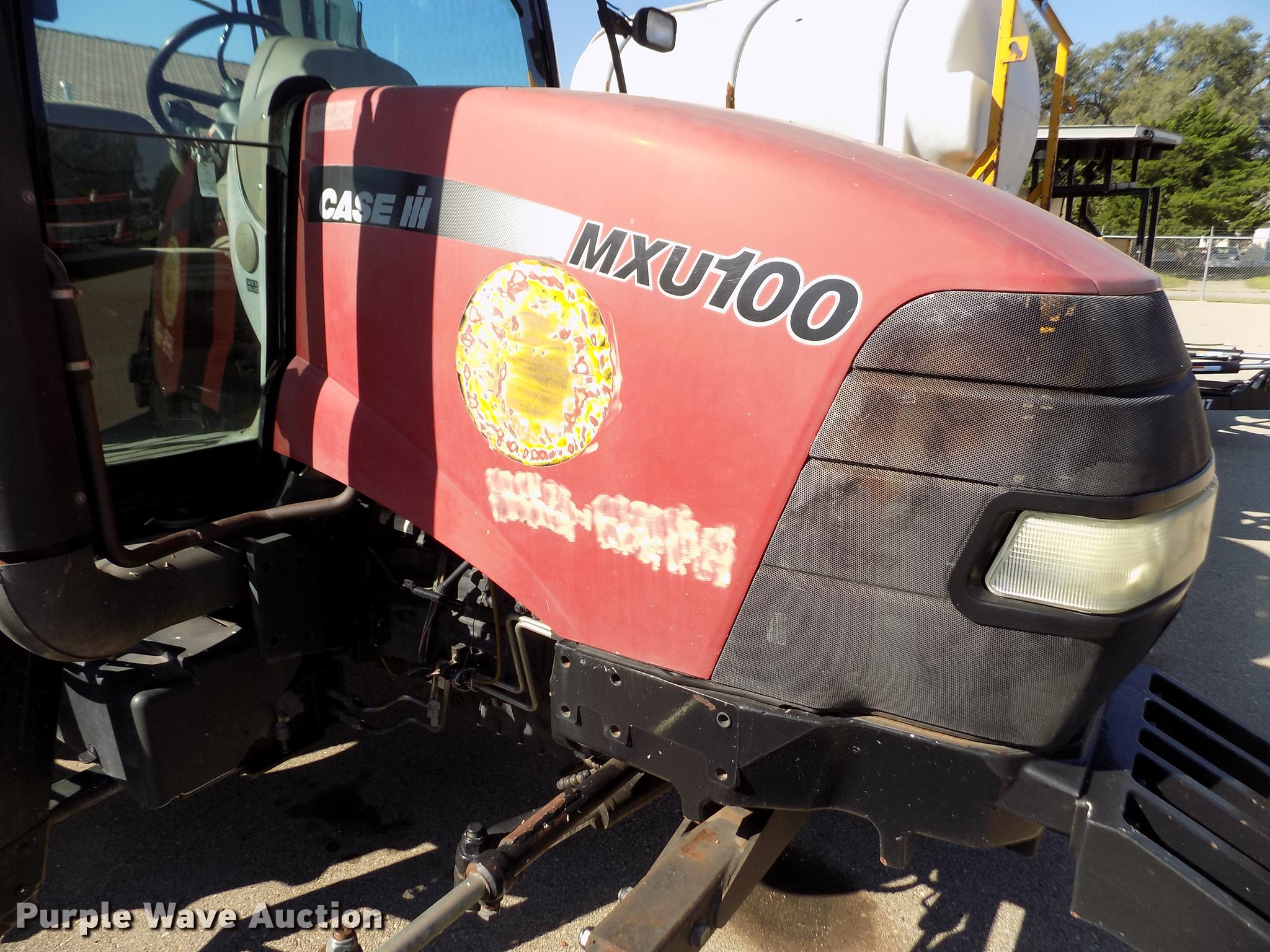 Purple Wave is selling a used Tractor in Kansas. This item is a 2004 Case MXU-100 tractor with the following: 4,990 hours on meter, Case four cylinder diesel engine, Partial powershift transmission, 24F-24R gears, Left-hand reverser, AC and heat, Spring suspension seat, Tilt steering wheel, Shades, Three point, Top link, 1000 PTO, Seven pin outlet, ISO electrical outlet, (4) rear hydraulic remote sets, Power beyond hydraulics, (8) suitcase weights, 11L-16 front tires, 18.4-30 rear tires, Right cylinder head gasket leaks, Transmission shift issues, Battery bad, Serial ACP234707, KDOT ID 352-2074