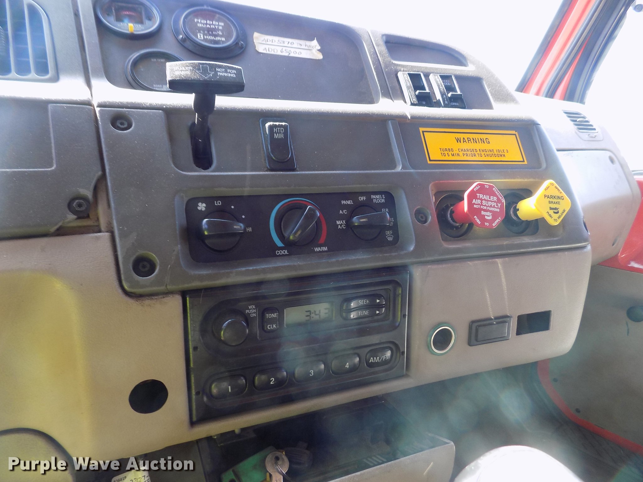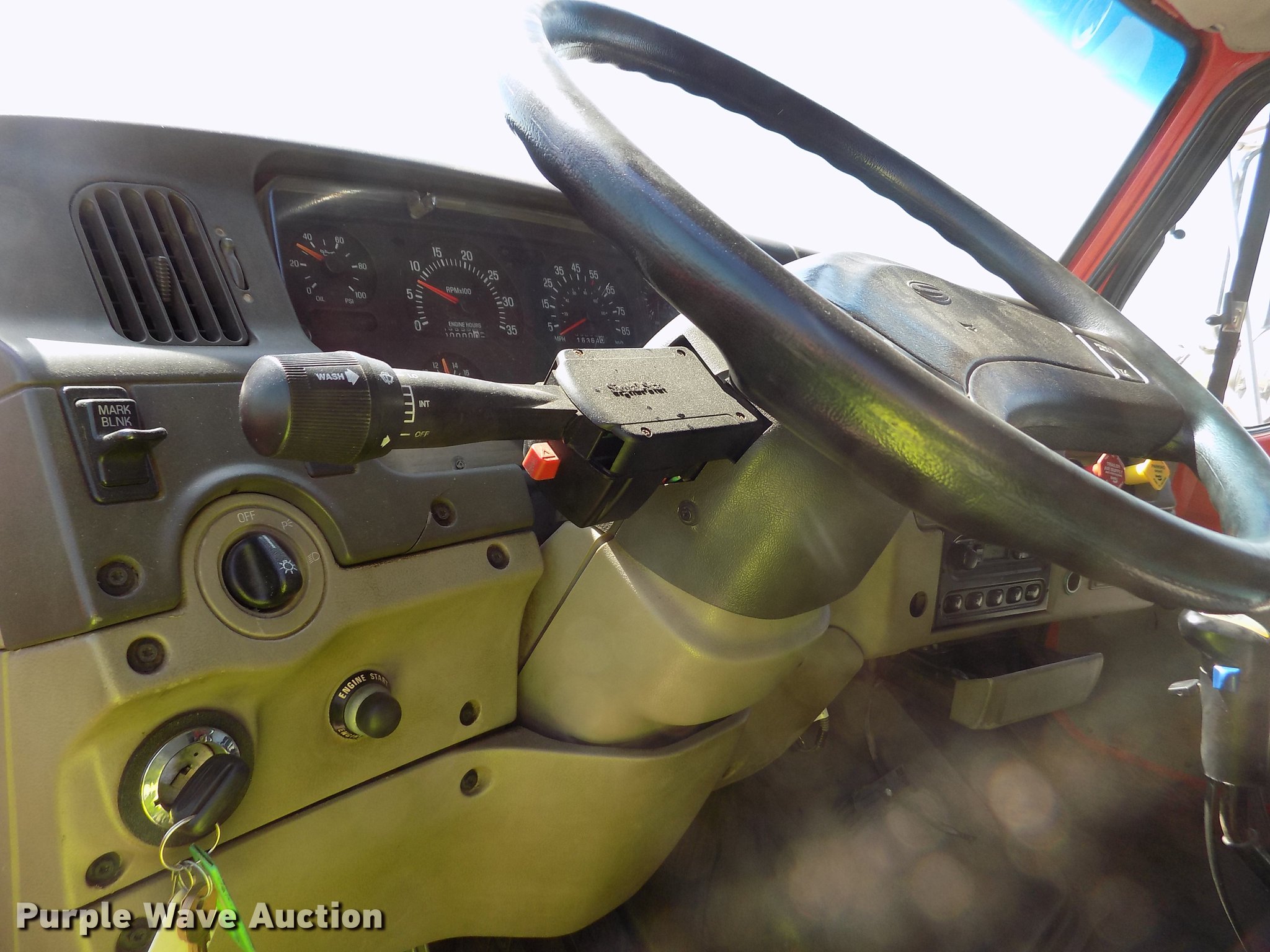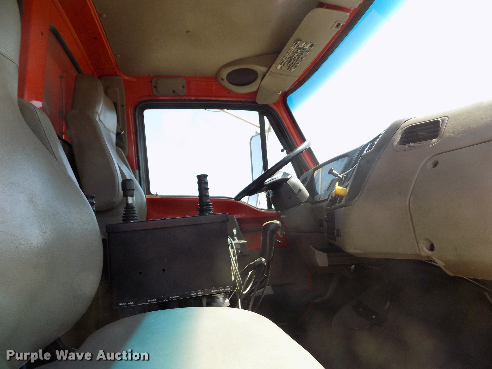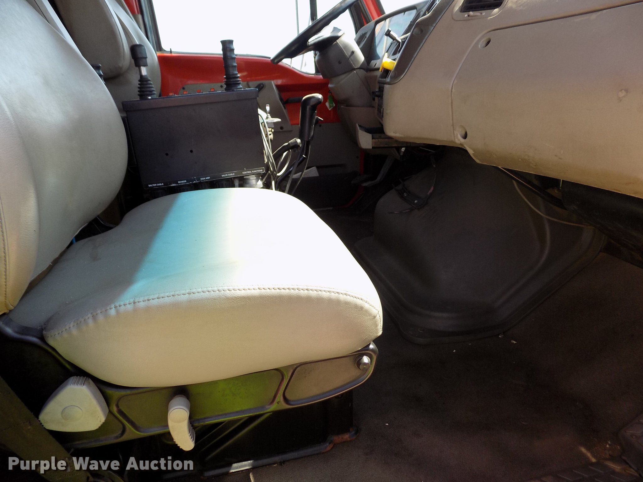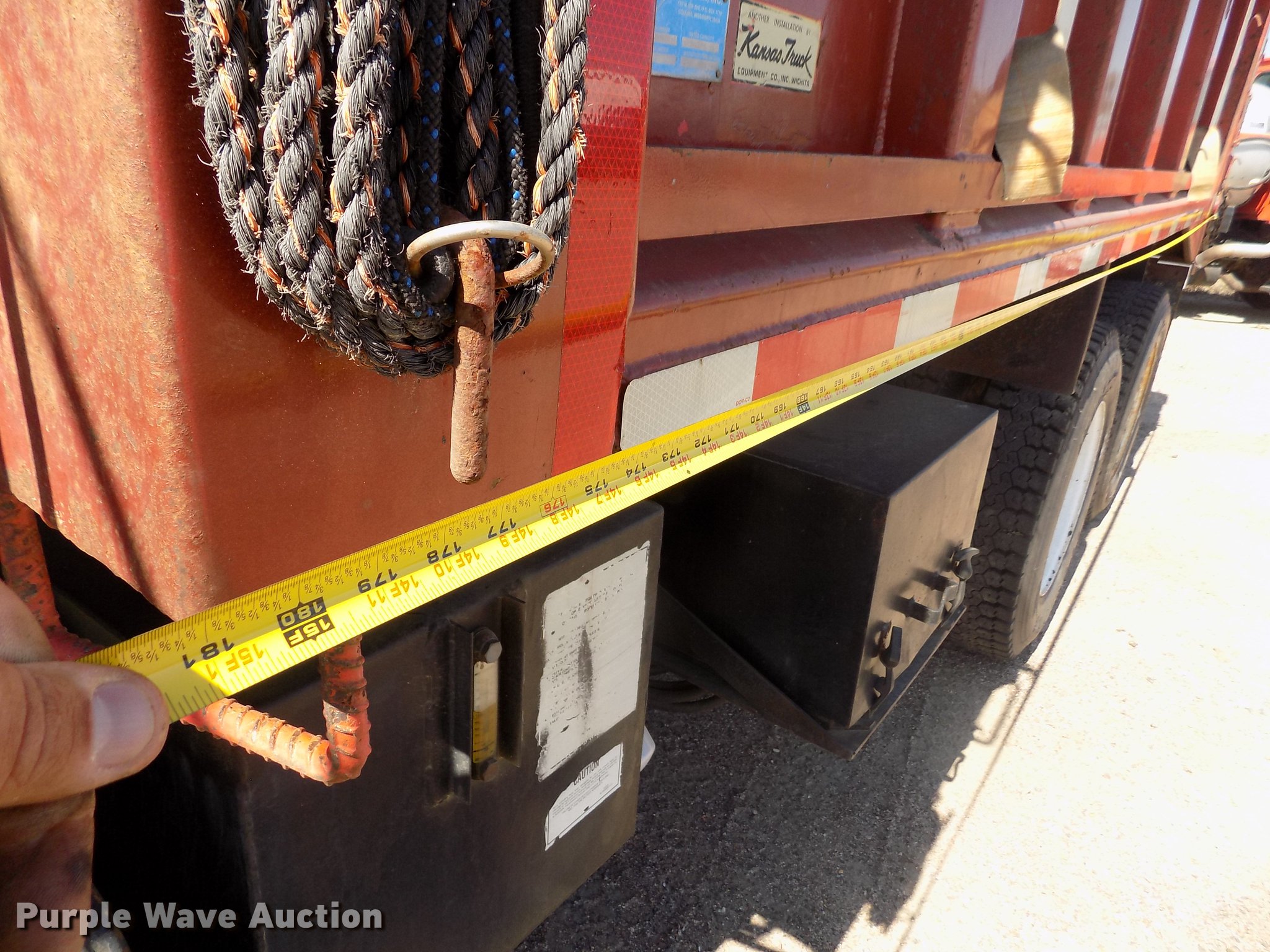 Purple Wave is selling a used Construction Dump Truck in Kansas. This item is a 2001 Sterling LT9511 dump truck with the following: 181,364 miles on odometer, 6,934 hours on meter, Caterpillar C10 10.3L L6 turbo diesel engine, Serial 3CS18934, Eaton Fuller Road Ranger eight speed manual transmission, Tandem axle, Inter-axle differential lock, AC and heat, Cruise, AM/FM, Heated mirrors, Air suspension seat, Block heater, PTO, Warren L650 steel dump bed, 15'L x 96"W, 36" side height, Single ram hoist, Manual operated end gate, Roll tarp, Toolboxes, Flink 12PA44KS00B snow plow, 12'W, 8'W wing snow plow, Warren AC2420A spreader, Nine cu.yd. capacity, Force spreader controls, Single fuel tank, Pintle hitch, Trailer wiring, Camelback suspension, Air brakes, 315/80R22.5 front tires, 295/75R22.5 rear tires, GVWR 58,000 lbs, FAWR 18,000 lbs, IAWR 20,000 lbs, RAWR 20,000 lbs, KDOT ID 263-6070