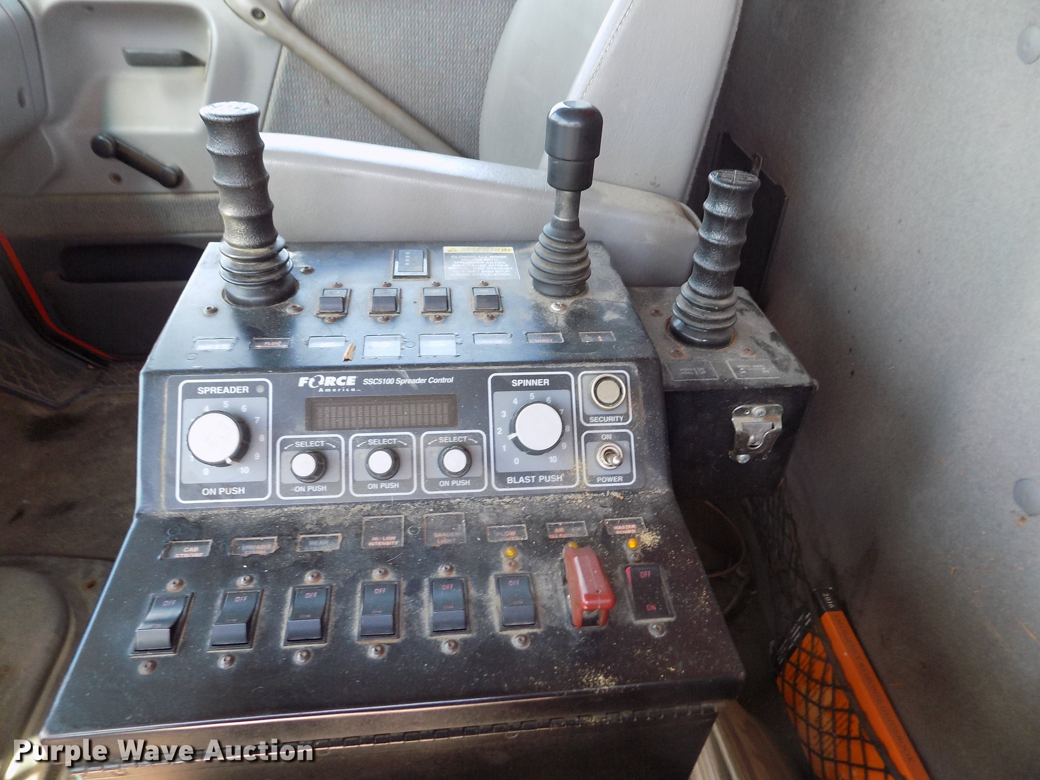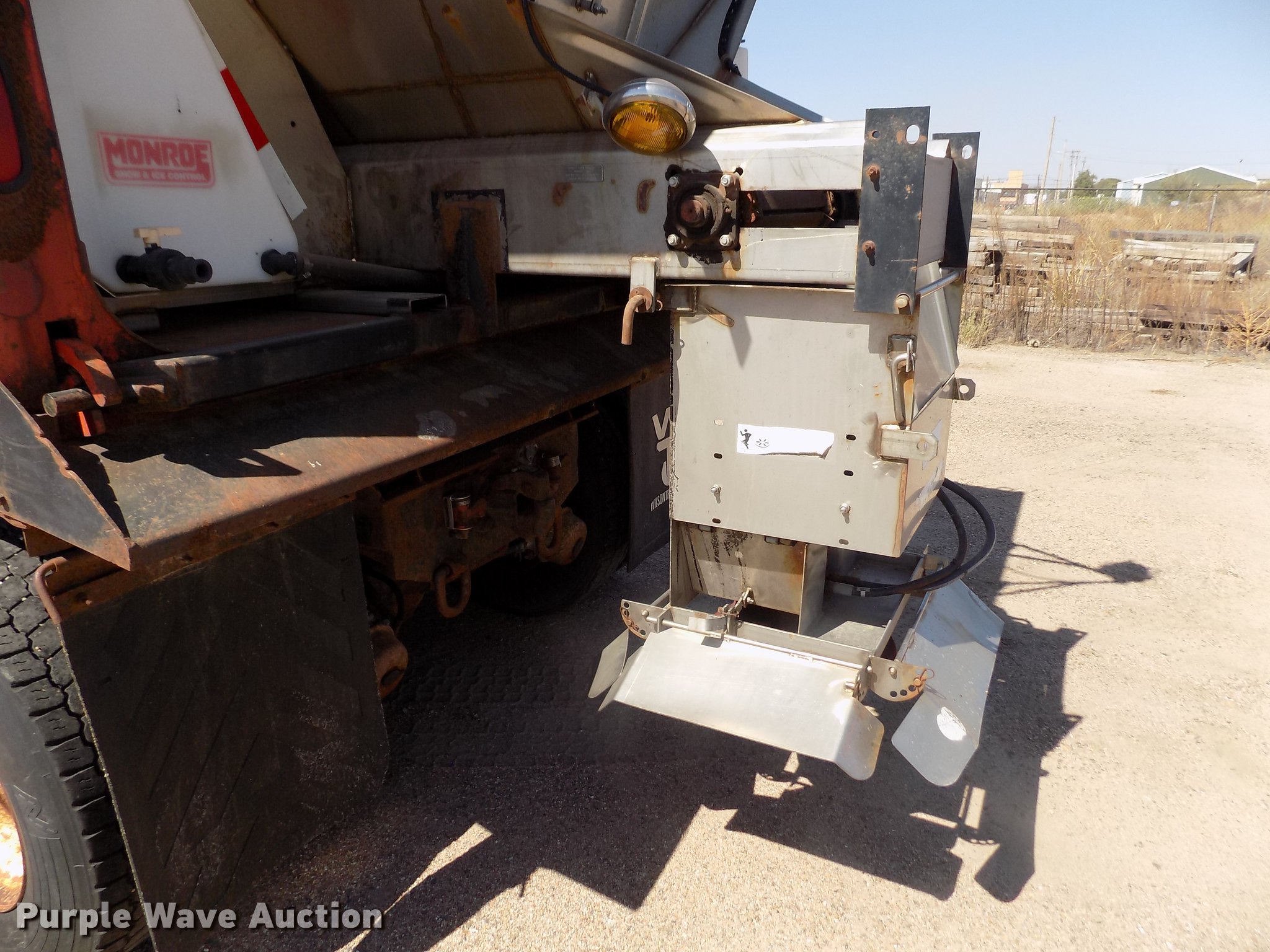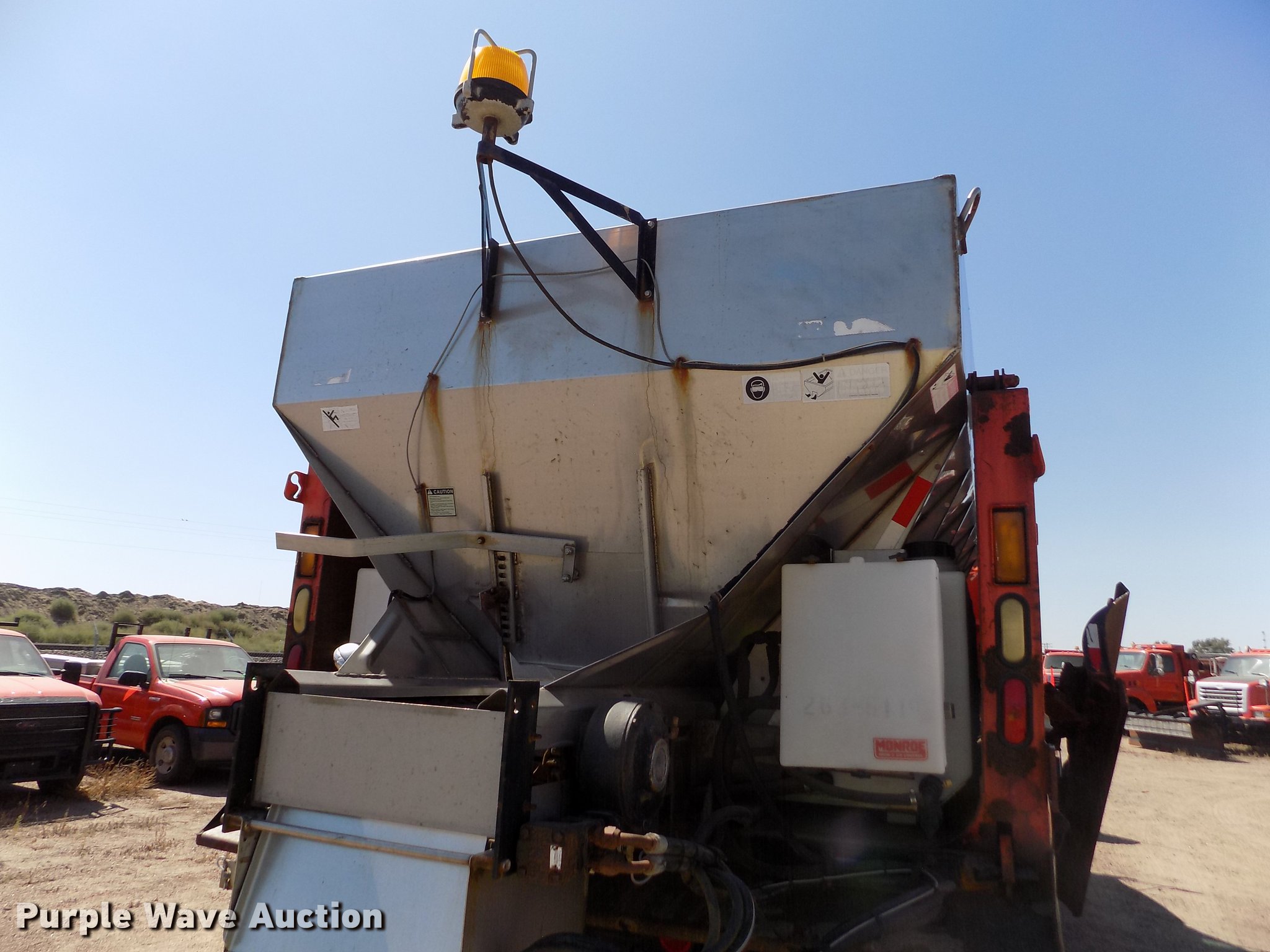 1999 Sterling L9511 dump truck. 223,352 miles on odometer, 8,827 hours on meter, Caterpillar 3306 10.5L L6 turbo diesel engine, Eaton Fuller Road Ranger eight speed manual transmission, Tandem axle, AC and heat, AM/FM, Heated mirrors, Air suspension seat, Block heater, PTO, Monroe steel dump bed 15'L x 96"W, 40" side height, Single ram hoist, Manual operated end gate, Toolboxes, Monroe 12'W snow plow, 8'W wing plow, Monroe MV-180-84-62 spreader Nine cu.yd. capacity, Force in-cab spreader controls, Single fuel tank, Pintle hitch, Spring over walking beam suspension, Air brakes, 315/80R22.5 front tires, 275/80R22.5 rear tires, GVWR 58,000 lbs, FAWR 18,000 lbs, IAWR 20,000 lbs, RAWR 20,000 lbs, Non-operational AC, KDOT ID 263-6088. Kansas title. Titles will be distributed after confirmation of payment and removal. 2FZNNWYB2XAB62362. KDOT Garden City. 121 N Campus Drive. Garden City, KS 67846