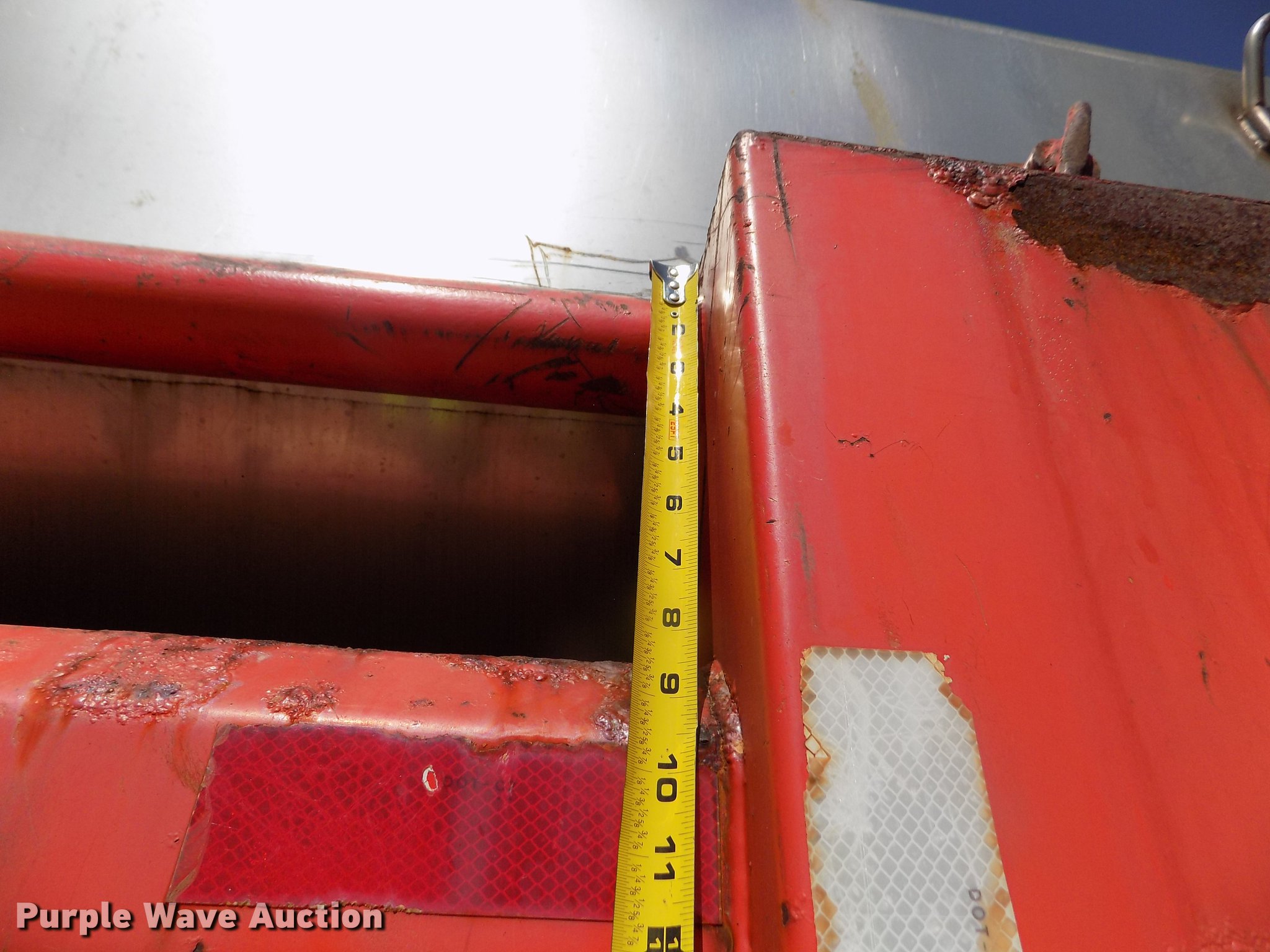Purple Wave is selling a used Construction Dump Truck in Kansas. This item is a 1999 Sterling L9511 dump truck with the following: 223,352 miles on odometer, 8,827 hours on meter, Caterpillar 3306 10.5L L6 turbo diesel engine, Eaton Fuller Road Ranger eight speed manual transmission, Tandem axle, AC and heat, AM/FM, Heated mirrors, Air suspension seat, Block heater, PTO, Monroe steel dump bed, 15'L x 96"W, 40" side height, Single ram hoist, Manual operated end gate, Toolboxes, Monroe 12'W snow plow, 8'W wing plow, Monroe MV-180-84-62 spreader, Nine cu.yd. capacity, Force in-cab spreader controls, Single fuel tank, Pintle hitch, Spring over walking beam suspension, Air brakes, 315/80R22.5 front tires, 275/80R22.5 rear tires, GVWR 58,000 lbs, FAWR 18,000 lbs, IAWR 20,000 lbs, RAWR 20,000 lbs, Non-operational AC, KDOT ID 263-6088