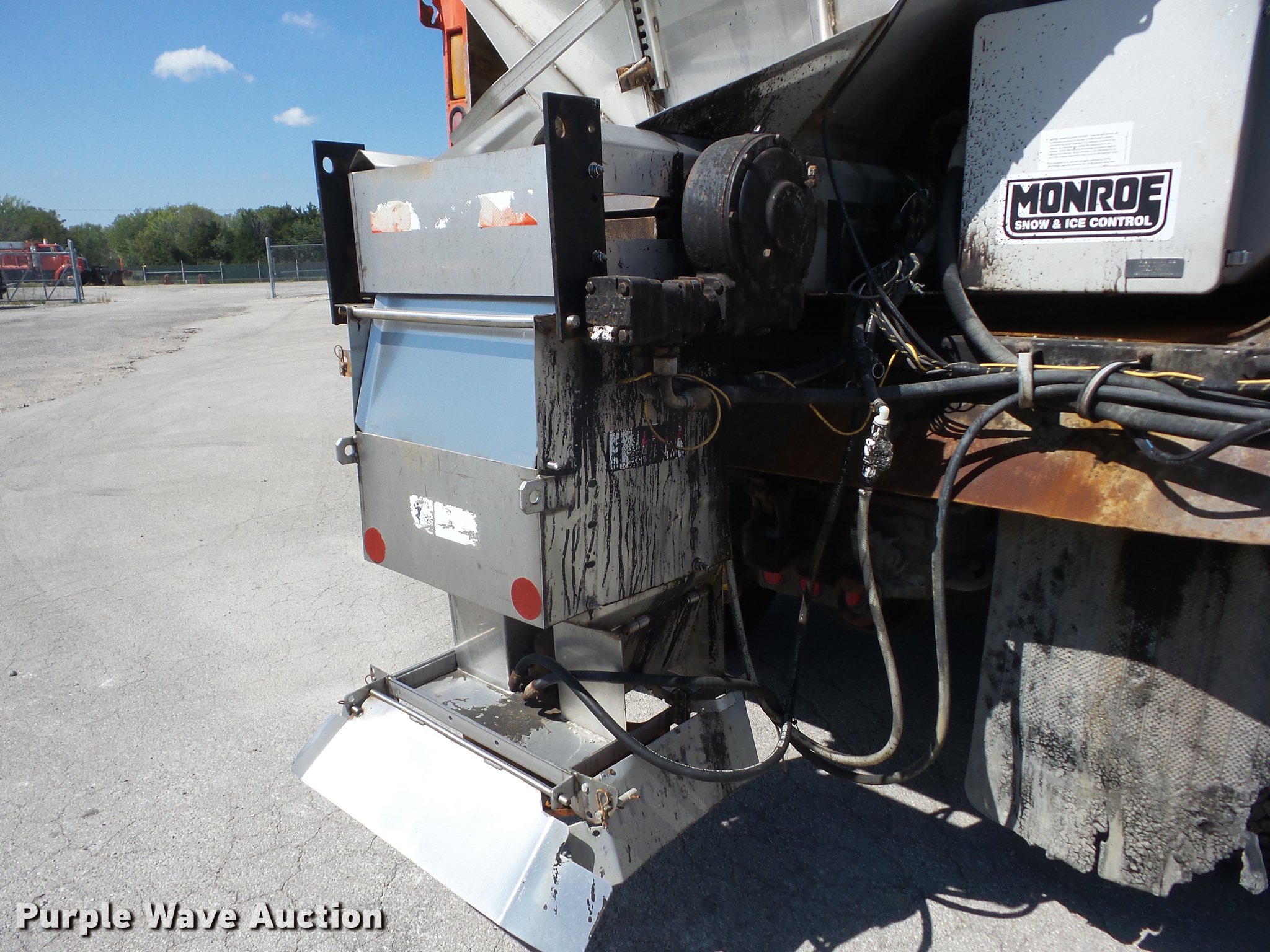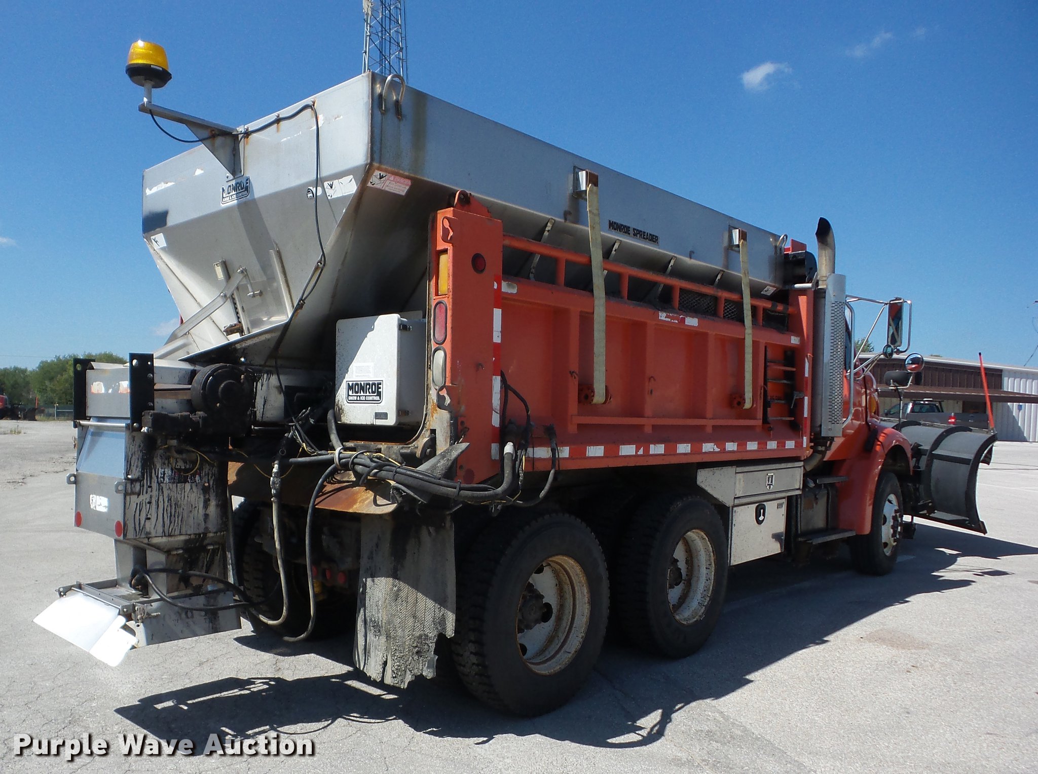 2003 Sterling LT7501 dump truck. 220,485 miles on odometer, 9,255 hours on meter, Caterpillar 3126 7.2L L6 turbo diesel engine, Automatic transmission, Inter-axle differential lock, AC and heat, Cruise, AM/FM/weatherband, Heated mirrors, Air suspension seat, Trailer brake controller, Front mounted PTO, 13'L x 8'W steel dump bed 36" side height, Single ram hoist, Air operated end gate, Roll tarp, Toolbox, Monroe 11'W snow plow, Monroe spreader, Single fuel tank, Pintle hitch, Walking beam suspension, Air brakes, 295/75R22.5 tires, GVWR 53,880 lbs, FAWR 13,880 lbs, IAWR 20,000 lbs, RAWR 20,000 lbs, KDOT ID 263-4033. Kansas title. Titles will be distributed after confirmation of payment and removal. 2FZHATAK13AL69737. Kansas Department of Transportation - Chanute. 411 W. 14th Street. Chanute, KS 66720
