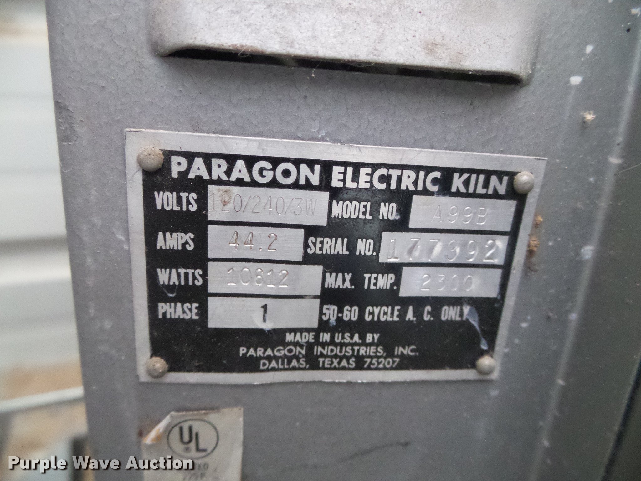 Purple Wave is selling a used Tools in Oklahoma. This item is a Paragon A99B kiln with the following: Electric operation, 120/240V, Single phase, 2,300 degree unit, High, low, medium triple switch, Three tier, Serial 177392