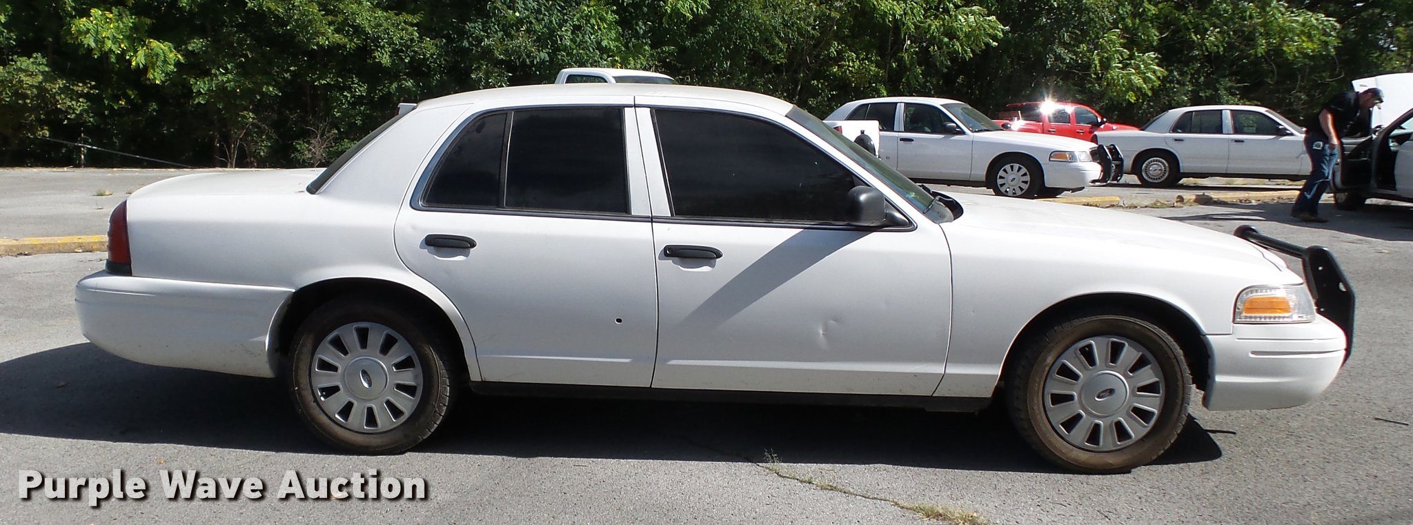 Purple Wave is selling a used Passenger Vehicle in Missouri. This item is a 2010 Ford Crown Victoria Police Interceptor with the following: 108,444 miles on odometer, 4.6L V8 SOHC 16V FFV gas engine, Automatic transmission, AC and heat, Tilt, Cruise, AM/FM/CD, Power windows, locks, mirrors, and seat, Cloth interior, Spotlight, Push bar, P235/55R17 tires, Driver's door has been replaced, Dead battery, Rear seat missing