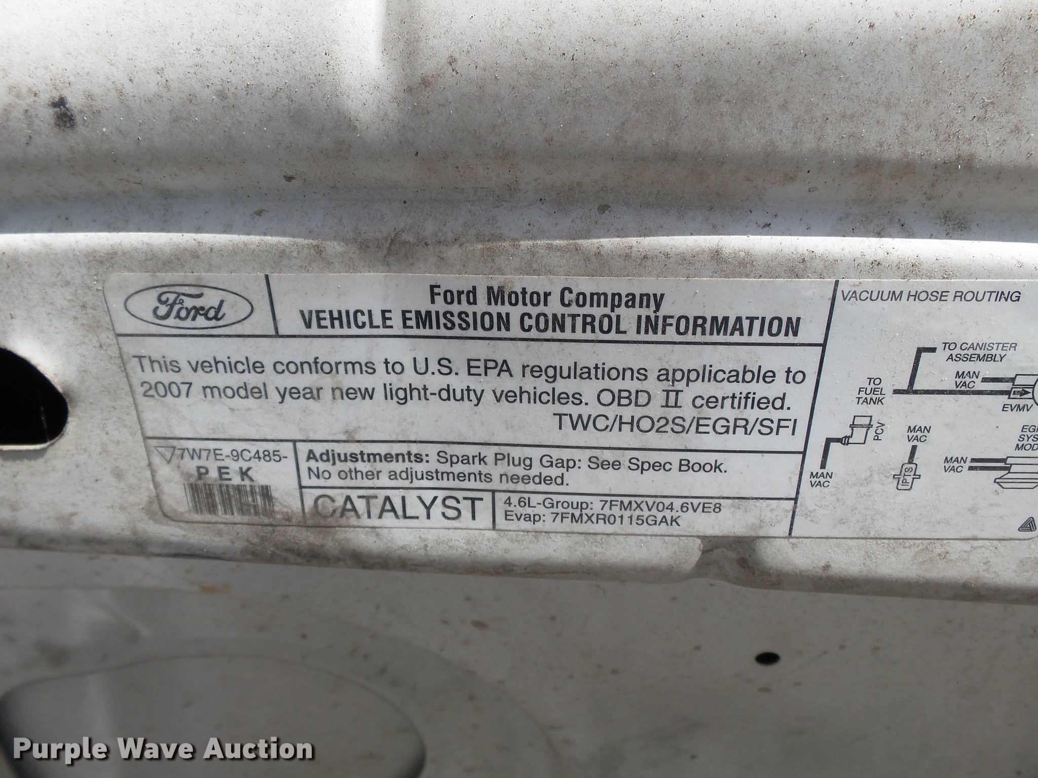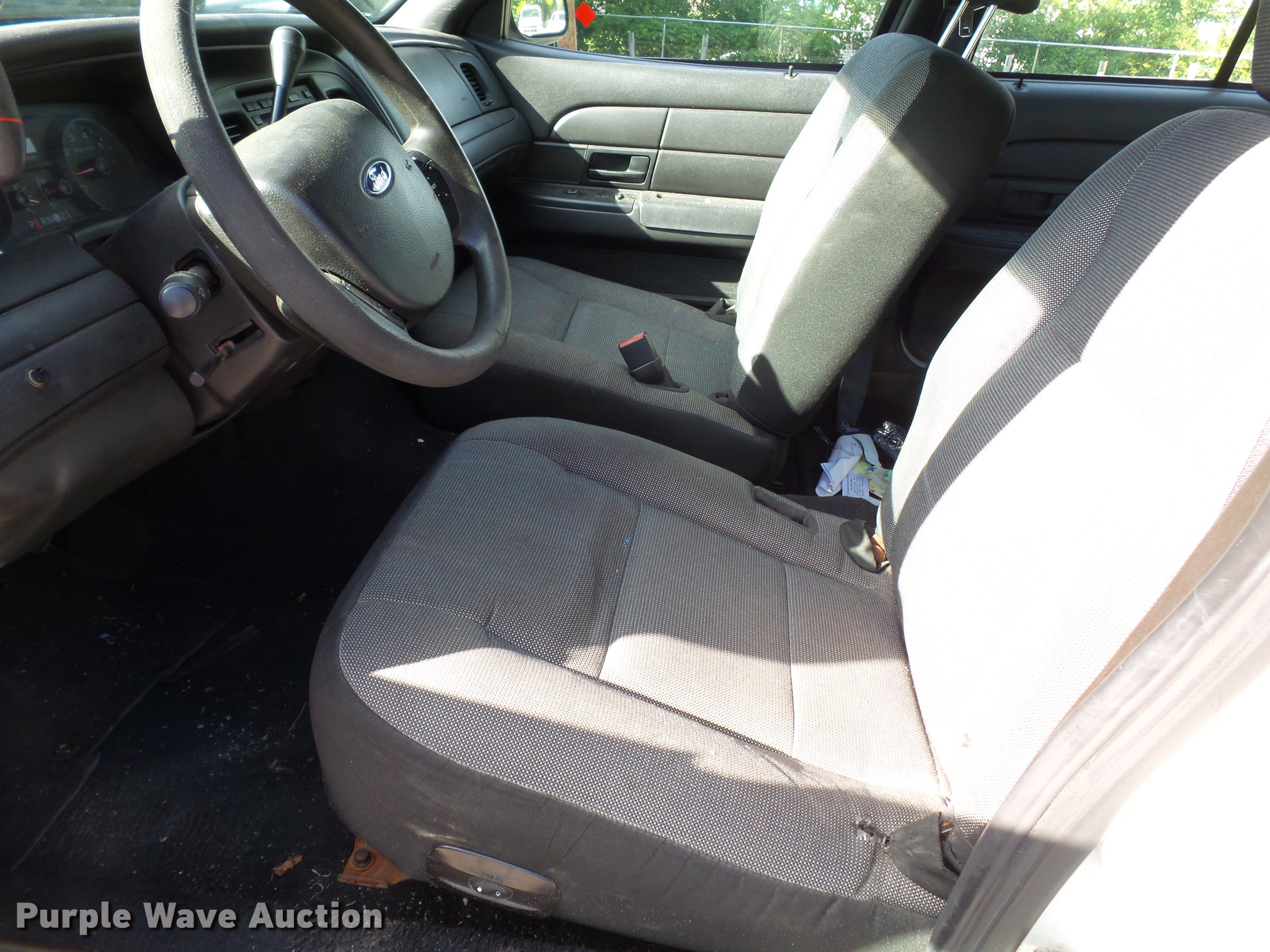 Purple Wave is selling a used Passenger Vehicle in Missouri. This item is a 2007 Ford Crown Victoria Police Interceptor with the following: 107,323 miles on odometer, 4.6L V8 SOHC 16V gas engine, Automatic transmission, AC and heat, Tilt, Cruise, AM/FM/CD, Power windows, locks, mirrors, and seat, Cloth interior, Spotlight, Push bar, P235/55R17 tires