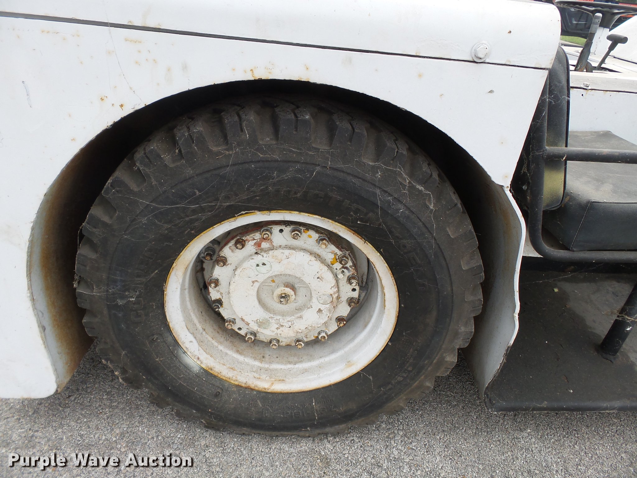 United Tractor TA-75 tug. Ford 302 eight cylinder gas engine, Automatic transmission, Manual hydraulic brakes Brakes need work, 6.00-9 front tires, 7.50-16LT rear tires, Serial 008242. City of Poplar Bluff. 102 Johnson Dr. Poplar Bluff, MO 63901