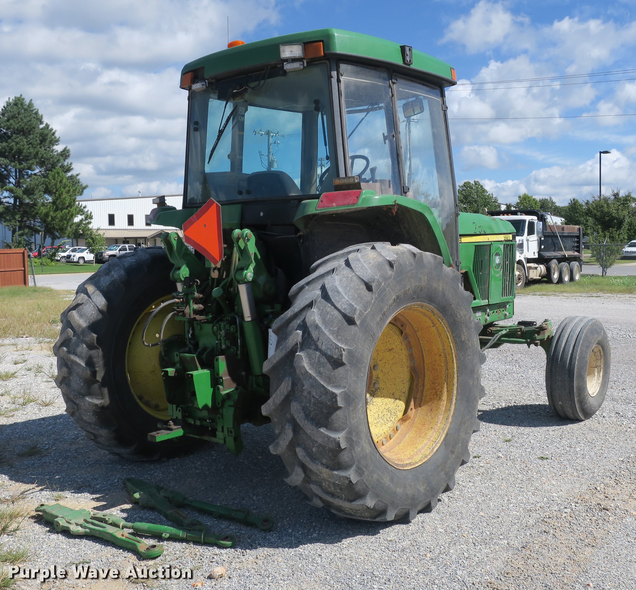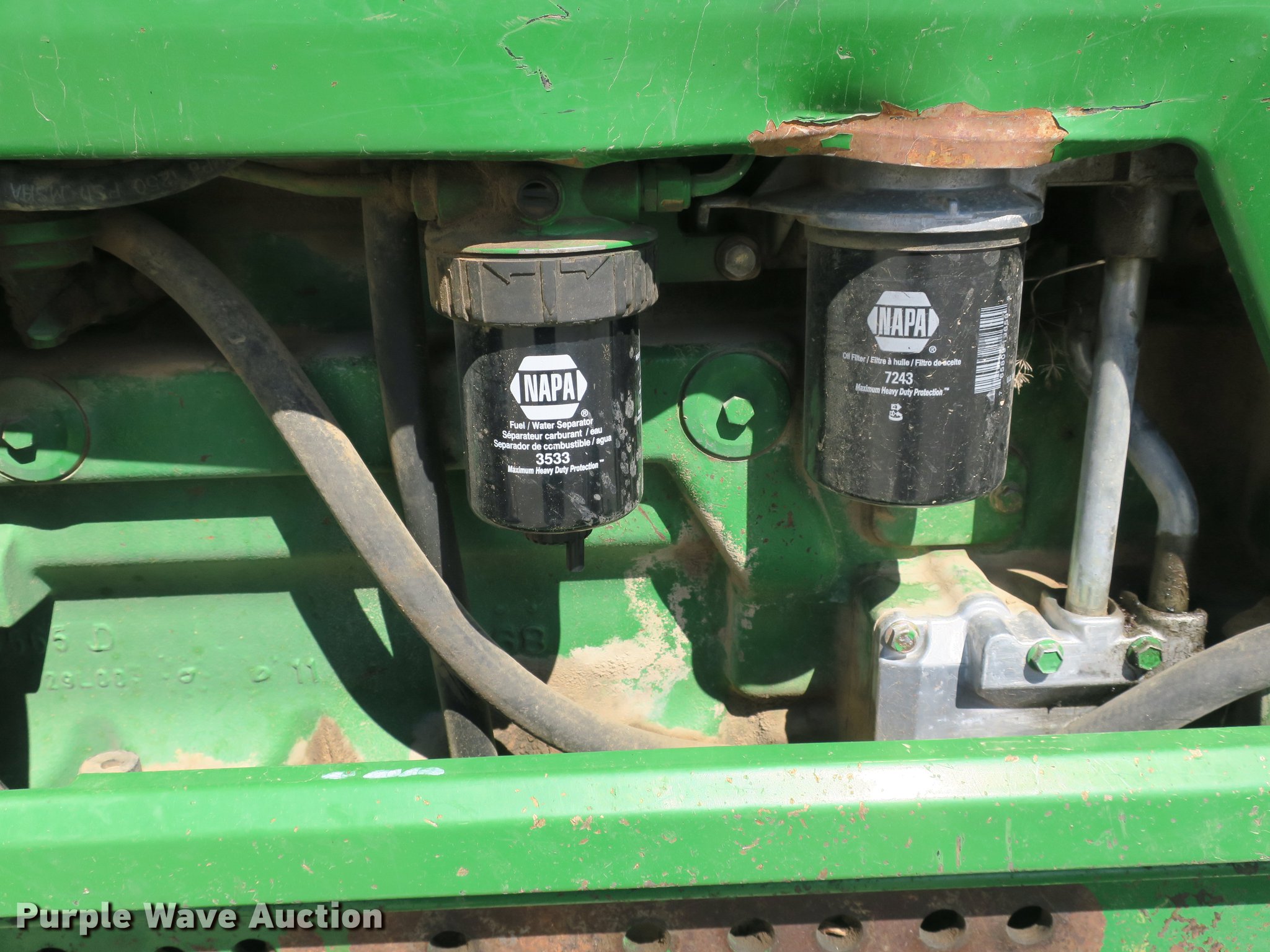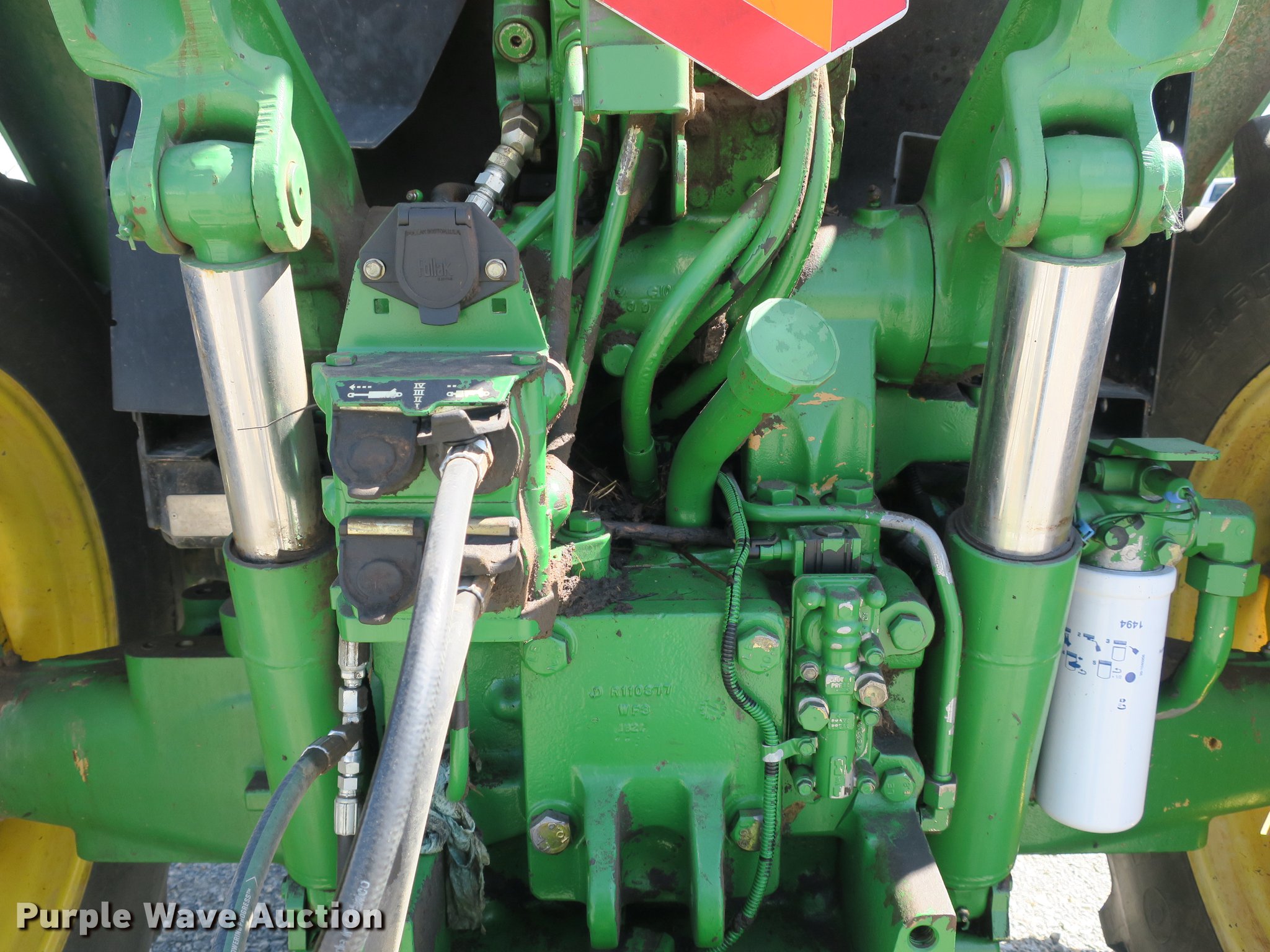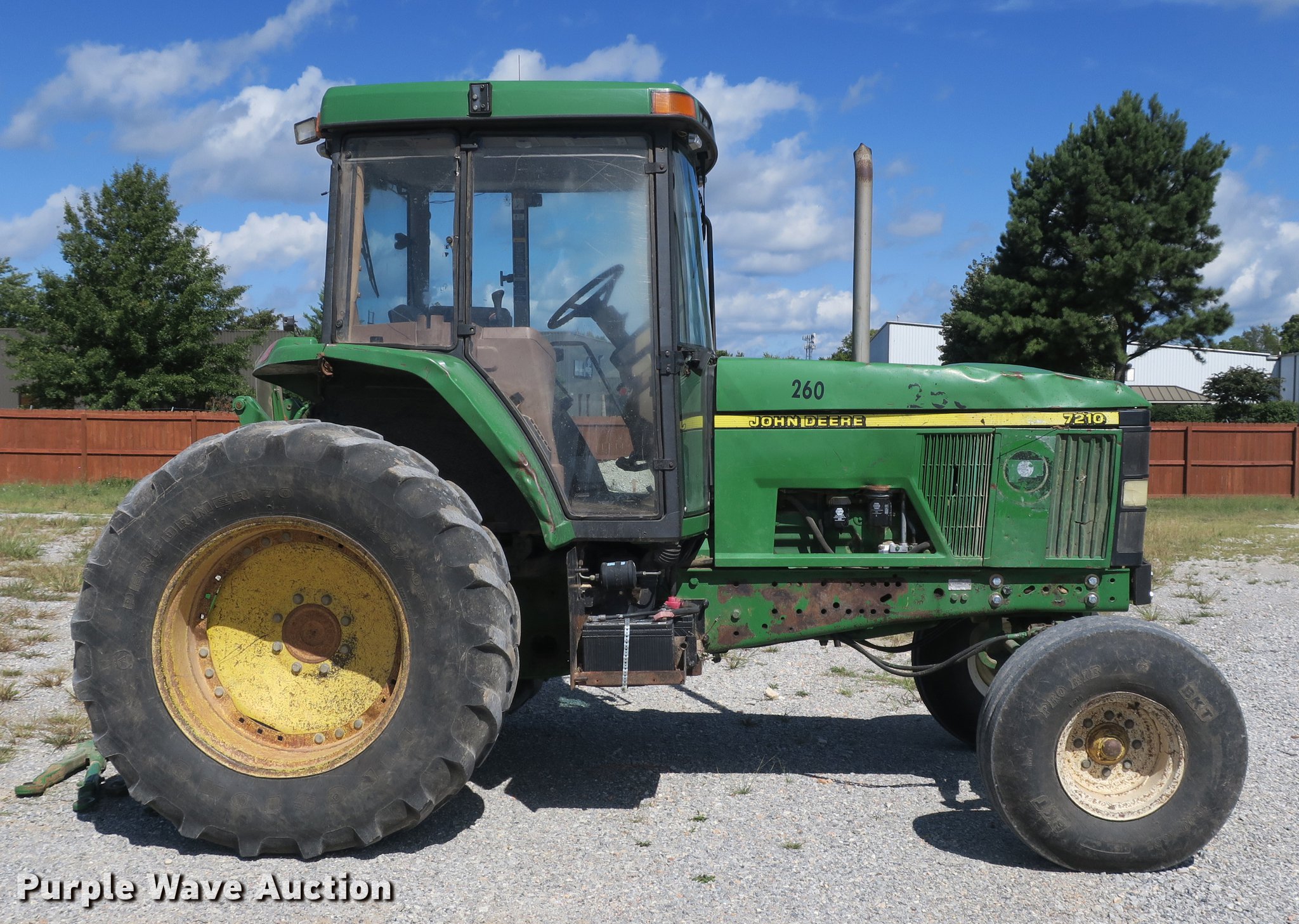 Purple Wave is selling a used Tractor in Arkansas. This item is a John Deere 7210 tractor with the following: 1,046 hours on meter, John Deere six cylinder turbo diesel engine, Quad-Range transmission, 12F-4R gears, AC and heat, AM/FM, Spring suspension seat, Three point, Unattached, 540 PTO, Seven pin outlet, Rear hydraulic remote sets, 11.00-16 front tires, 480/70R34 rear tires, Maintenance and service records available upon request, Serial BW7210R055650