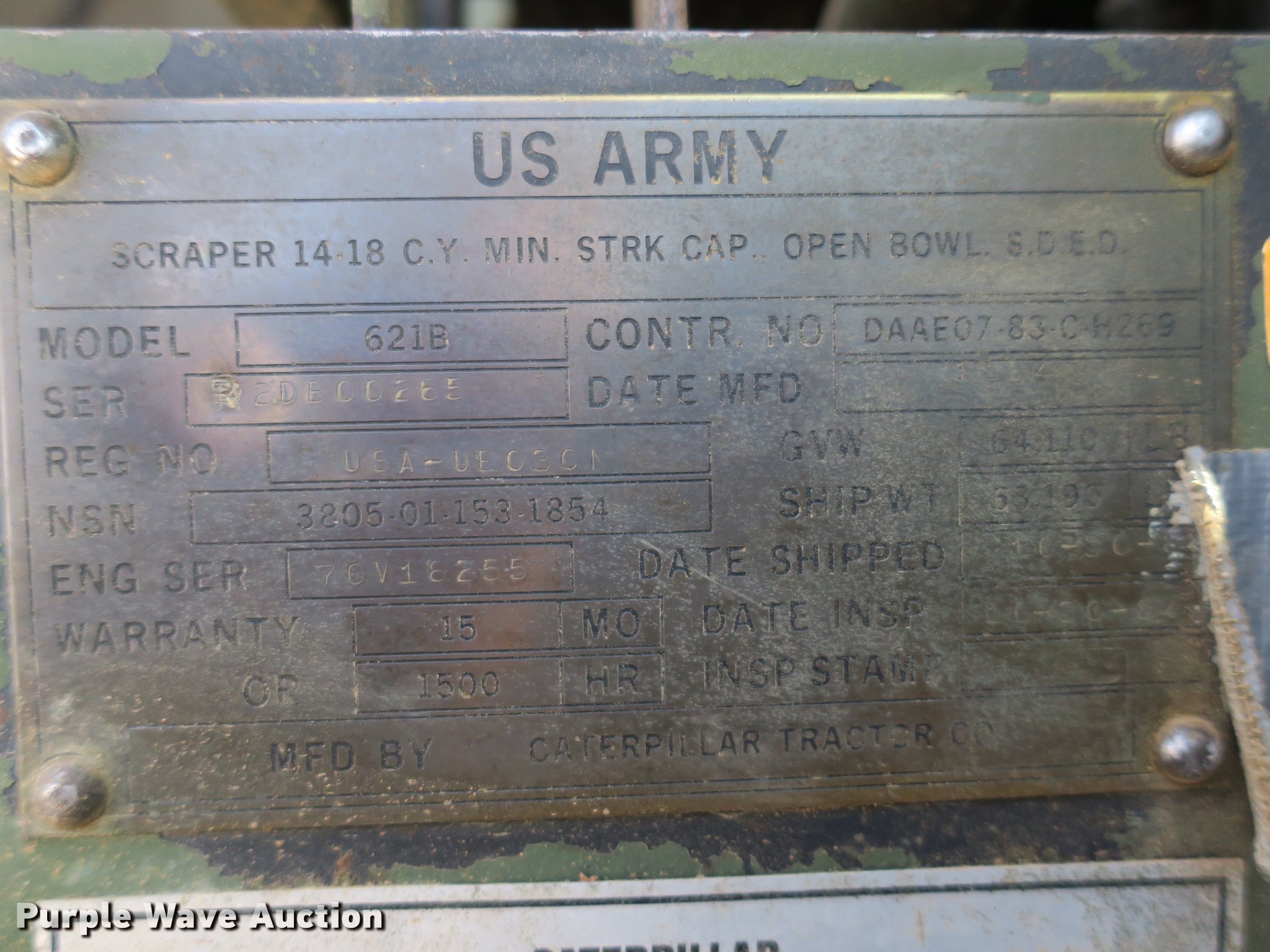 1985 Caterpillar 621B MIL conventional scraper | SOLD! October 23 Government Auction
