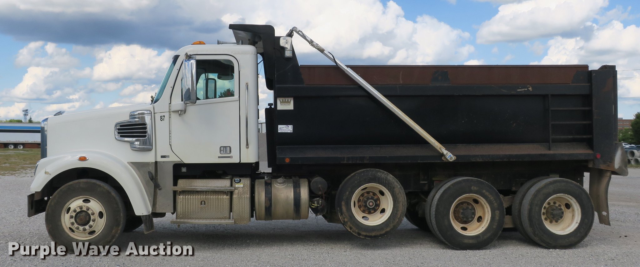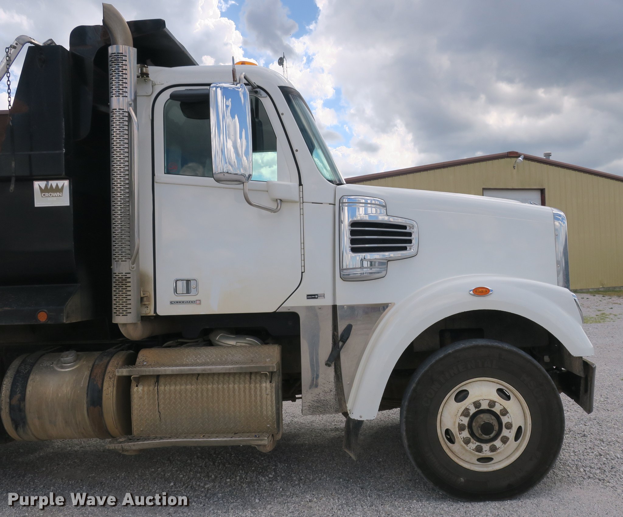 Purple Wave is selling a used Construction Dump Truck in Arkansas. This item is a 2012 Freightliner Coronado SD dump truck with the following: 142,978 miles on odometer, Detroit Diesel DD13 12.8L L6 turbo diesel engine, Eaton Fuller 8LL 10 speed manual transmission, Inter-axle differential lock, Tandem axle, AC and heat, Tilt, Cruise, AM/FM, Air suspnesion seat, Air ride cab, PTO, 16'L x 96"W steel barrel bed, 48" side height, Single ram hoist, Air operated end gate, Roll tarp, Dual fuel tanks, Pintle hitch, Trailer wiring, Double frame, Pusher axle, Spring over walking beam suspension, Air brakes, Engine brakes, 11R22.5 front tires, 295/75R22.5 rear tires, GVWR 79,220 lbs, FAWR 13,220 lbs, IAWR 20,000 lbs, RAWR 20,000 lbs, Maintenance and service records available upon request