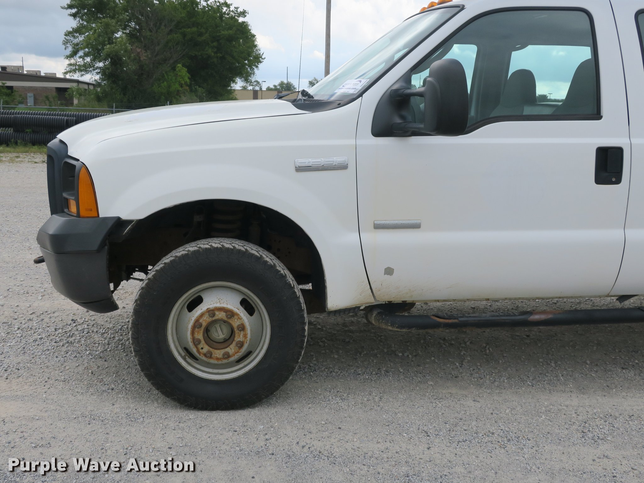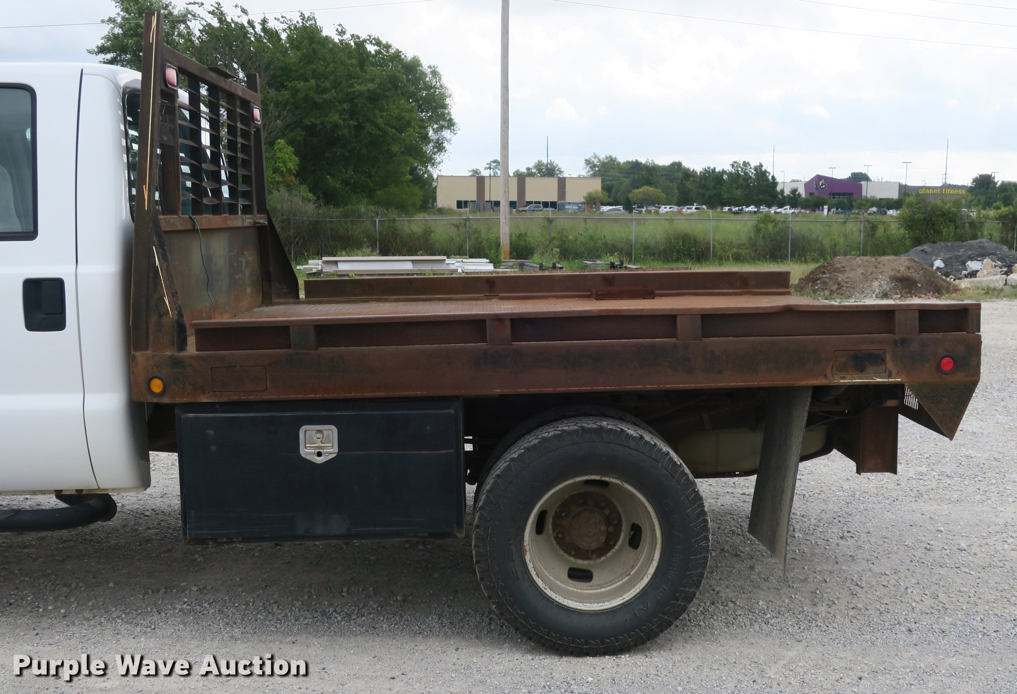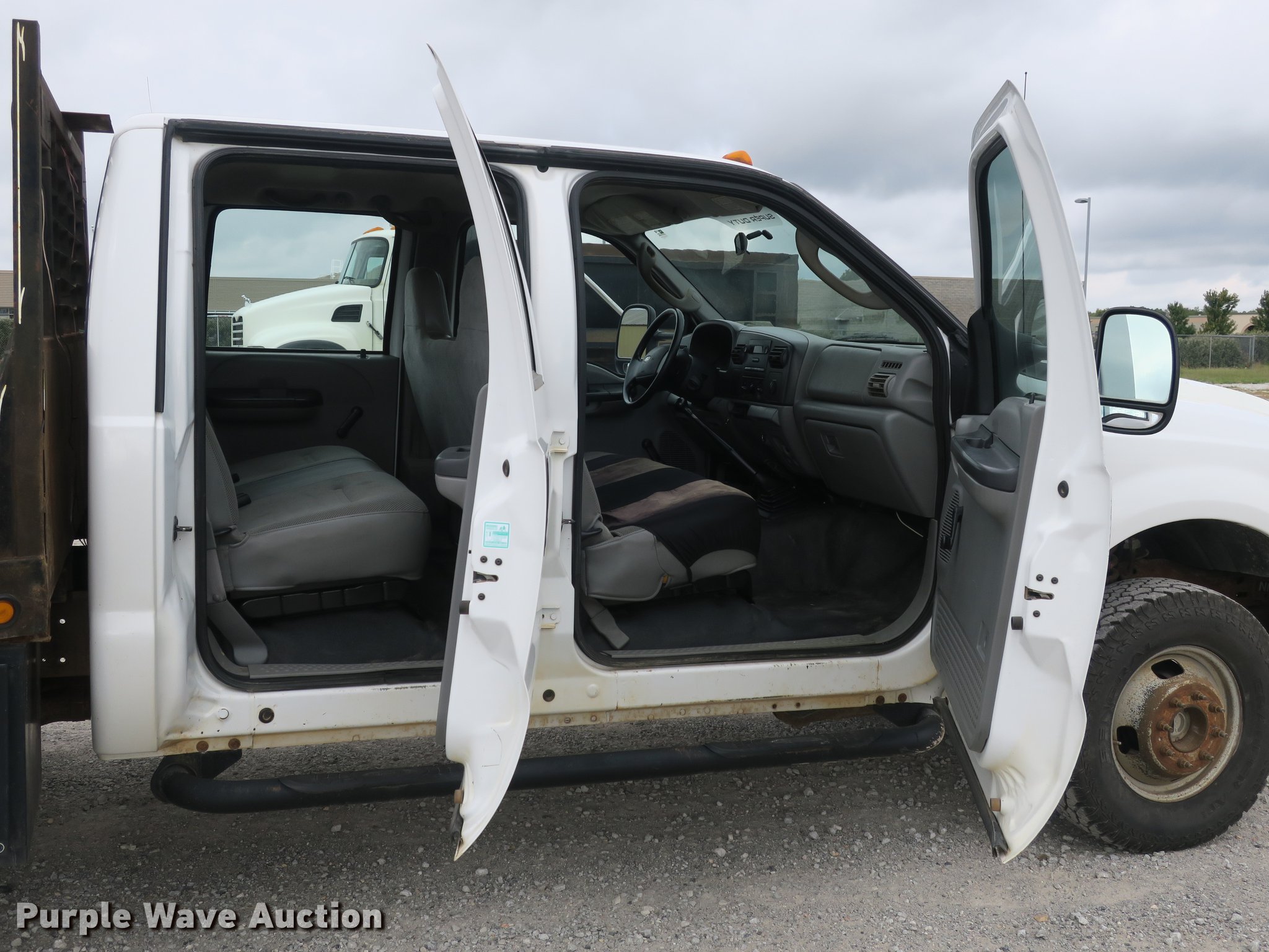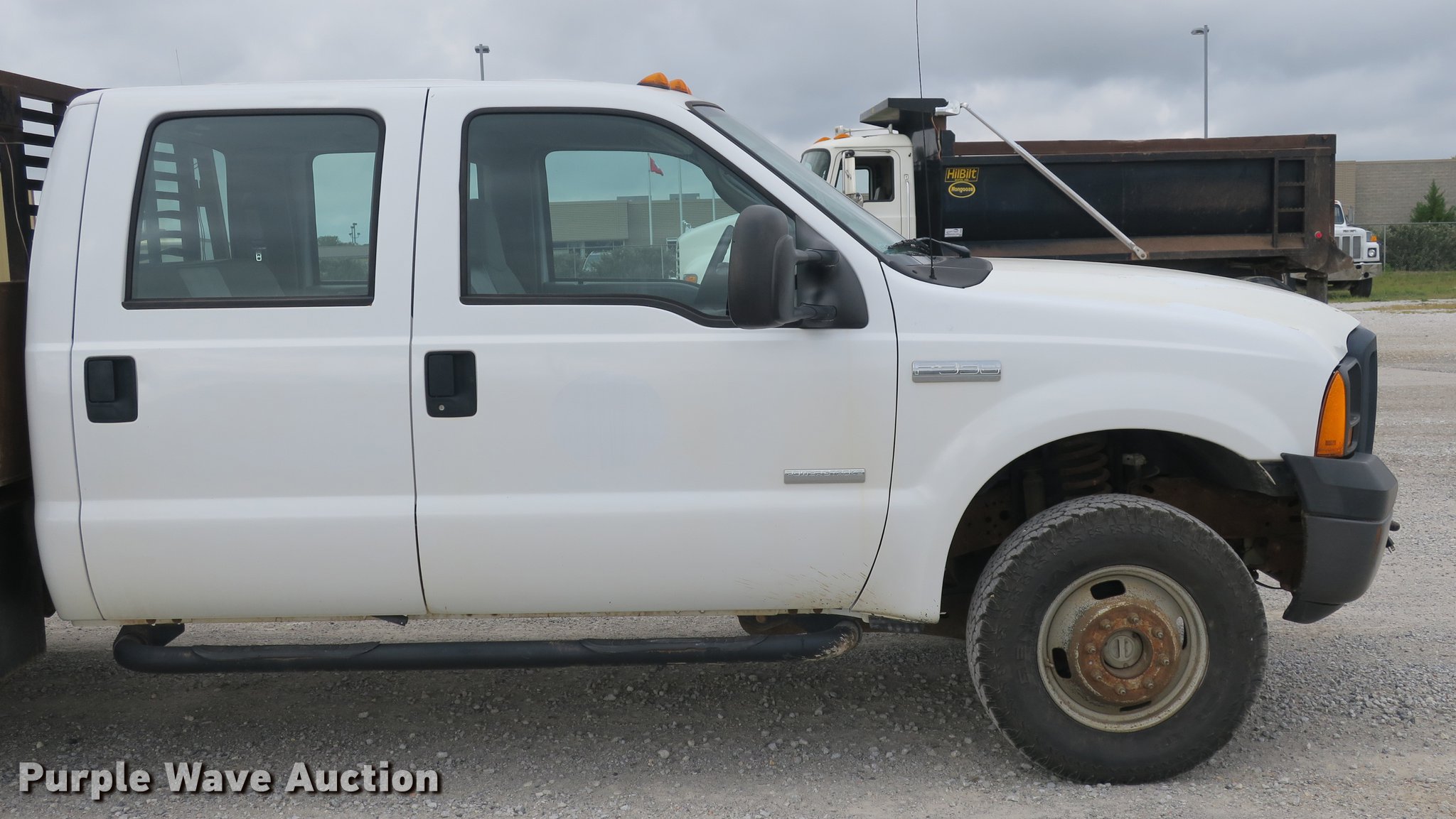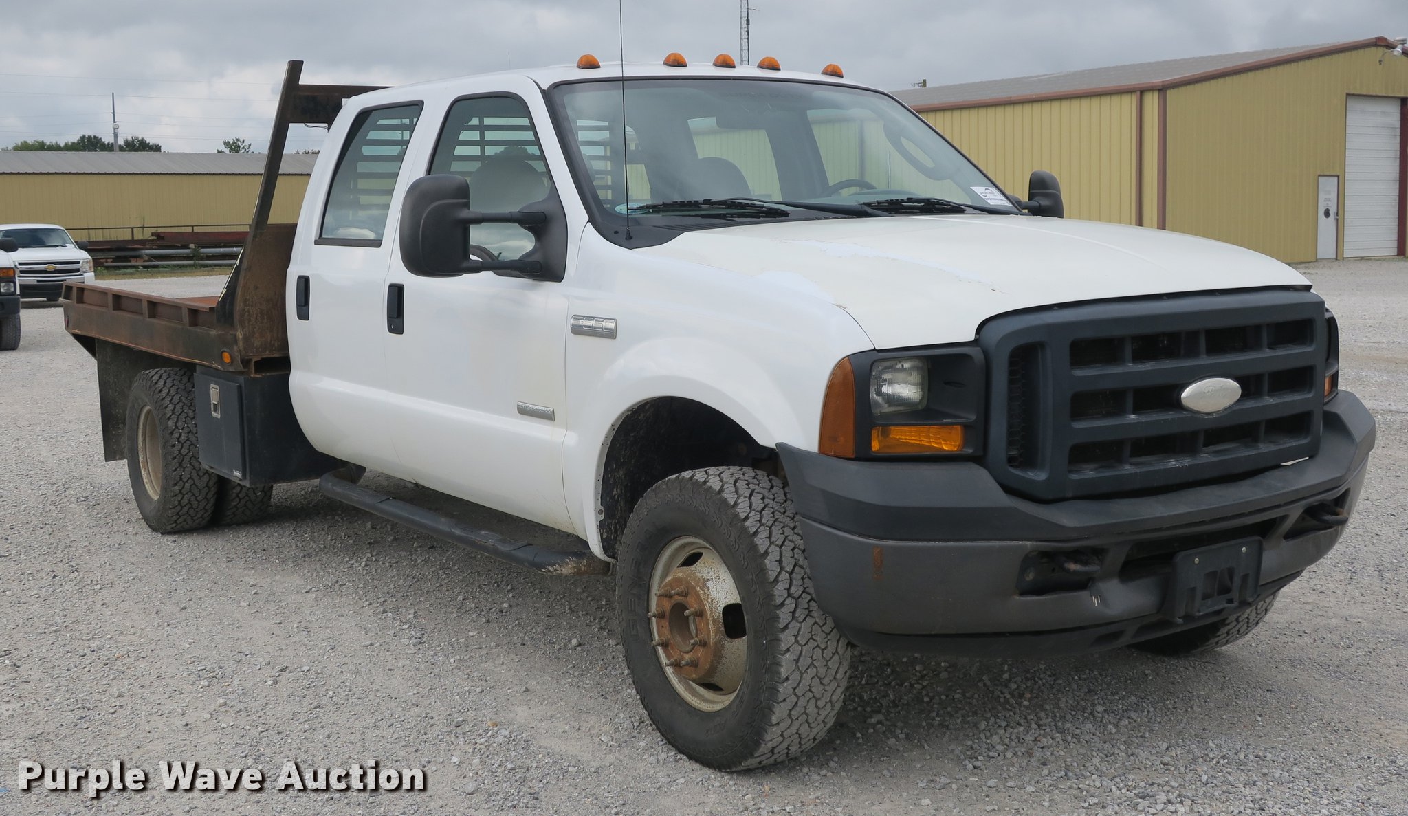 Purple Wave is selling a used 3/4 or 1 Ton Pickup or Van in Arkansas. This item is a 2006 Ford F350 Super Duty Crew Cab flatbed pickup truck with the following: 148,066 miles on odometer, 6.0L V8 OHV 32V turbo diesel engine, Six speed manual transmission, Four wheel drive, AC and heat, AM/FM, Cloth interior, Block heater, Front tow hook, Running boards, 9'L x 96"W flatbed, Toolbox, Receiver hitch, Trailer wiring, LT265/70R17 tires, Maintenance and service records available upon request