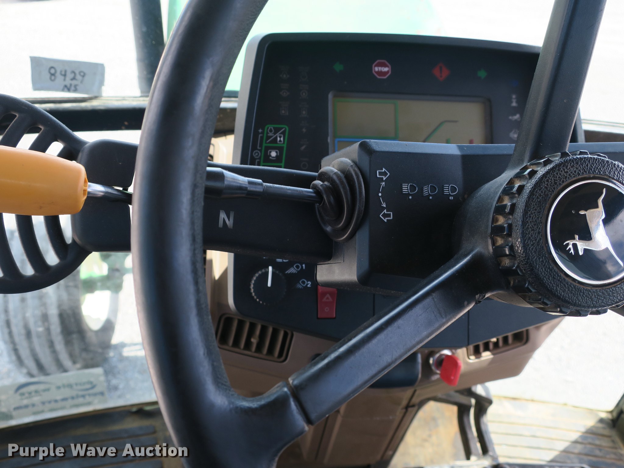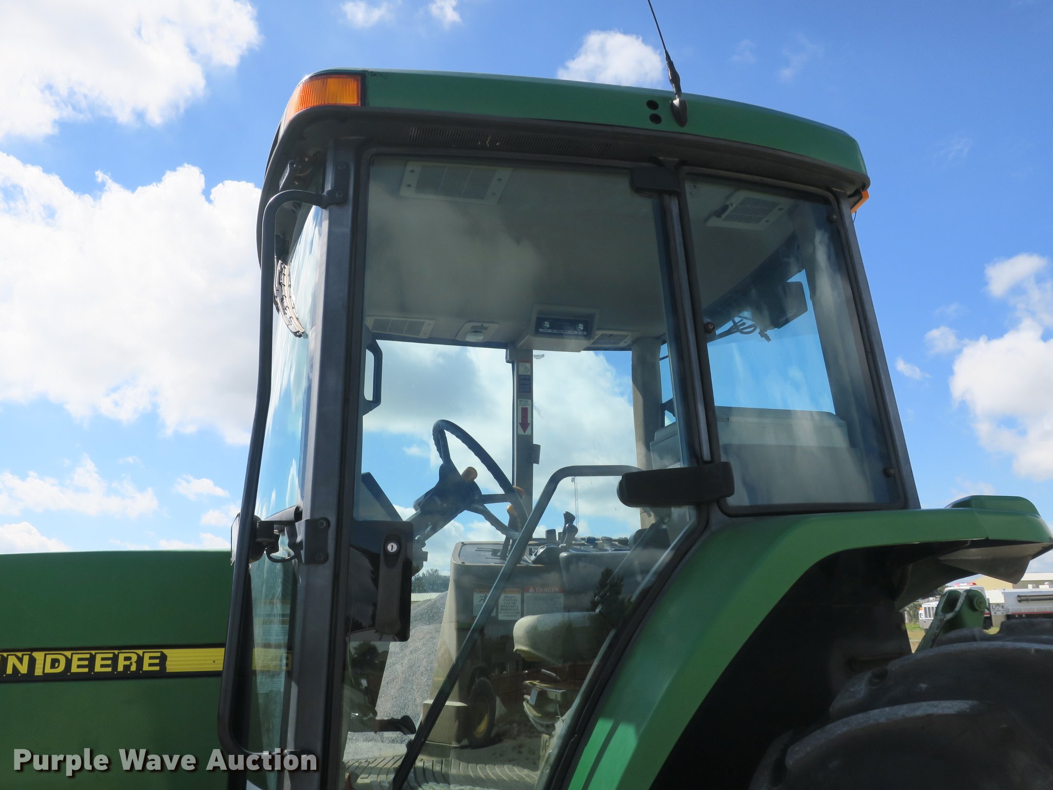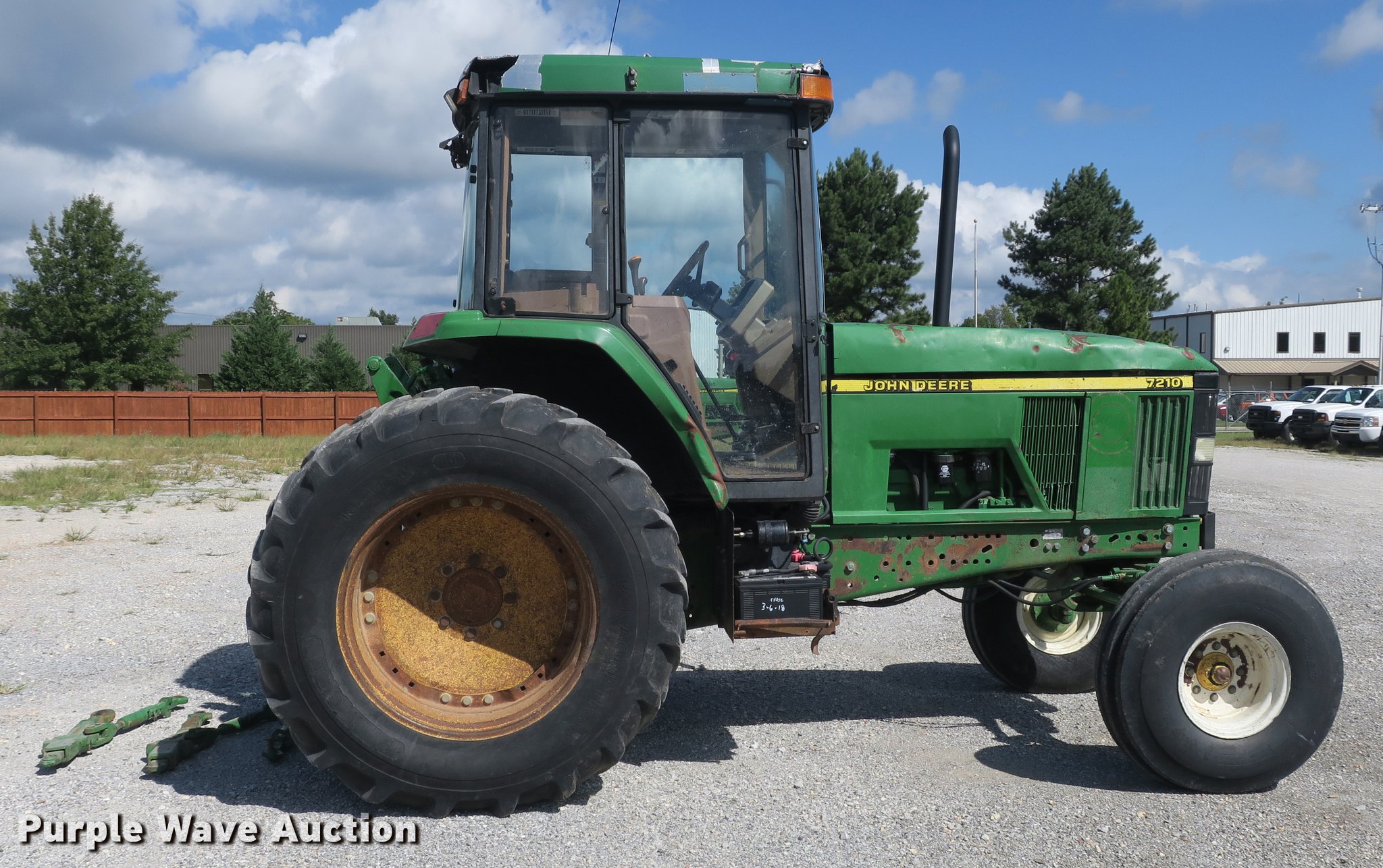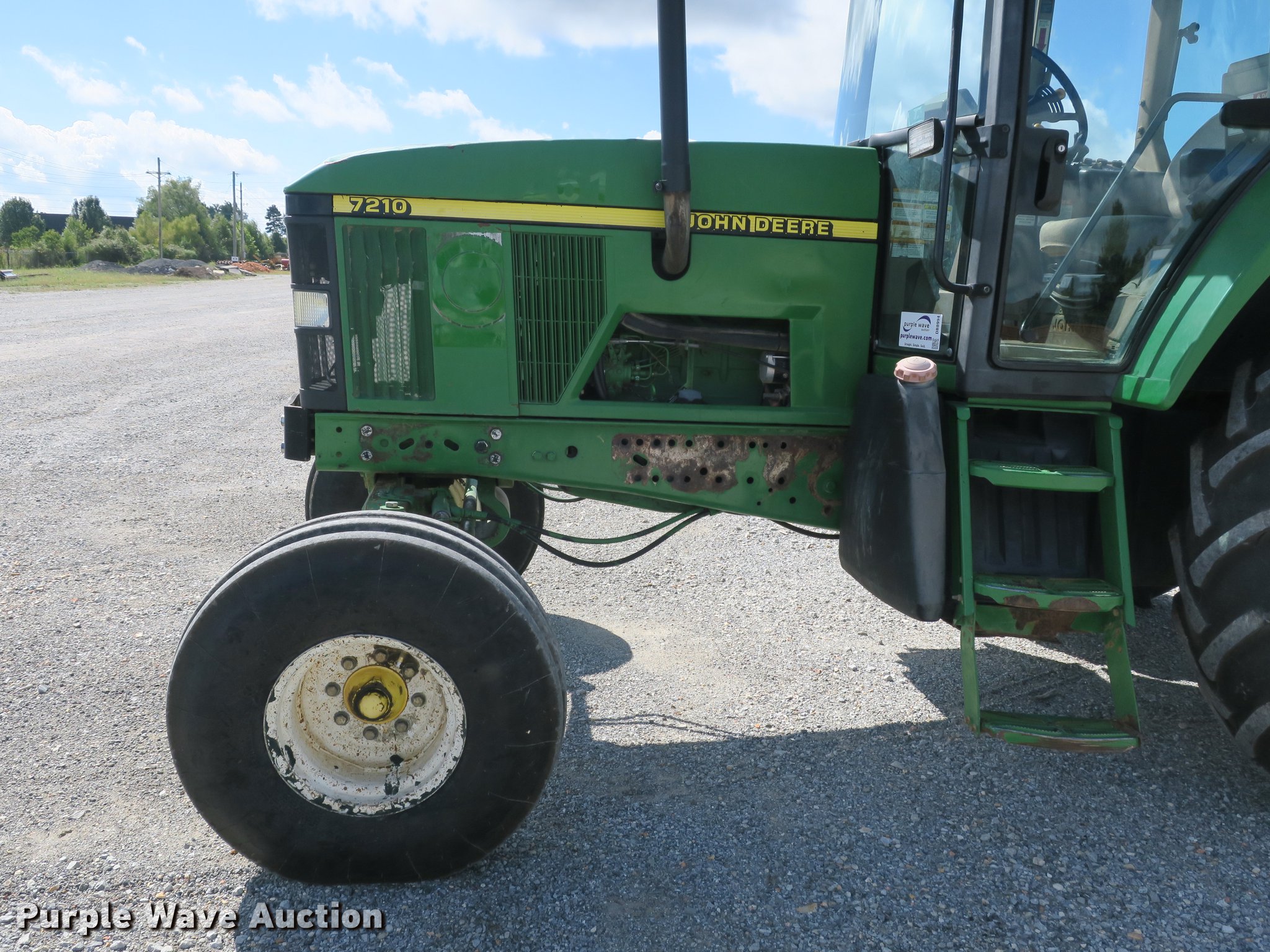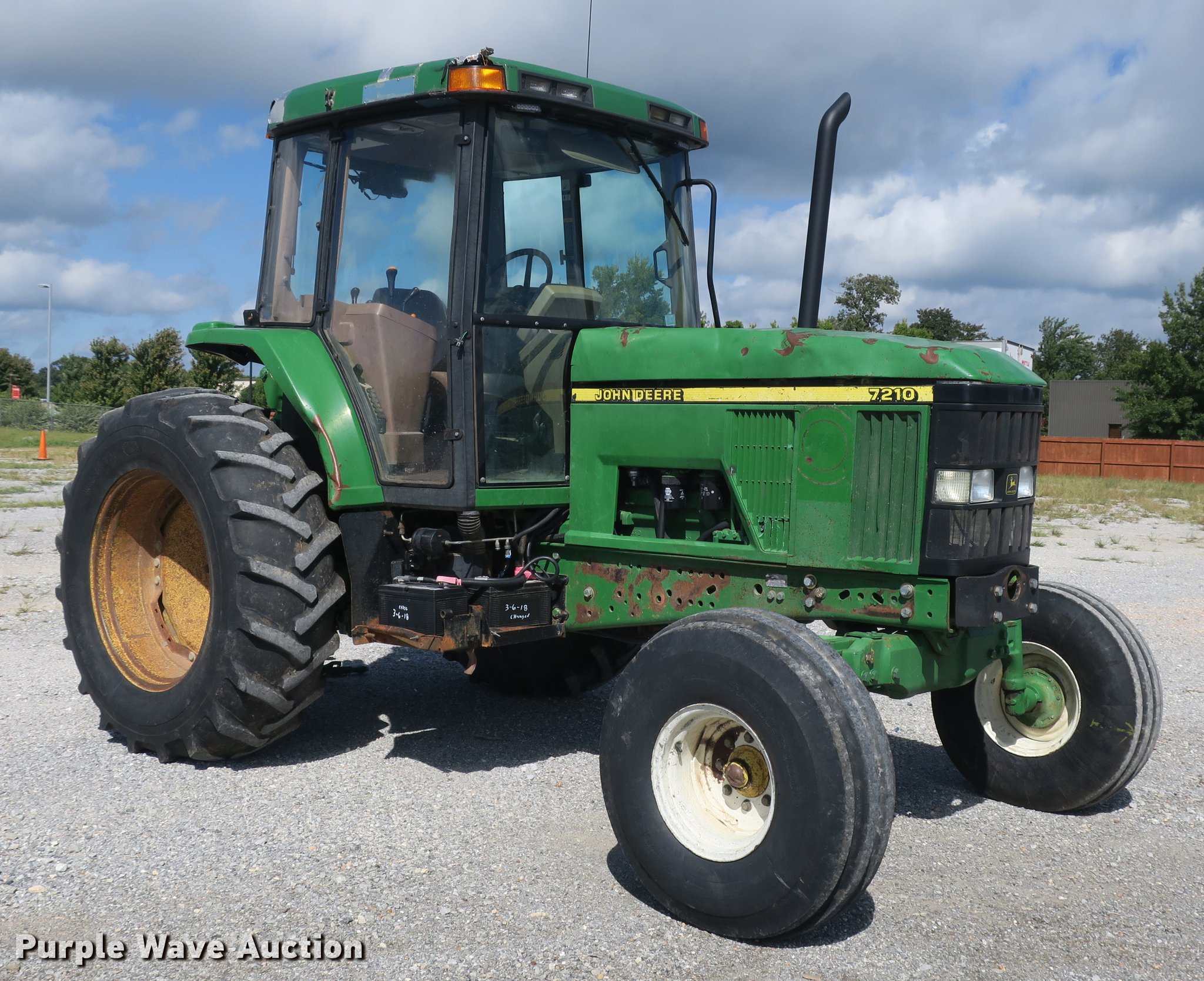 Purple Wave is selling a used Tractor in Arkansas. This item is a John Deere 7210 tractor with the following: 8,328 hours on meter, John Deere six cylinder turbo diesel engine, Quad-Range transmission, 12F-4R gears, Differential lock, AC and heat, AM/FM, Spring suspension seat, Tilt steering wheel, Three point, Top link, Unattached, Seven pin outlet, Rear hydraulic remote sets, 11.00-16 front tires, 18.4-34 rear tires, Maintenance and service records available upon request, Roof damaged