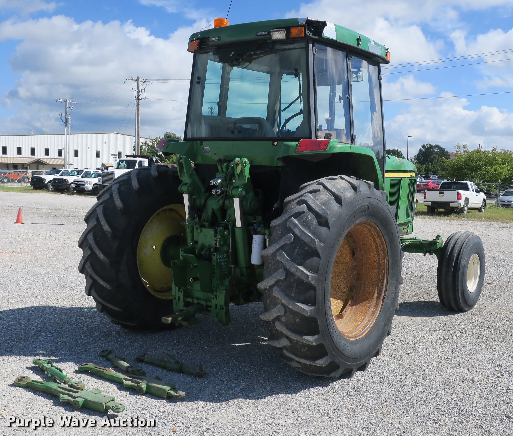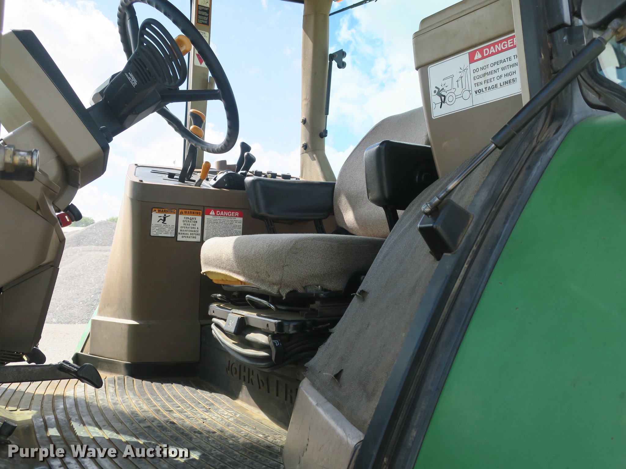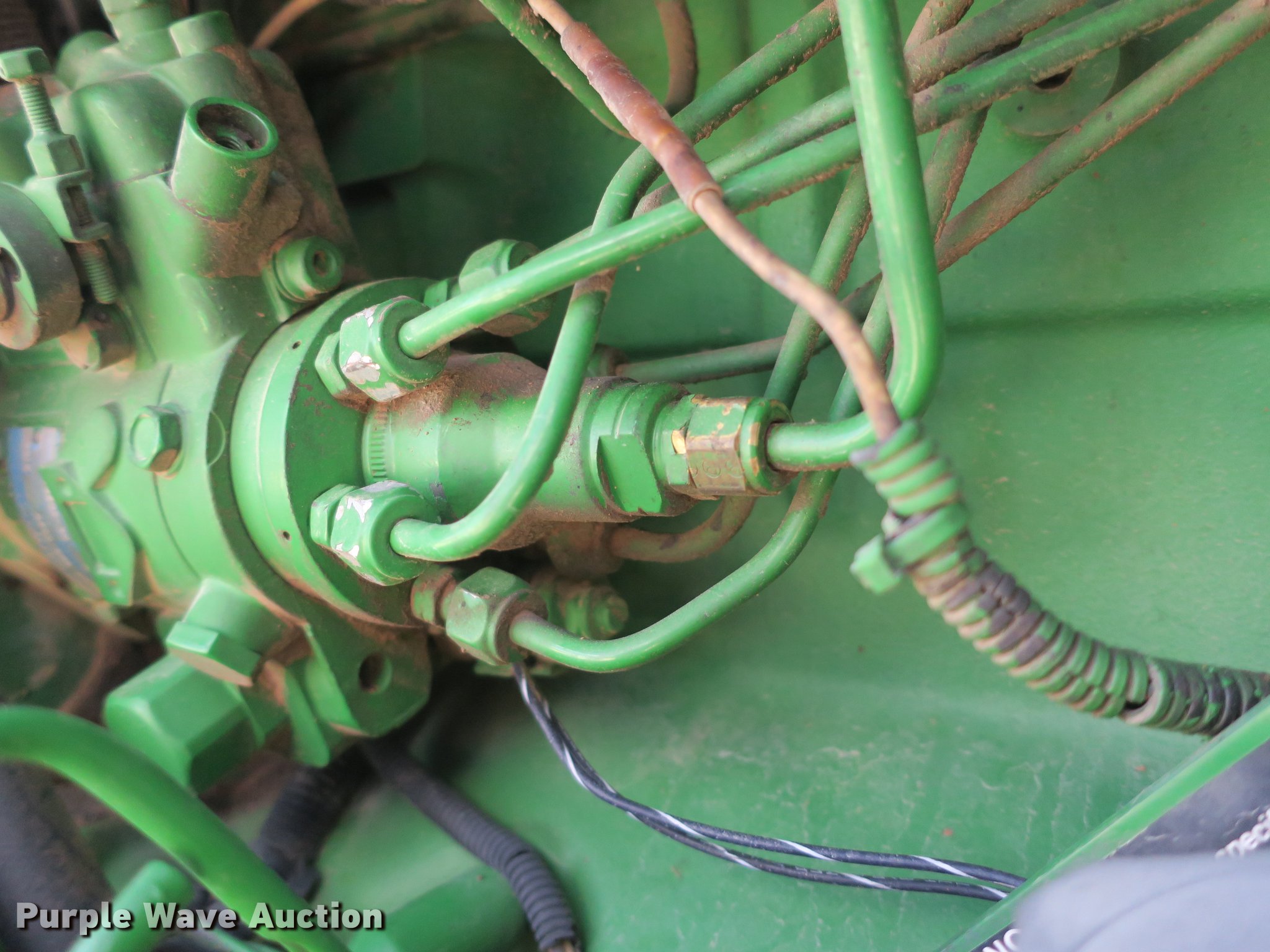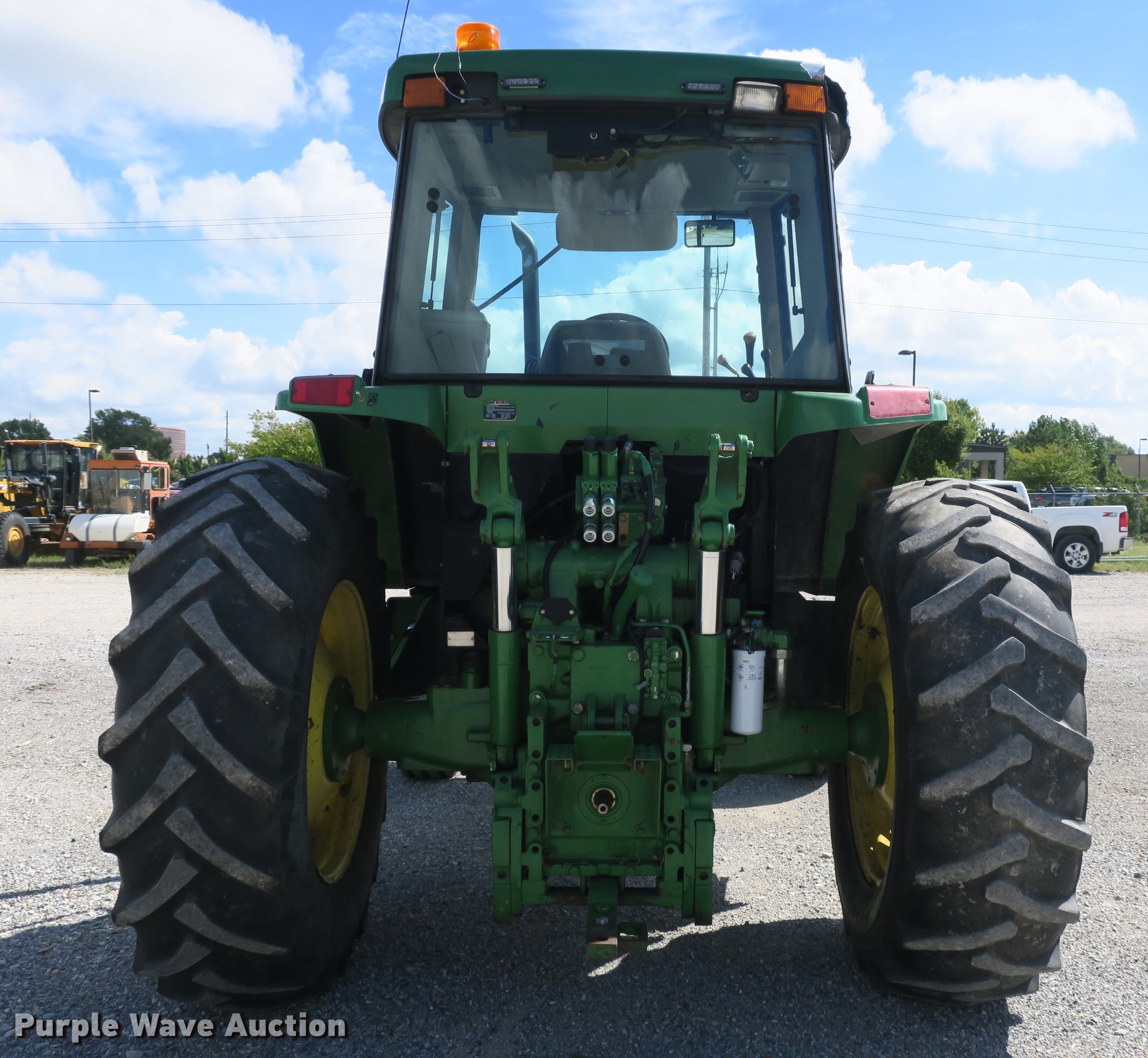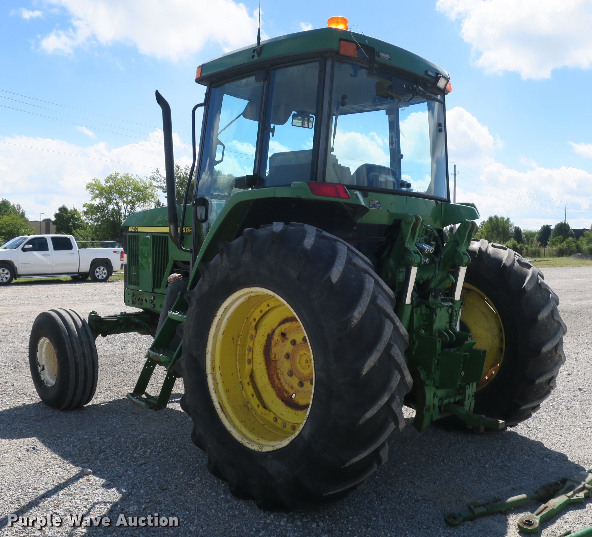 Purple Wave is selling a used Tractor in Arkansas. This item is a John Deere 7210 tractor with the following: 8,328 hours on meter, John Deere six cylinder turbo diesel engine, Quad-Range transmission, 12F-4R gears, Differential lock, AC and heat, AM/FM, Spring suspension seat, Tilt steering wheel, Three point, Top link, Unattached, Seven pin outlet, Rear hydraulic remote sets, 11.00-16 front tires, 18.4-34 rear tires, Maintenance and service records available upon request, Roof damaged
